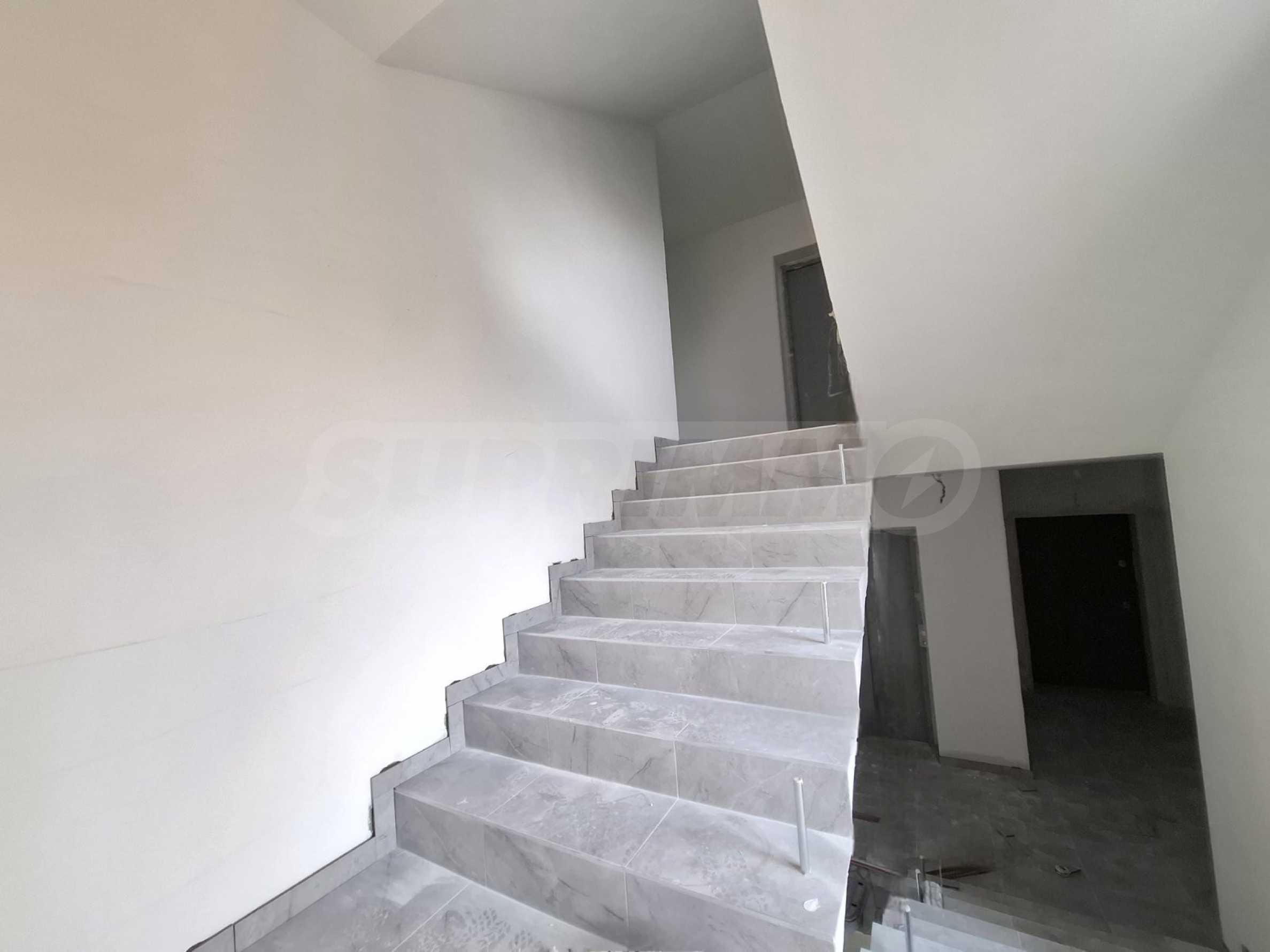 - Granite/granite tiles are provided for the common areas, as well as silicate mosaic plaster on the ground floor, and the elevator has automatic doors with top drive.