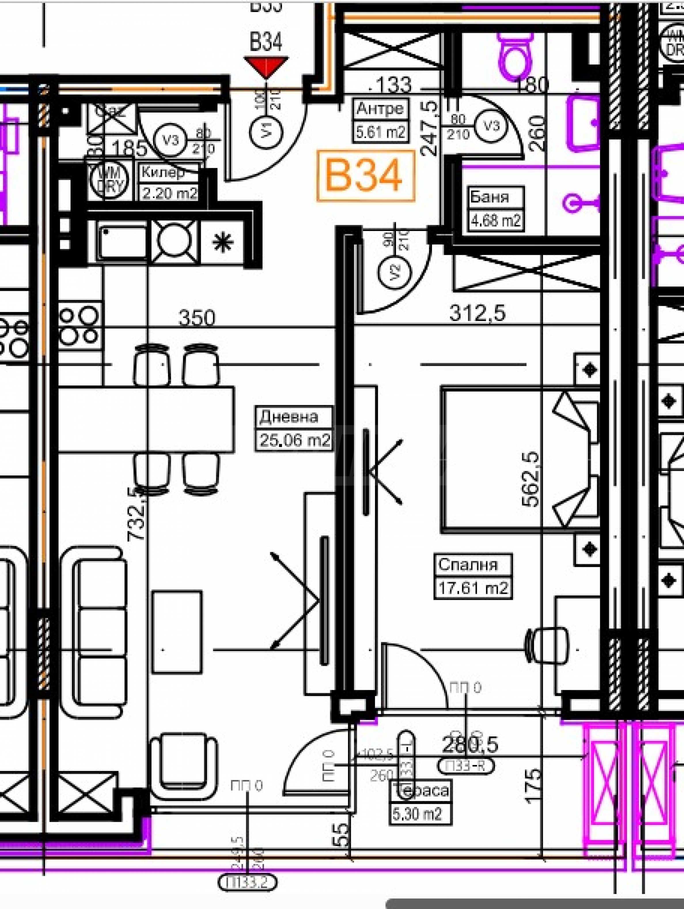 We present a comfortable one-bedroom apartment with a total area of 79.09 m2., in a modern new complex in an excellent location in the capital, in the "Krustova Vada" district. The complex provides coziness, comfort and a quality living environment. The building will be completed with a fully suspended facade of LAMINAM, SCHUCO aluminum joinery, SCHINDLER elevators, with luxurious common areas, a richly landscaped courtyard, 24-hour security, video surveillance and access control.