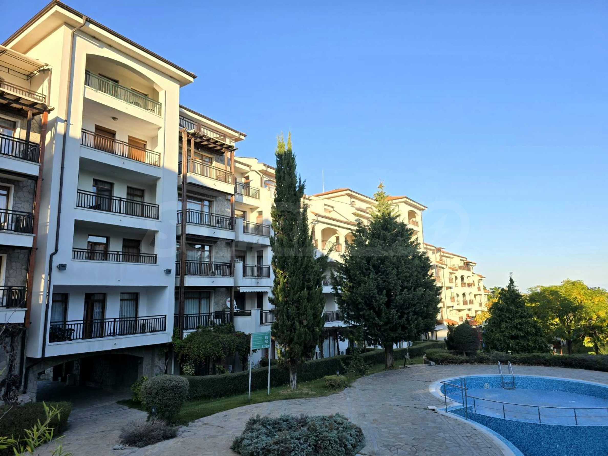 The property with an area of 57 m2., located on the 1st floor of 4 and offers a beautiful view of the courtyard and the pool.