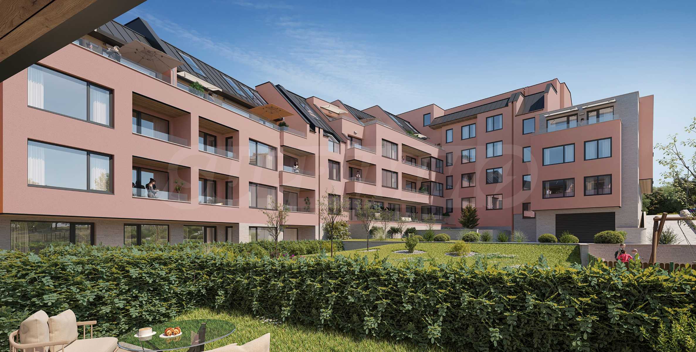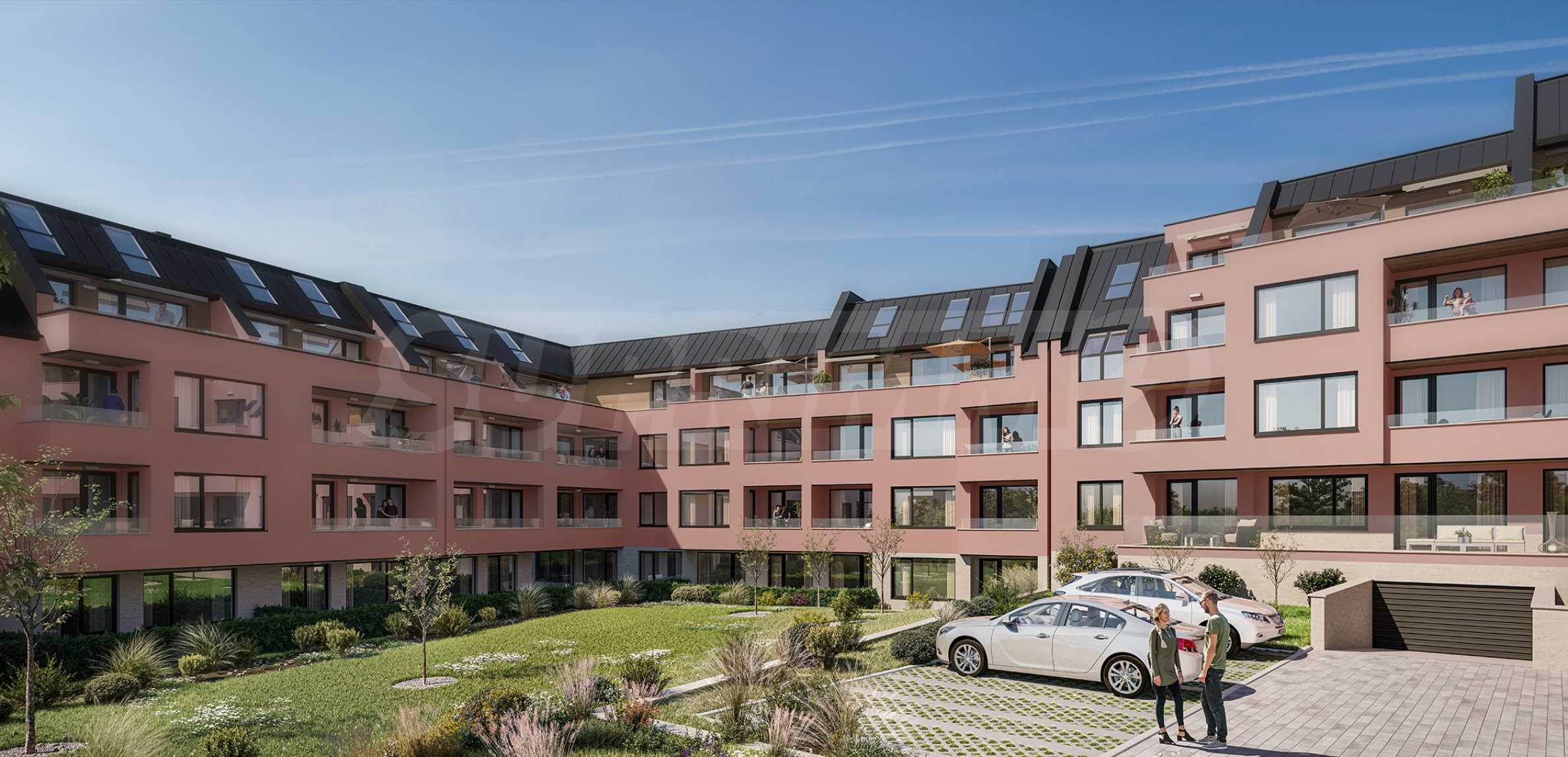 The complex consists of four buildings, distributed on three, four and five levels, with a common courtyard, which will be richly landscaped. The architectural vision is modern, with a natural stone facade, and all materials related to thermal insulation meet class A on the energy saving scale.