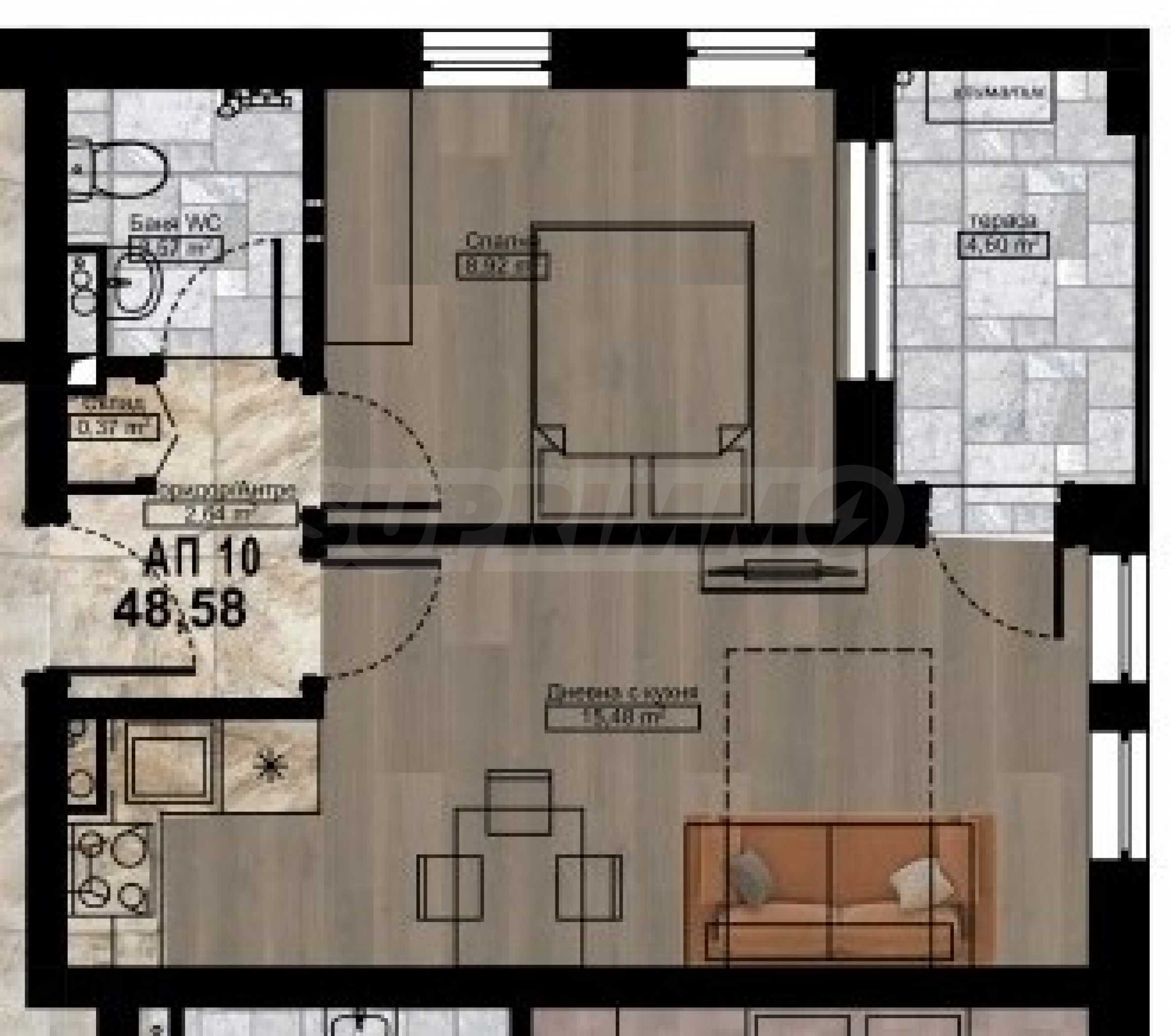 We present for sale a one-bedroom apartment in a new residential building with an elegant and modern look, in a quiet and peaceful area of the town of Tsarevo.