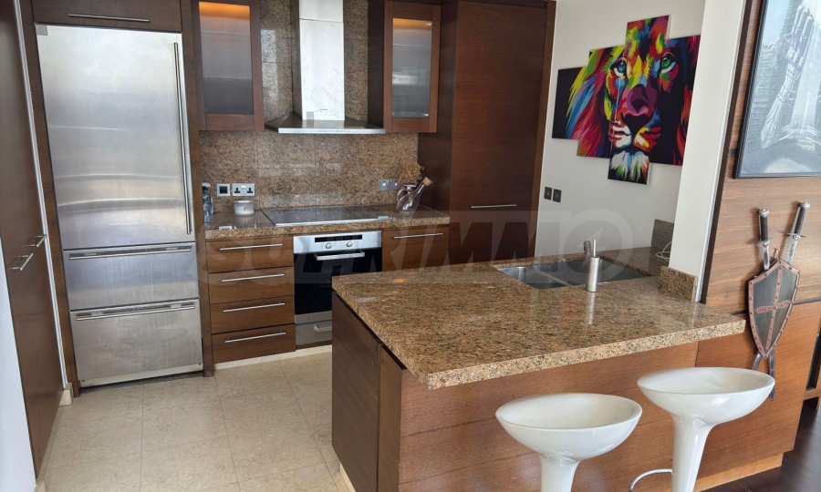 The property we are offering for sale is spread over 102 sq m of total area, with views of the Dubai International Financial Centre (DIFC) and the sparkling sea. The apartment is offered fully furnished and ready to move in or rent out.