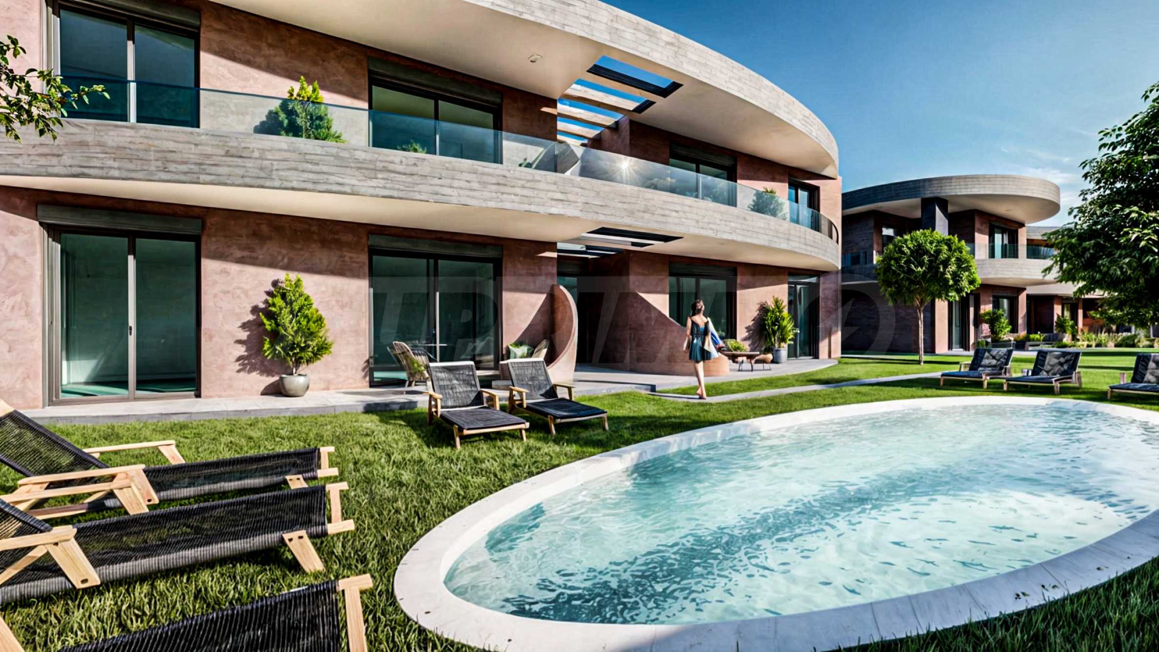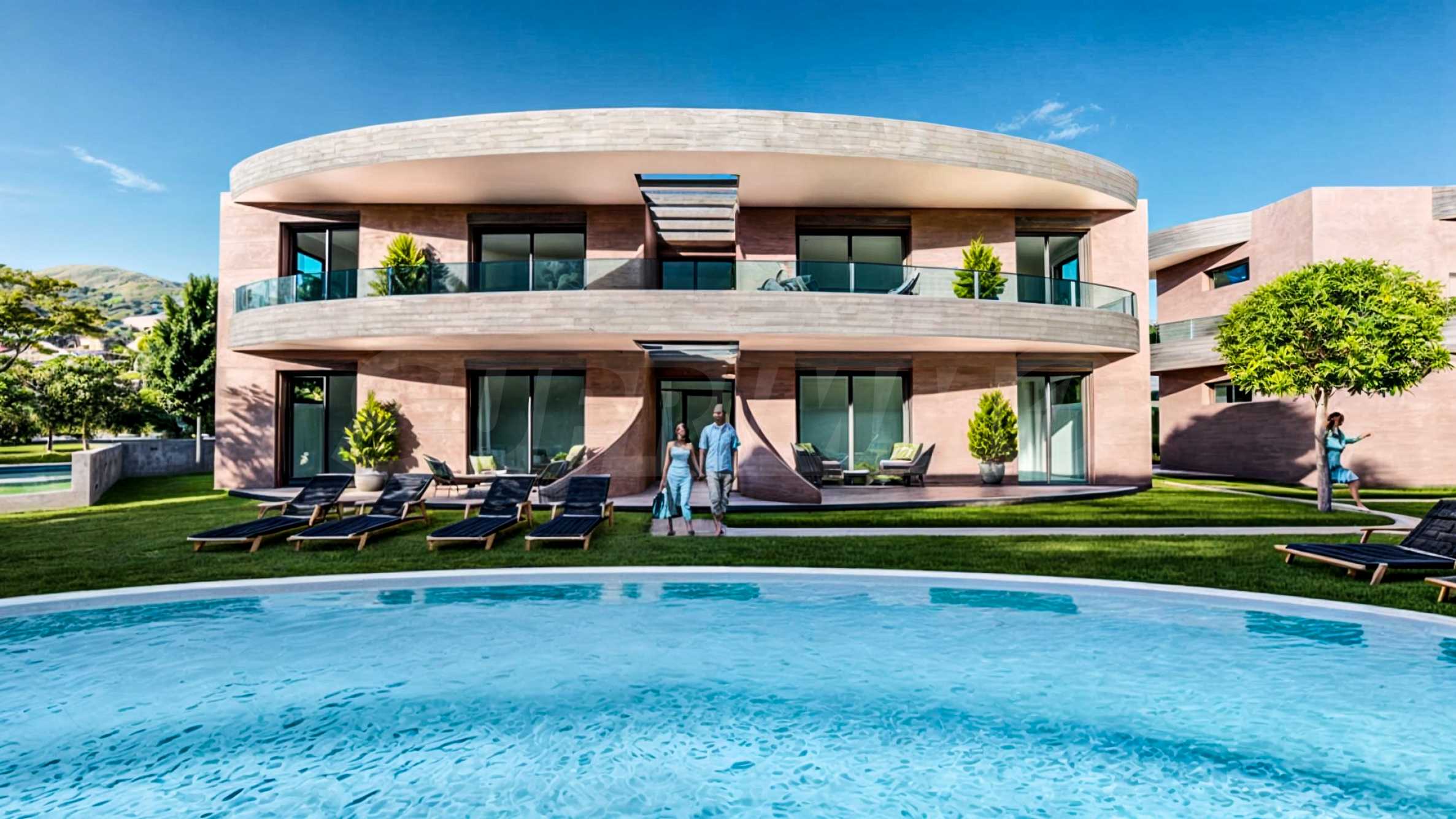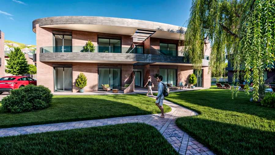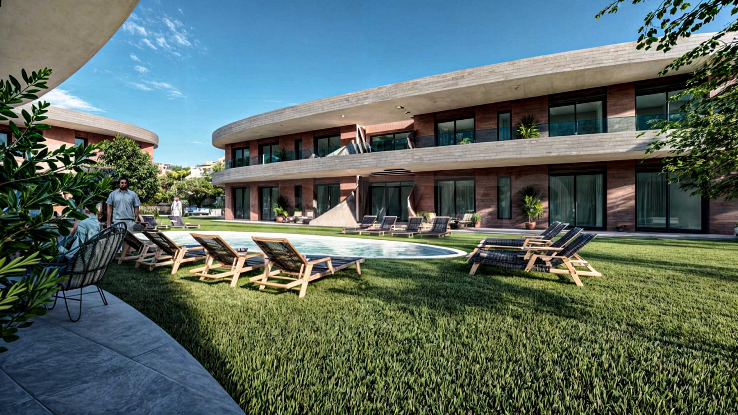 This exclusive residential complex offers contemporary design and aesthetics that impress at first sight. The buildings have oval shapes and an exterior filled with high-quality materials that emphasize the minimalist style and give a unique and modern look. Large windows allow daylight to enter the rooms, and spacious balconies enhance the feeling of spaciousness and freedom. The spaces between the buildings are enriched with abundant greenery and areas for recreation and relaxation, where you can spend quality time with family and friends.