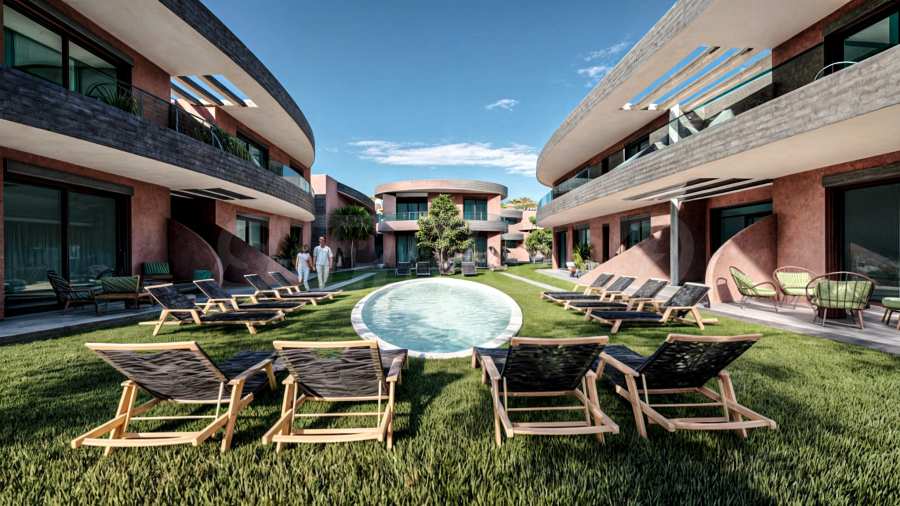 Among the main advantages of the complex is the concept of small and cozy, low buildings, which will have a maximum of 5 apartments. This guarantees a peaceful living environment, without unnecessary noise and enhances the feeling that you live in a house. In the space between the buildings, there are 6 swimming pools and areas with sun loungers and umbrellas around them. Near the complex you will find a medical center, a pharmacy, small and large grocery stores where you can shop, as well as an abundance of cafes, restaurants offering Mediterranean cuisine, as well as traditional Greek taverns.