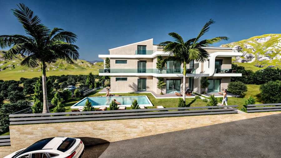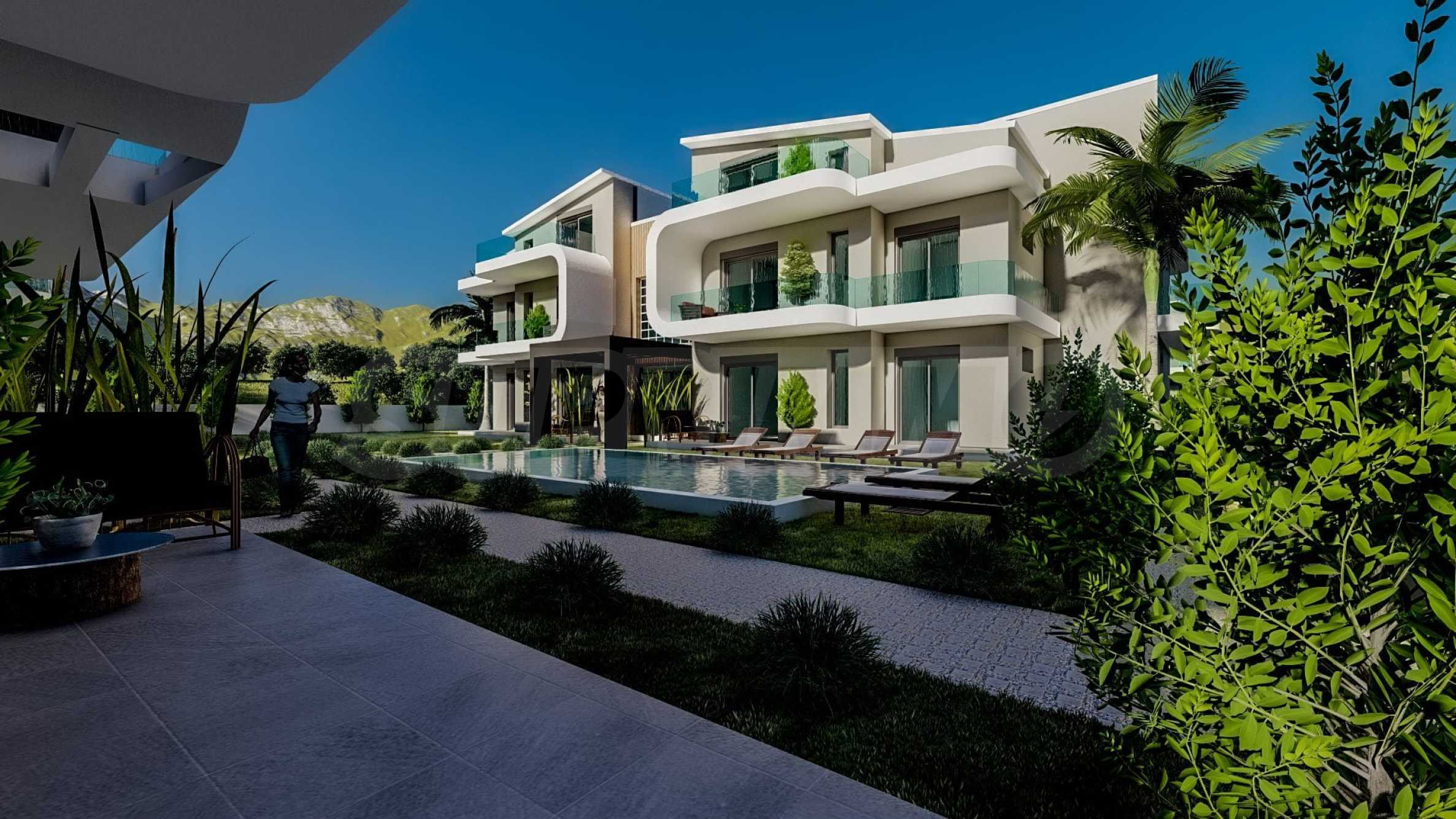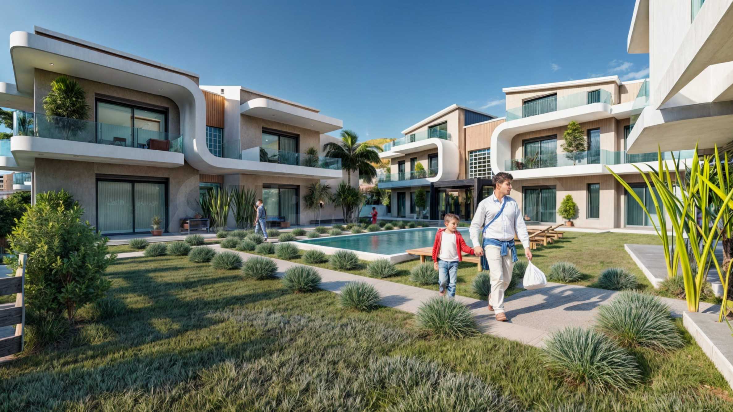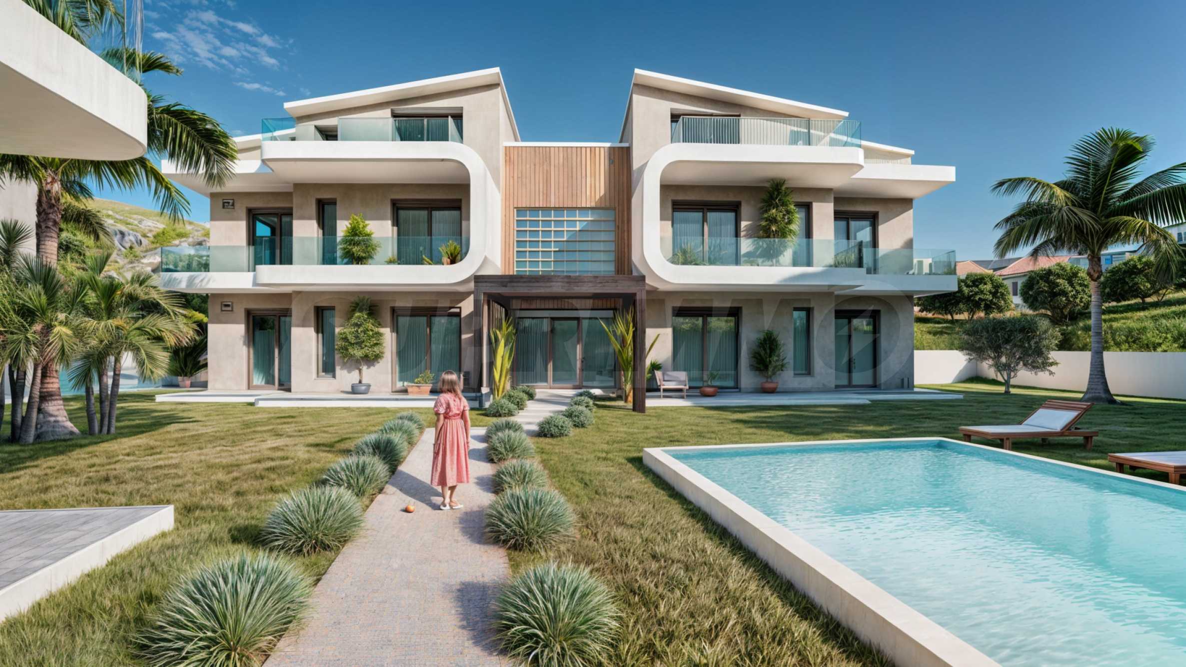 The complex is located about 300 meters from the beach and is nestled at the foot of the island's cliffs, covered with pine groves. This ensures that residents will have a peaceful living environment with clean and fresh air. Panorama consists of 9 houses on two or three floors and 32 cozy apartments with modern aesthetics and simple lines. The courtyard of the buildings is enriched with lots of greenery, and the large swimming pools provide the opportunity for countless moments of complete relaxation with your loved ones.