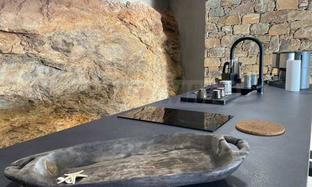 The house has been carefully built in the stones and the interior design is matched with the beauty of nature, leaving partly the stones inside.