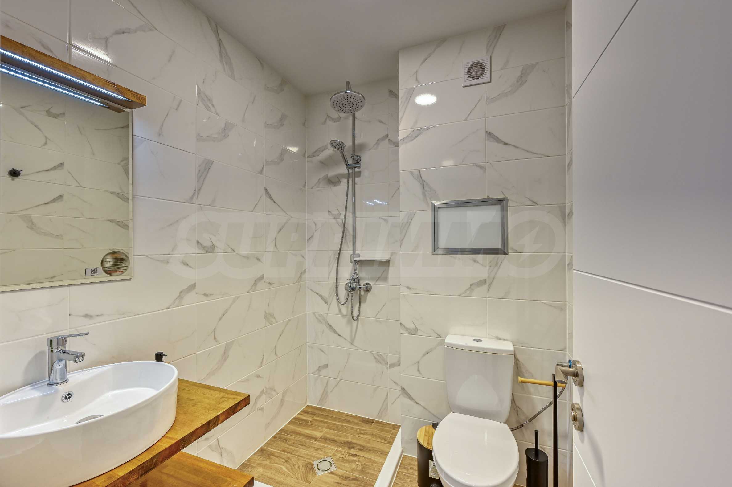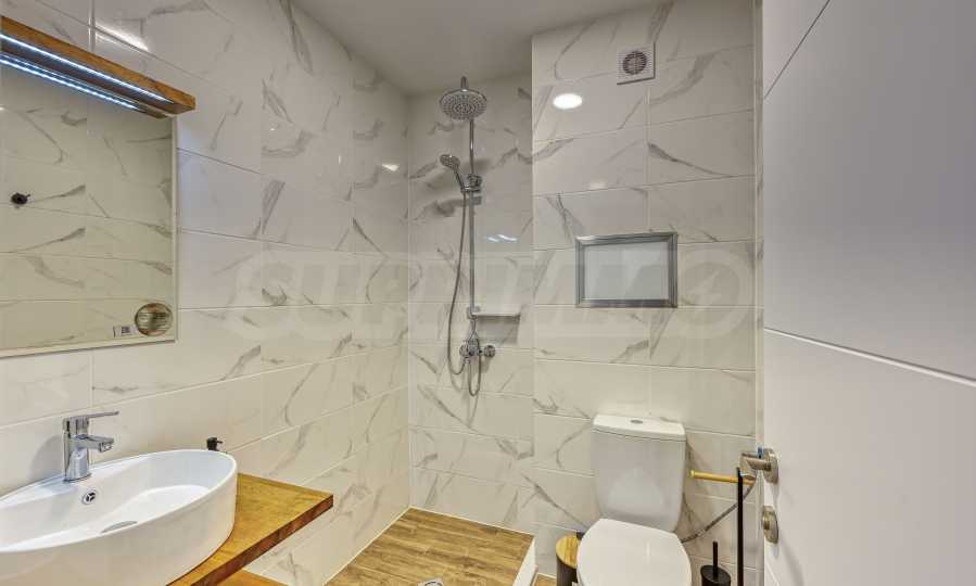 bathroom with toilet – finished with quality materials and including a shower cabin;