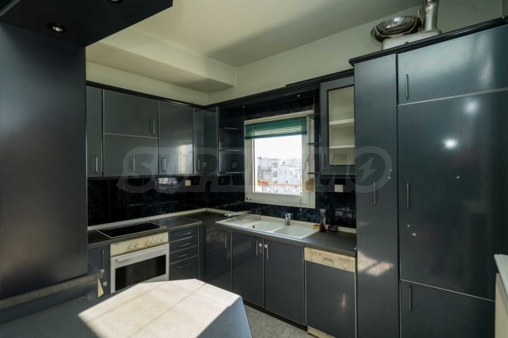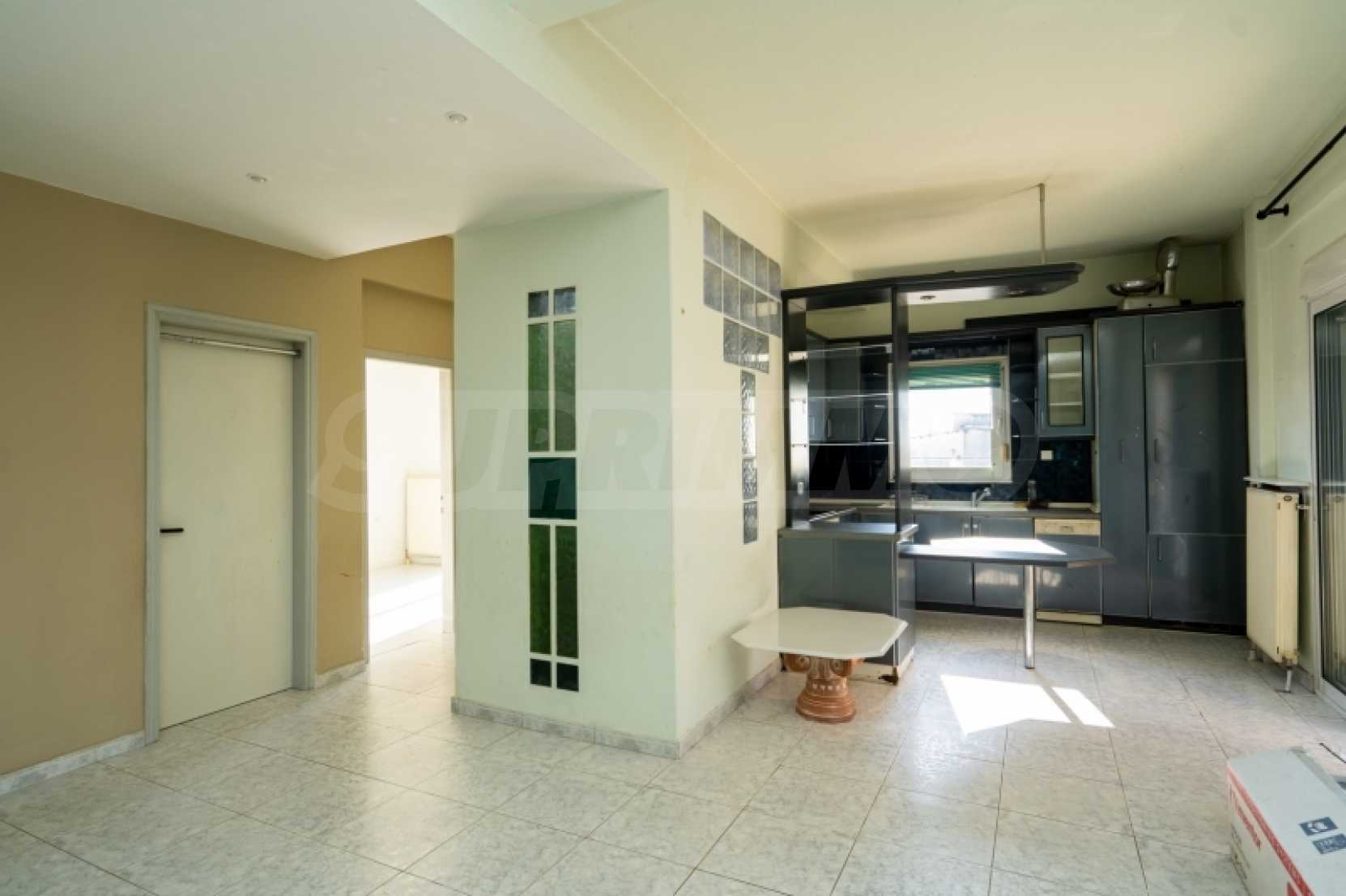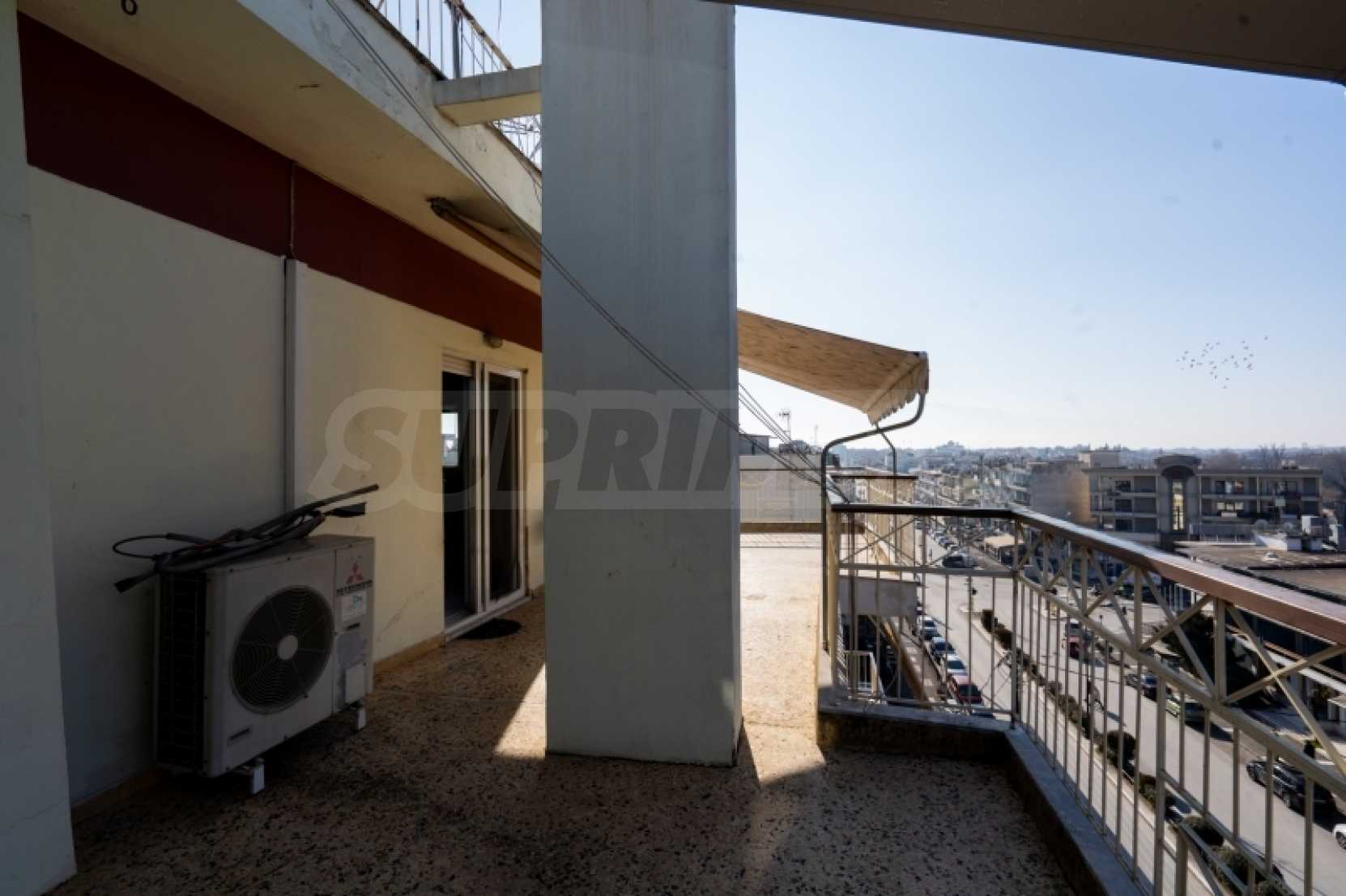 For sale apartment of 102 sq.m. on the fifth floor of a five-storey building of 1966, in the center of Drama, opposite the Municipal Garden of Drama. The apartment is a corner penthouse, has spacious and bright spaces, with a modern layout. It consists of a living room, a living room on a patio, a kitchen, two bedrooms, a bathroom and a storage room. The floors are covered with tiles of careful quality and the external windows are pvc type with single glazing and screens. For heating it has an individual oil boiler, air conditioning and a fireplace, with granite cladding, tap and hot air vents. The apartment has a large perimeter corner balcony with awnings, ideal for moments of relaxation. It has a security door and skylights inside the apartment. The building has a decade old elevator and the last renovation of the apartment was done in 2017. With all the above features, the apartment is a very interesting choice, as it offers all the amenities a family needs. To indicate the property, it is necessary to present the identity card.