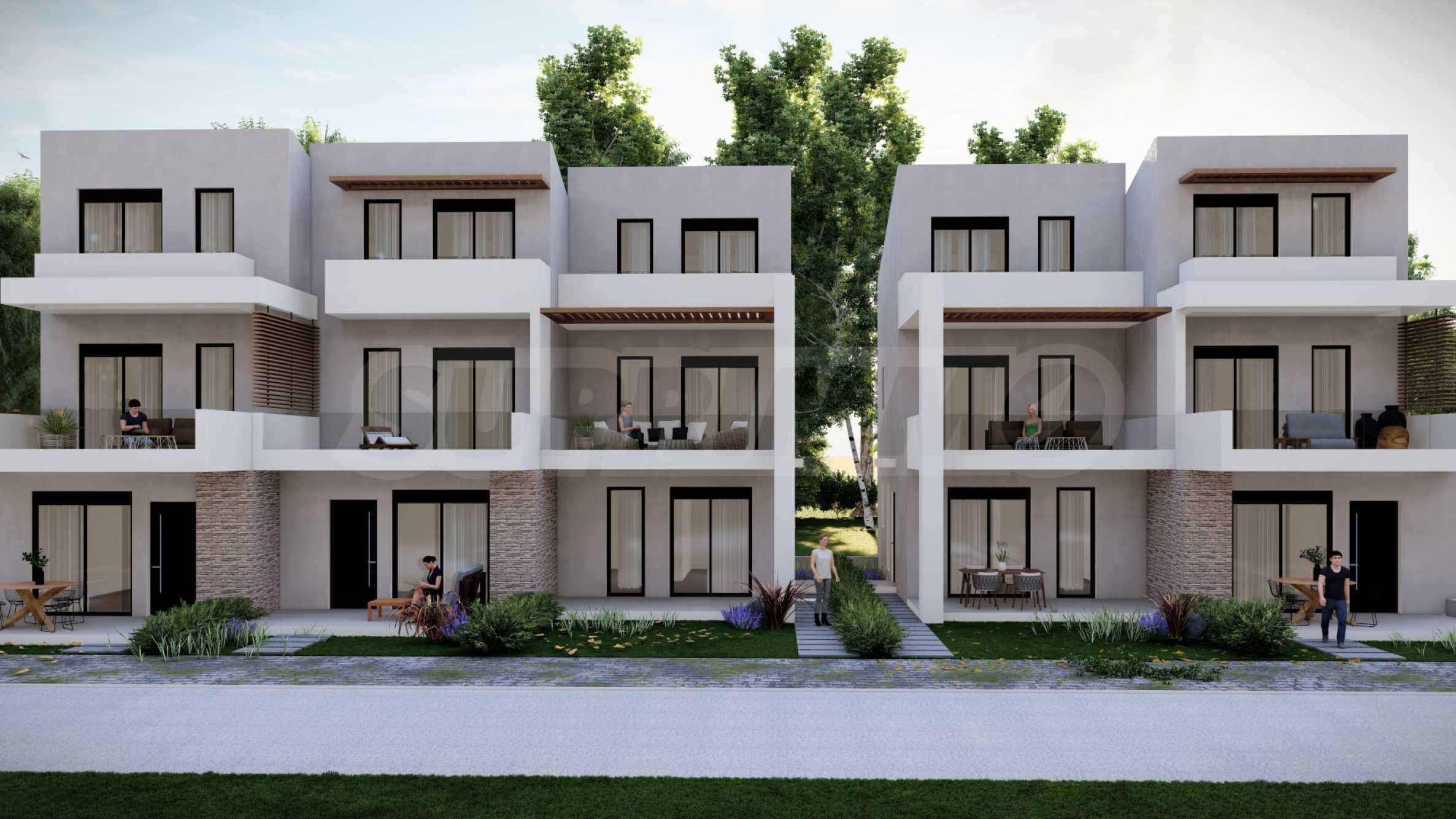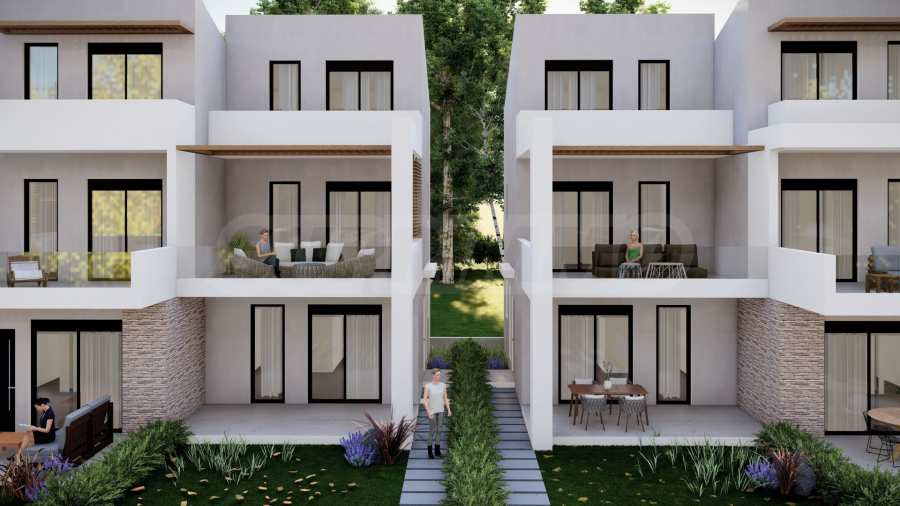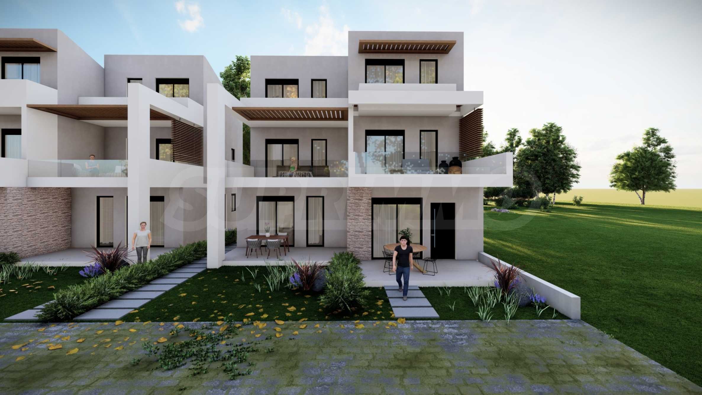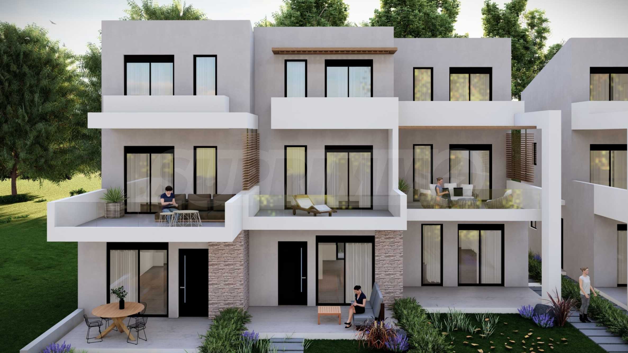 The complex consists of 5 houses, designed with attention to detail and with the idea of providing enough space for a comfortable lifestyle. The exterior is based on straight lines and white color, with the only contrast being the windows, doors and the rich landscaping in the courtyard of the houses. The complex is also distinguished by spacious balconies, which are an ideal place for relaxation during the day or for gatherings with friends in the evening. The distribution of the houses is designed to provide personal space and privacy for all residents.