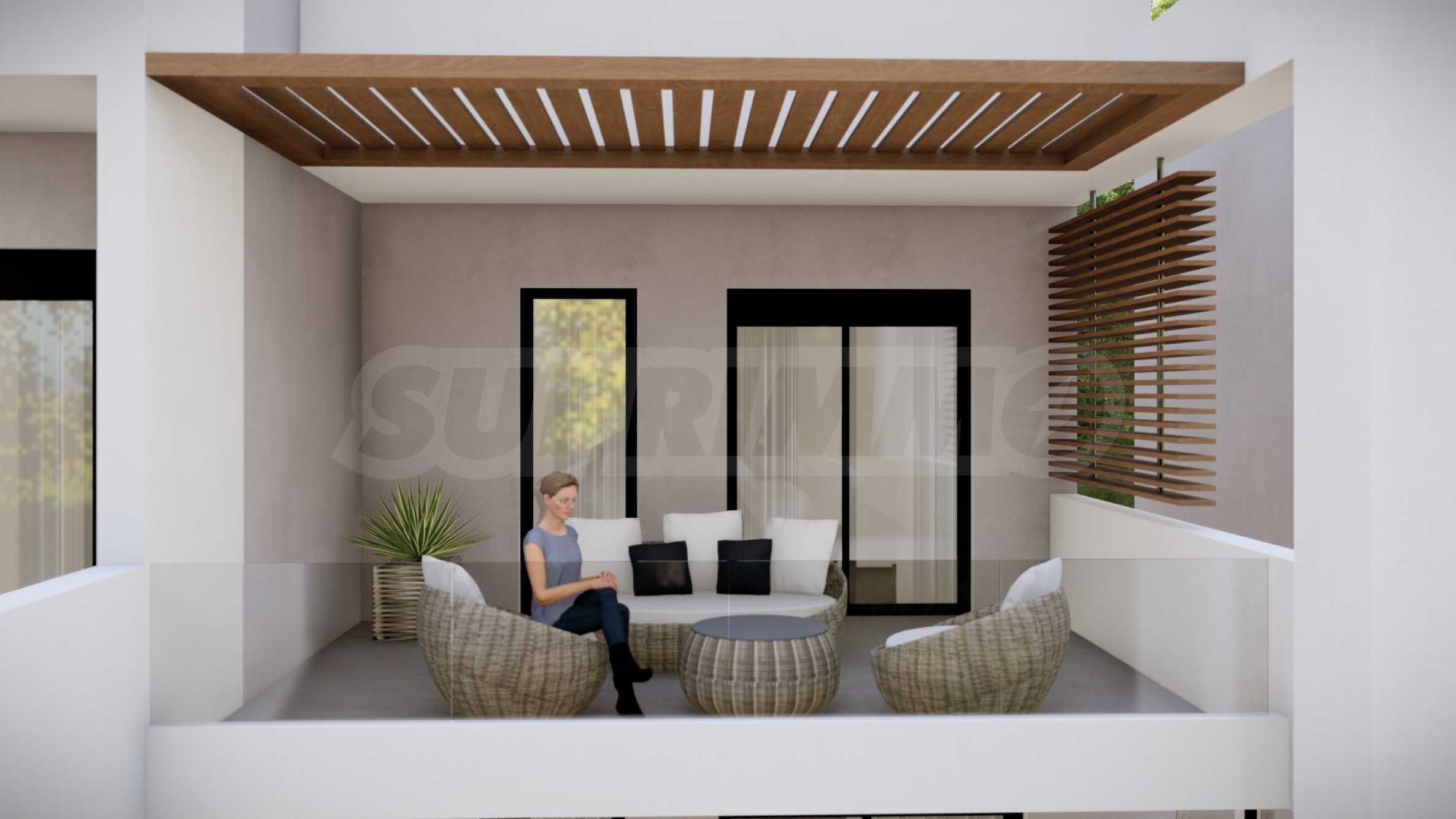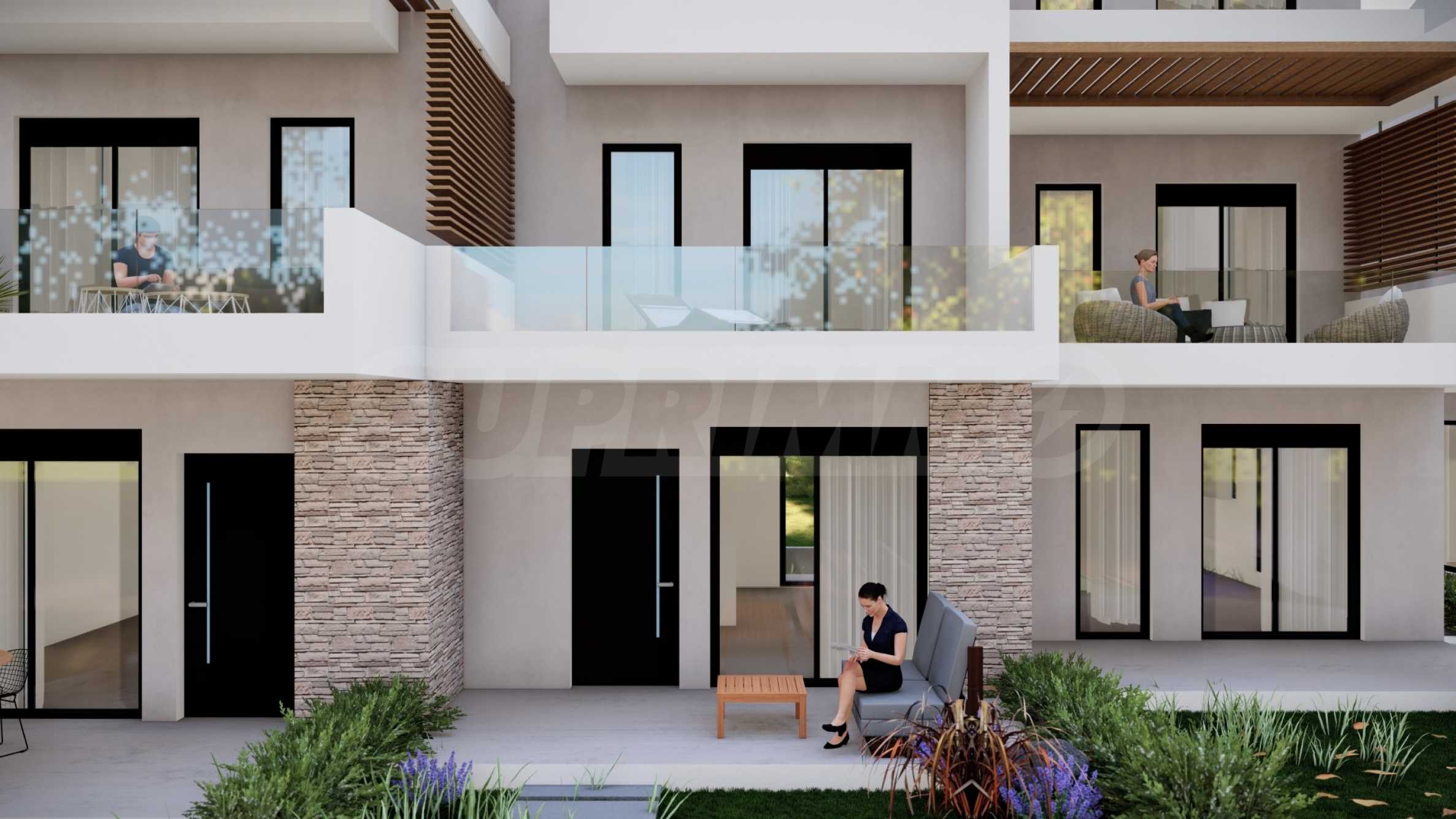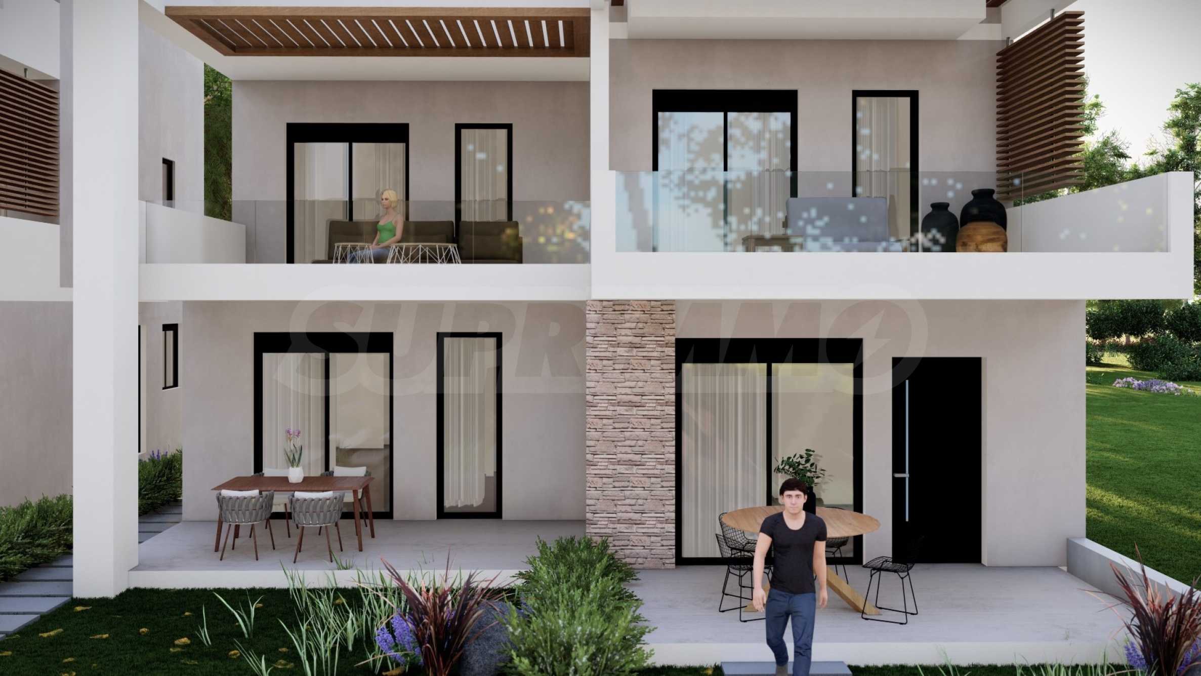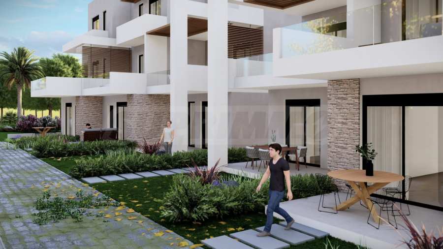 The complex consists of 5 houses, designed with attention to detail and with the idea of providing enough space for a comfortable lifestyle. The exterior is based on straight lines and white color, with the only contrast being the windows, doors and the rich landscaping in the courtyard of the houses. The complex is also distinguished by spacious balconies, which are an ideal place for relaxation during the day or for gatherings with friends in the evening. The distribution of the houses is designed to provide personal space and privacy for all residents.