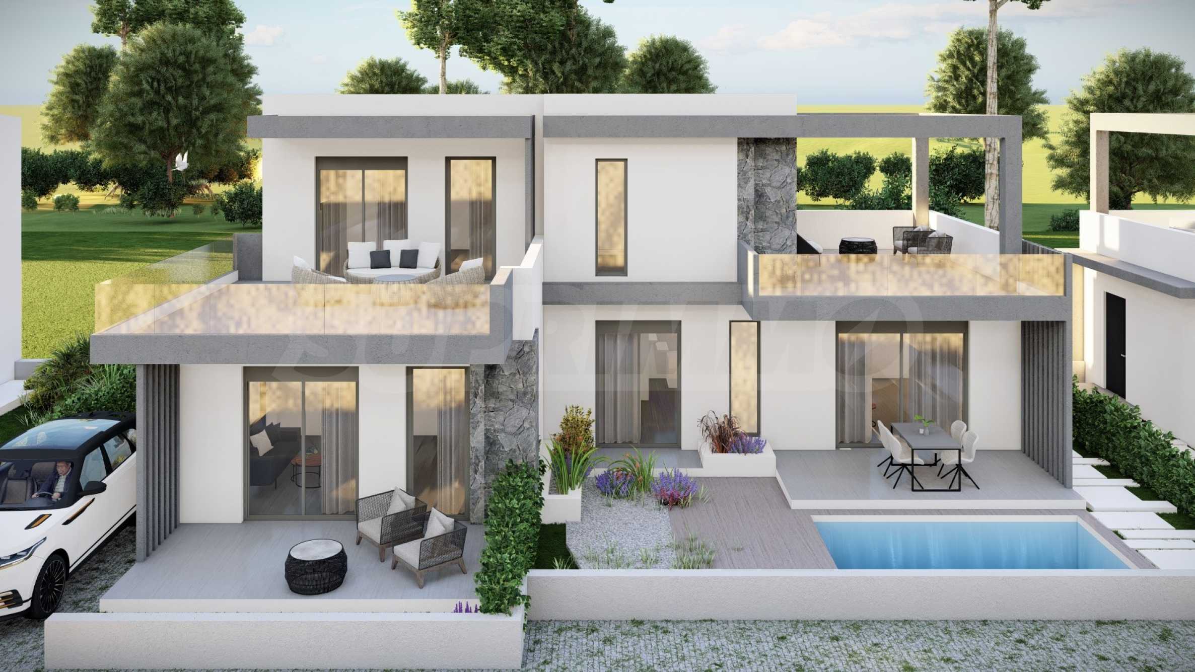 The complex consists of 20 summer residences, located in a quiet and peaceful location in the resort town. The homes have elegant, beautifully crafted facades, combining light tones and natural materials, creating a feeling of luxury and comfort. The layouts of the houses are designed to offer maximum comfort, and the large windows provide plenty of natural light in the rooms. The houses also have spacious balconies, which are the ideal place for meeting friends and pleasant conversations under the starry sky. Selected homes have an outdoor swimming pool right next to the veranda, which, in addition to the opportunity for cooling baths, is also an excellent place for family entertainment and games with children.