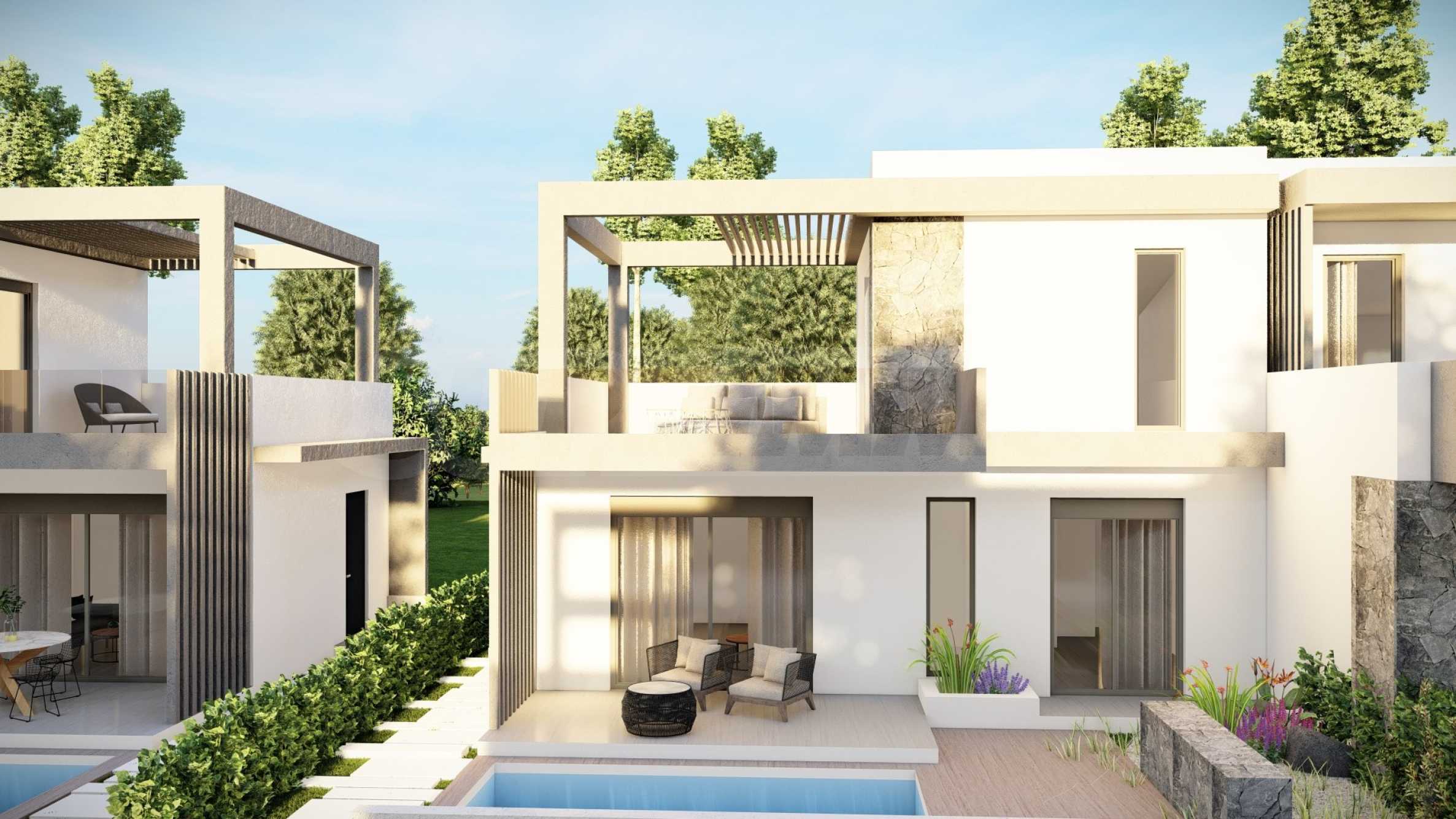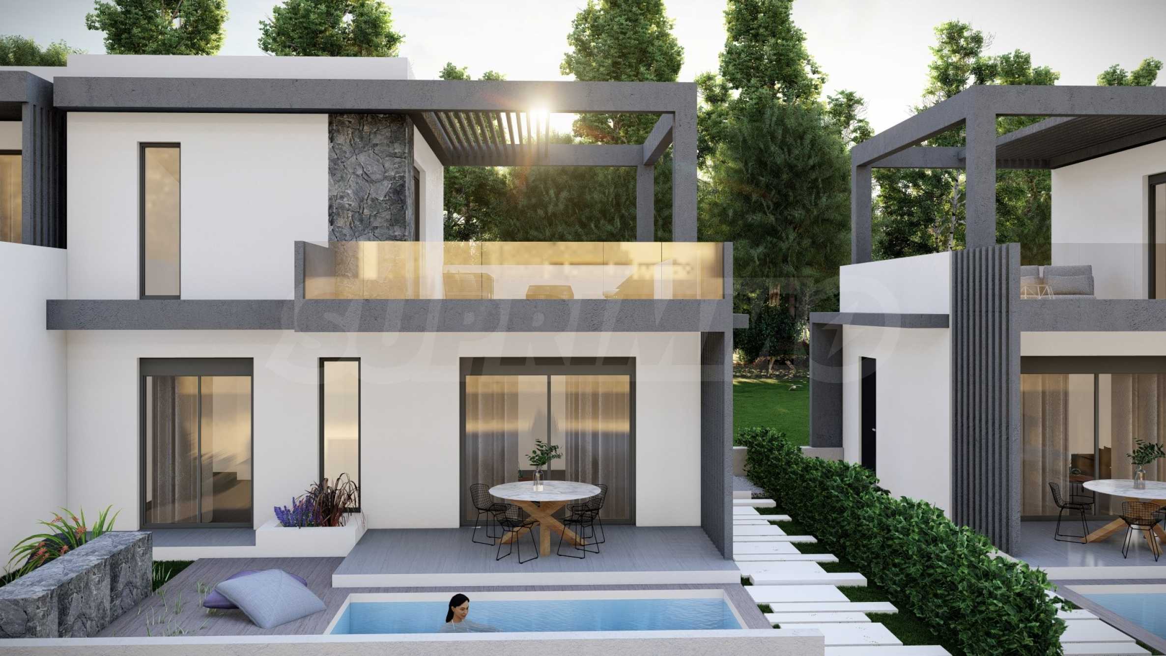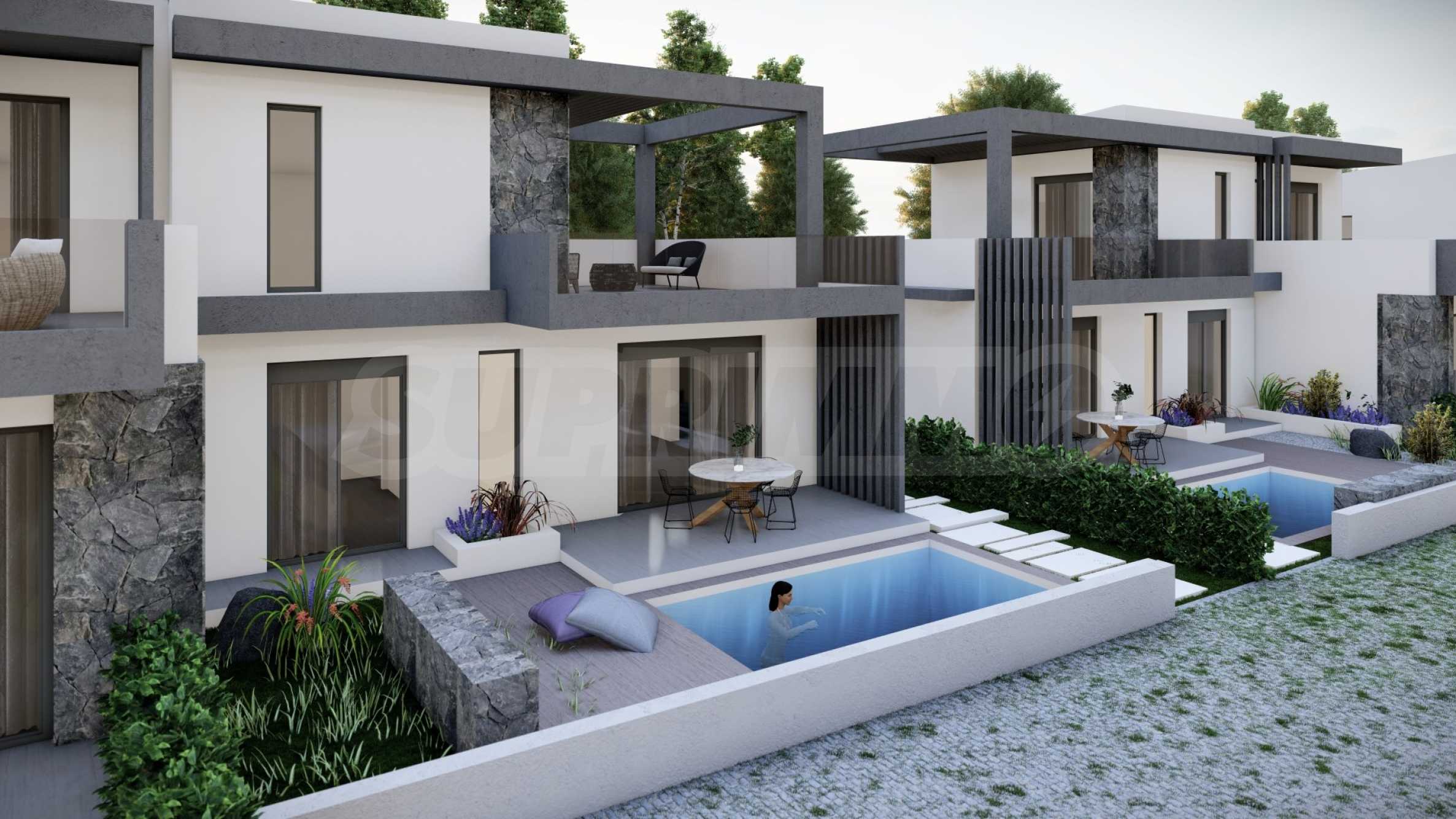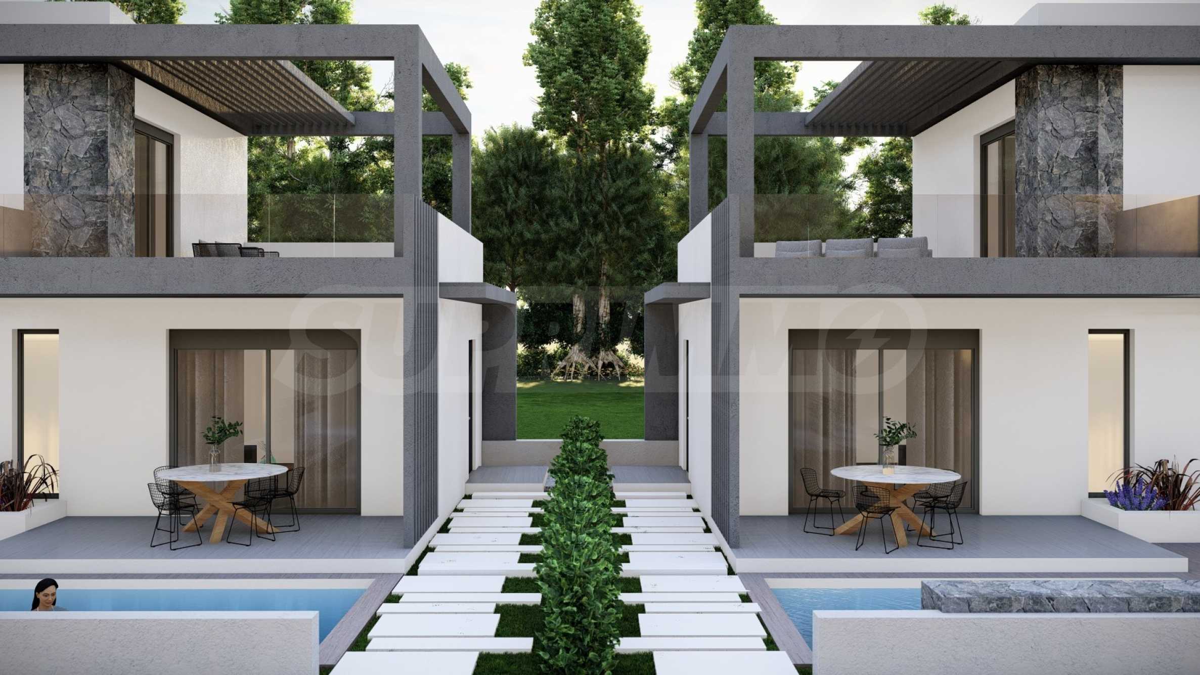 The complex consists of 20 summer residences, located in a quiet and peaceful location in the resort town. The homes have elegant, beautifully crafted facades, combining light tones and natural materials, creating a feeling of luxury and comfort. The layouts of the houses are designed to offer maximum comfort, and the large windows provide plenty of natural light in the rooms. The houses also have spacious balconies, which are the ideal place for meeting friends and pleasant conversations under the starry sky. Selected homes have an outdoor swimming pool right next to the veranda, which, in addition to the opportunity for cooling baths, is also an excellent place for family entertainment and games with children.