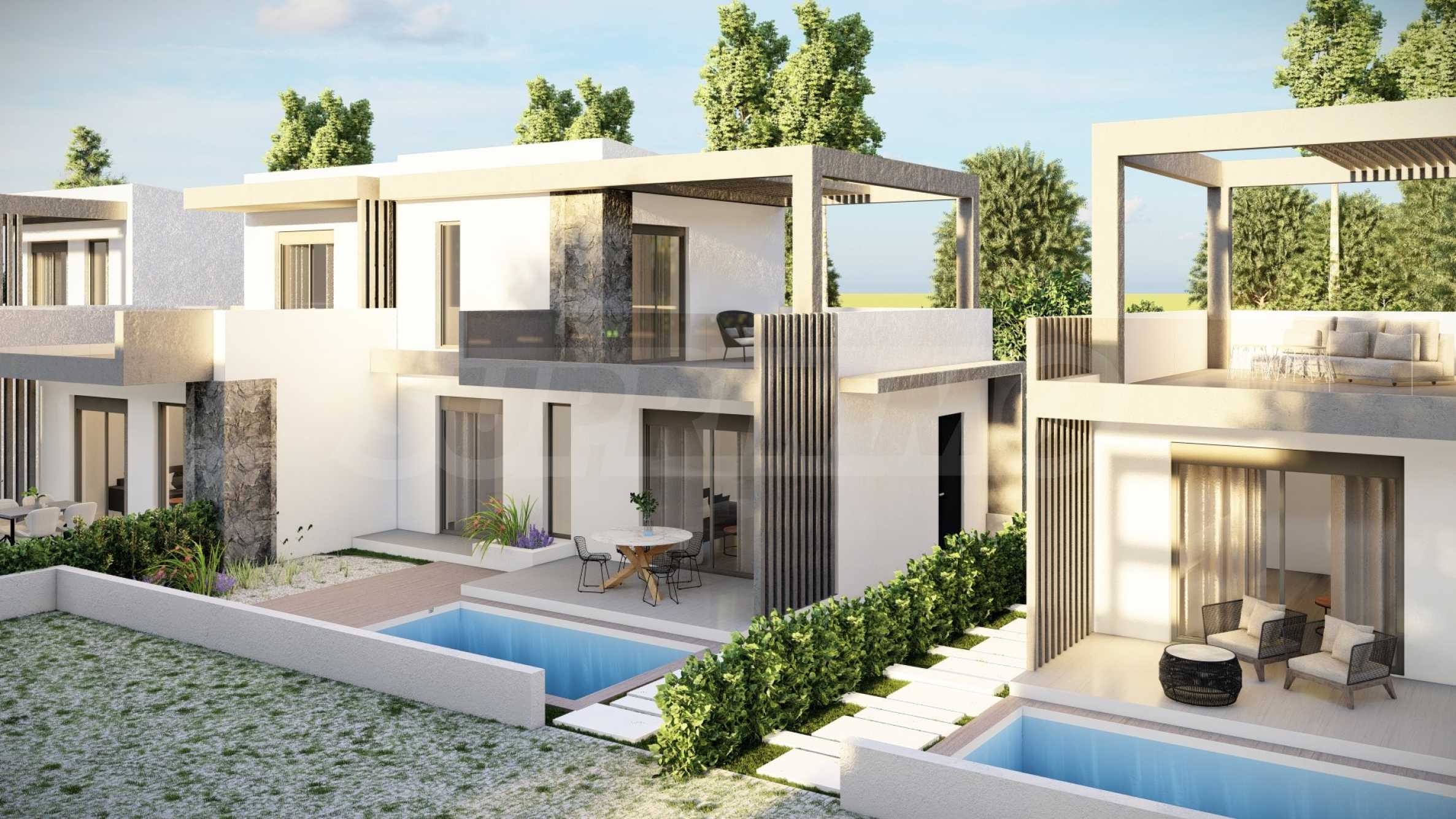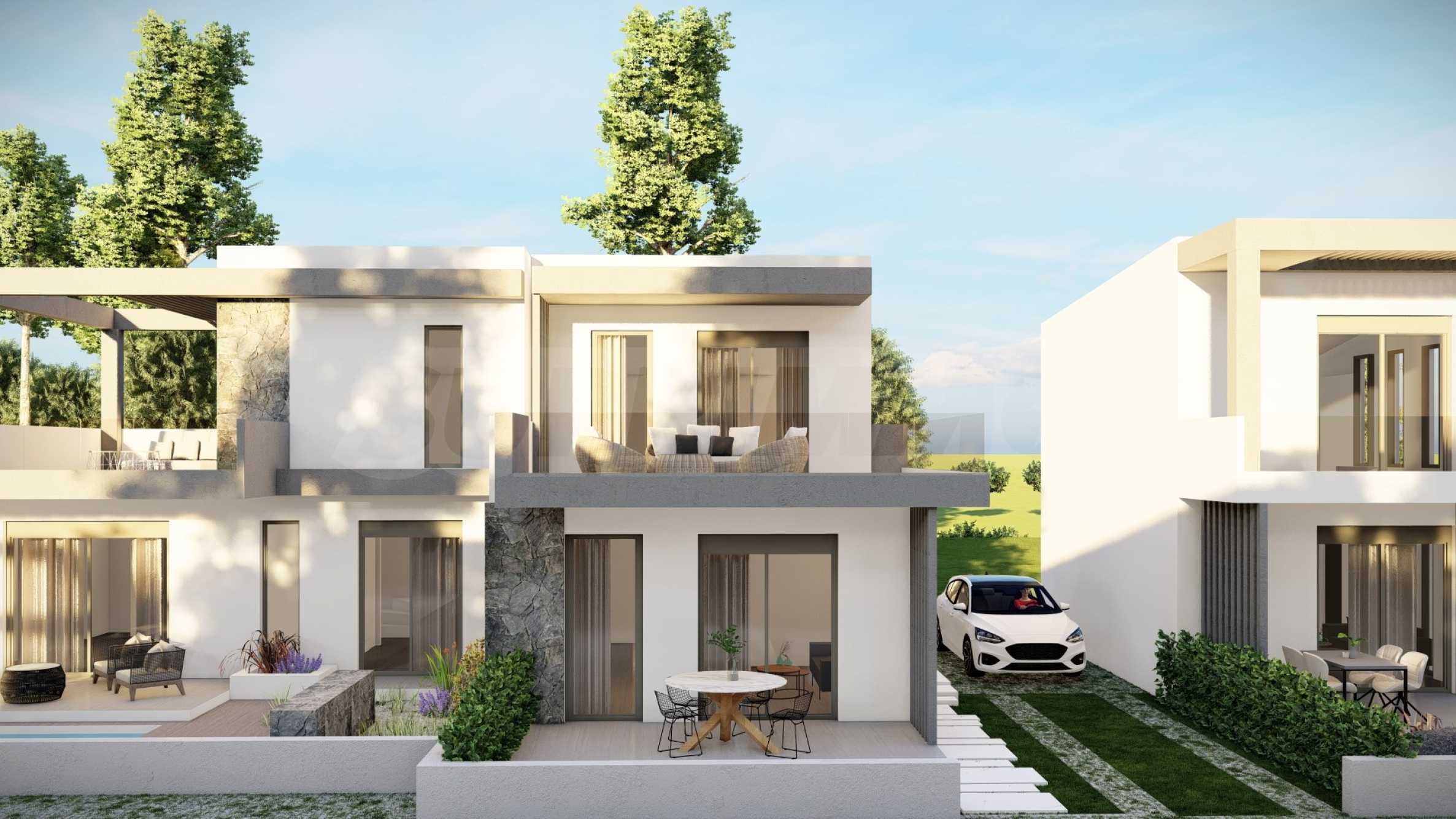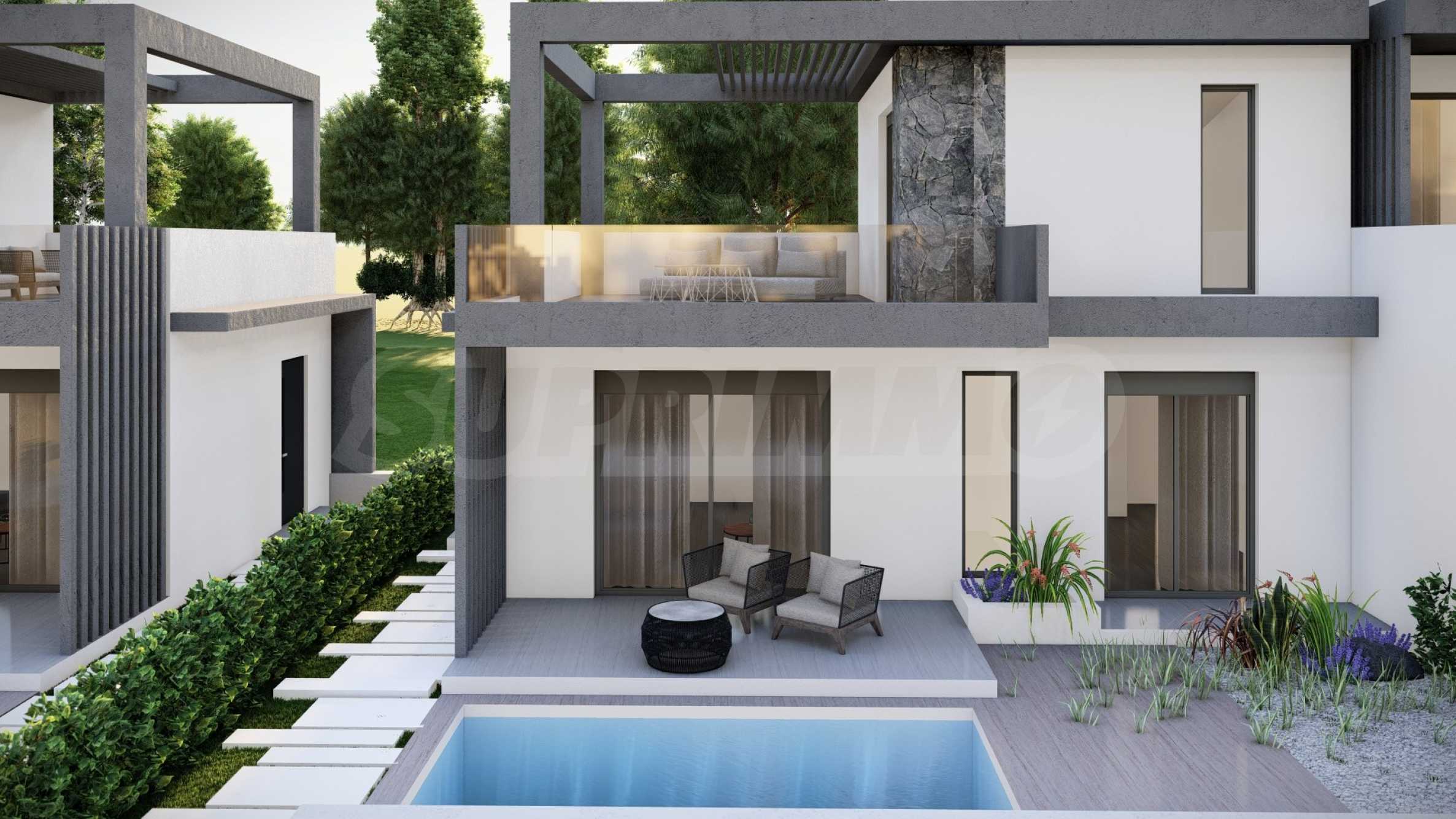 The complex consists of 20 summer residences, located in a quiet and peaceful location in the resort town. The homes have elegant, beautifully crafted facades, combining light tones and natural materials, creating a feeling of luxury and comfort. The layouts of the houses are designed to offer maximum comfort, and the large windows provide plenty of natural light in the rooms. The houses also have spacious balconies, which are the ideal place for meeting friends and pleasant conversations under the starry sky. Selected homes have an outdoor swimming pool right next to the veranda, which, in addition to the opportunity for cooling baths, is also an excellent place for family entertainment and games with children.