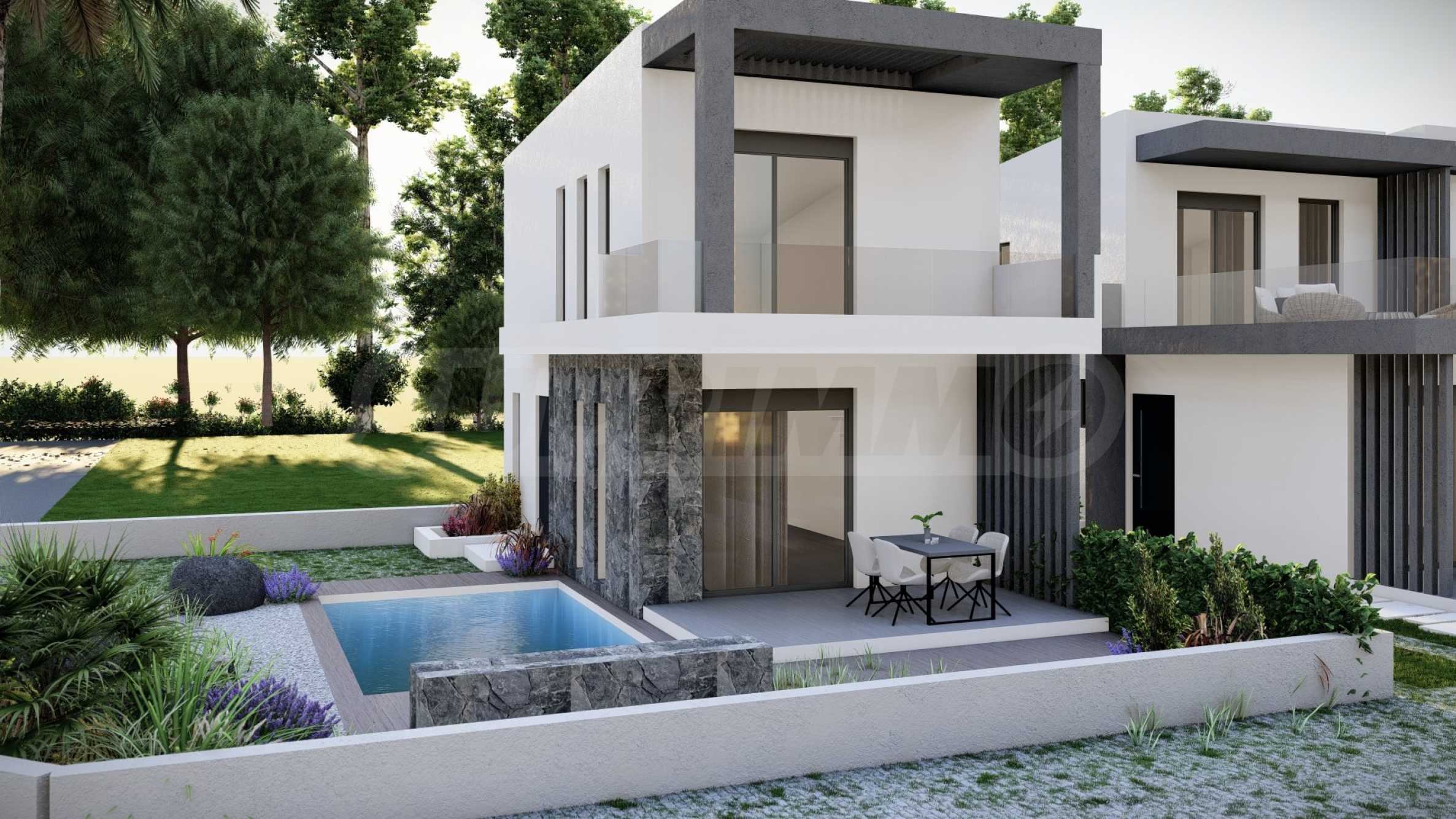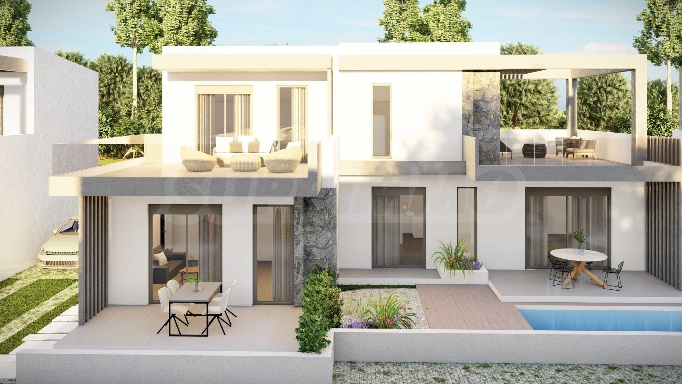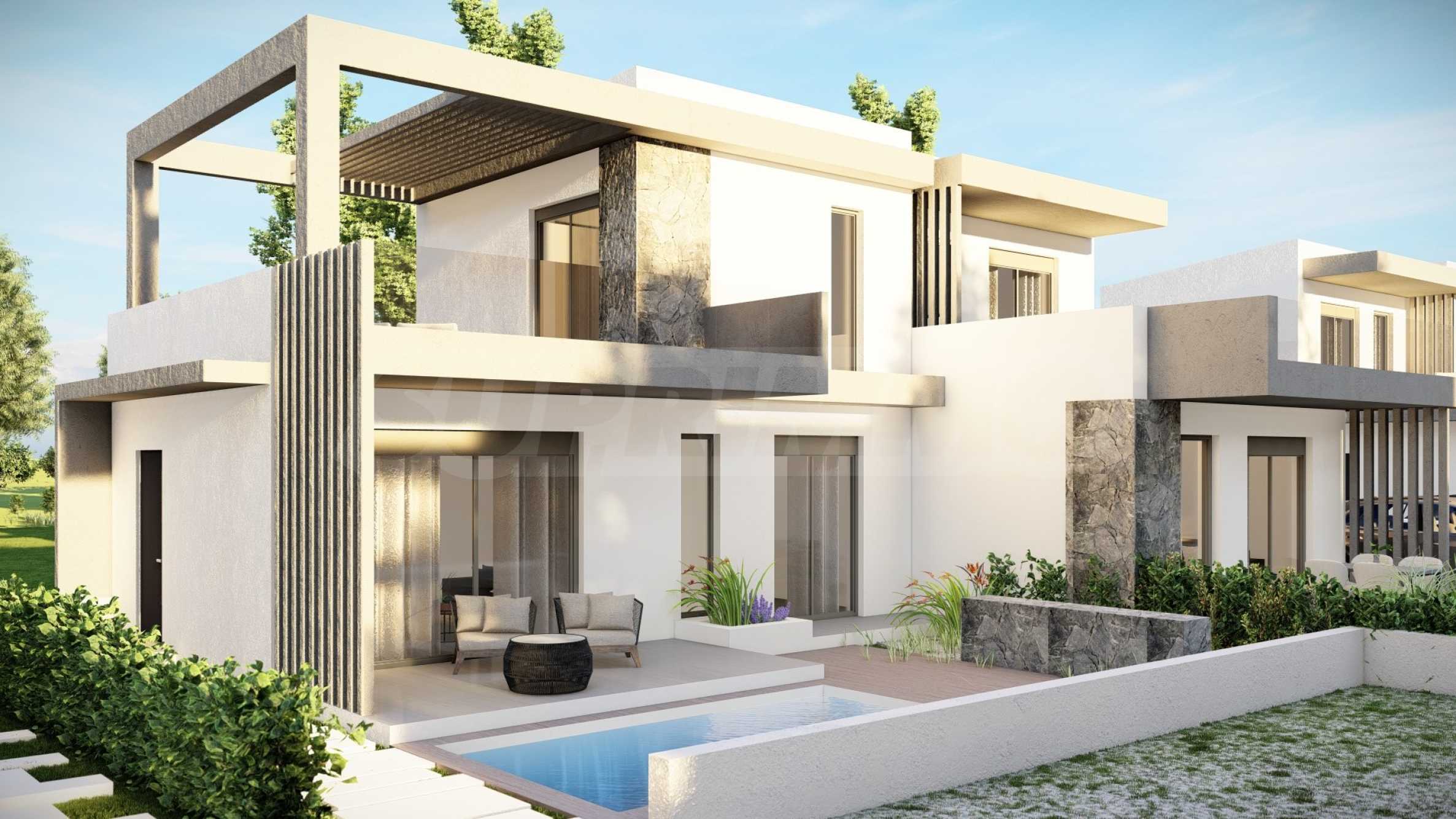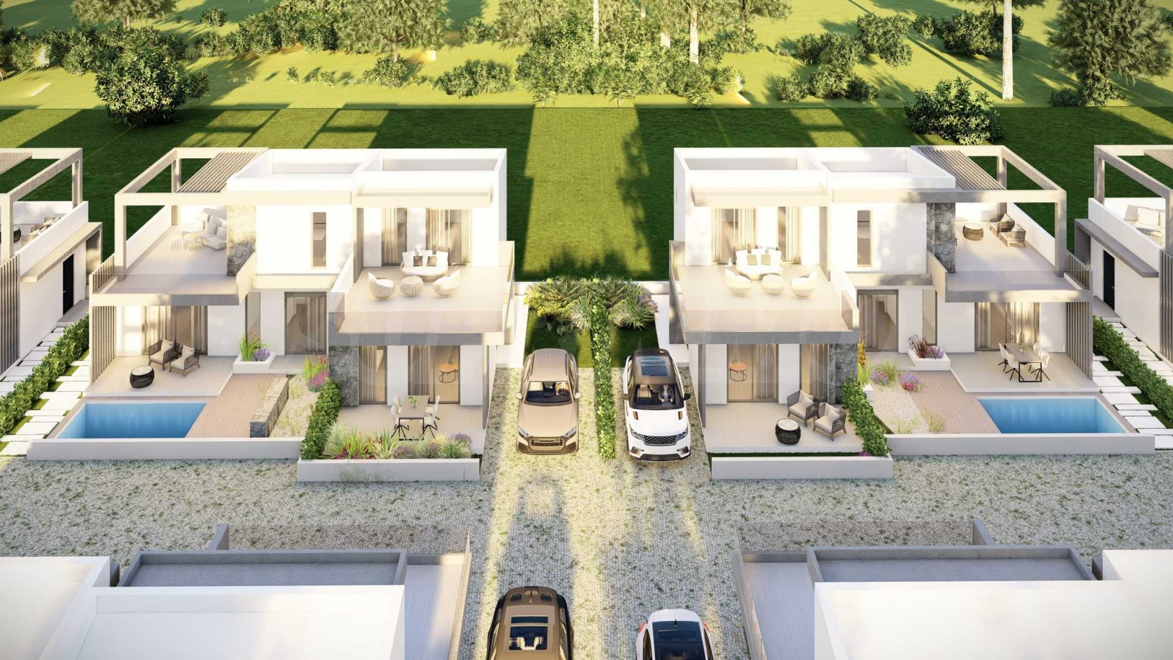 The complex consists of 20 summer residences, located in a quiet and peaceful location in the resort town. The homes have elegant, beautifully crafted facades, combining light tones and natural materials, creating a feeling of luxury and comfort. The layouts of the houses are designed to offer maximum comfort, and the large windows provide plenty of natural light in the rooms. The houses also have spacious balconies, which are the ideal place for meeting friends and pleasant conversations under the starry sky. Selected homes have an outdoor swimming pool right next to the veranda, which, in addition to the opportunity for cooling baths, is also an excellent place for family entertainment and games with children.