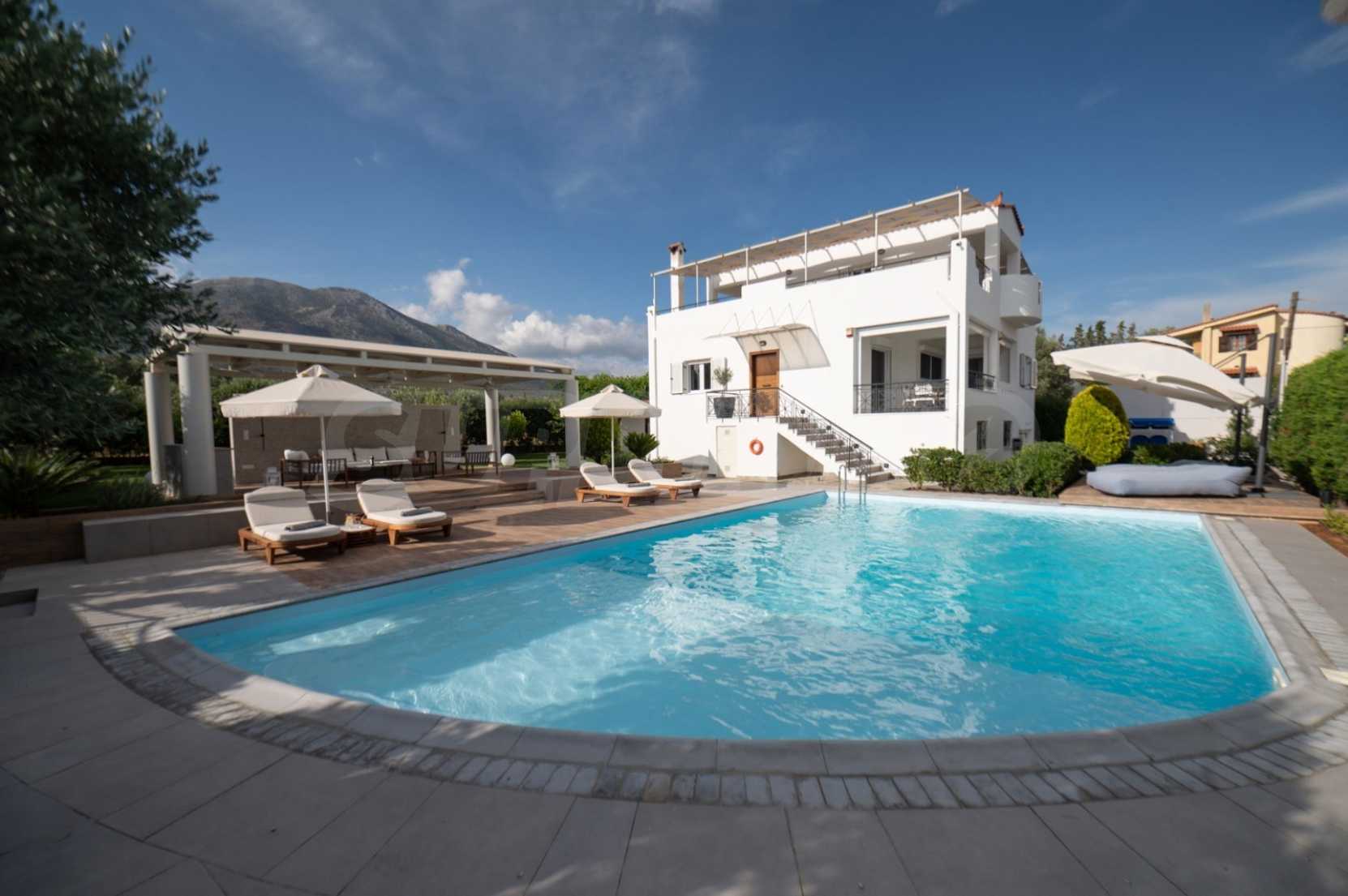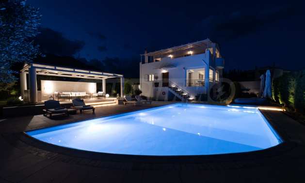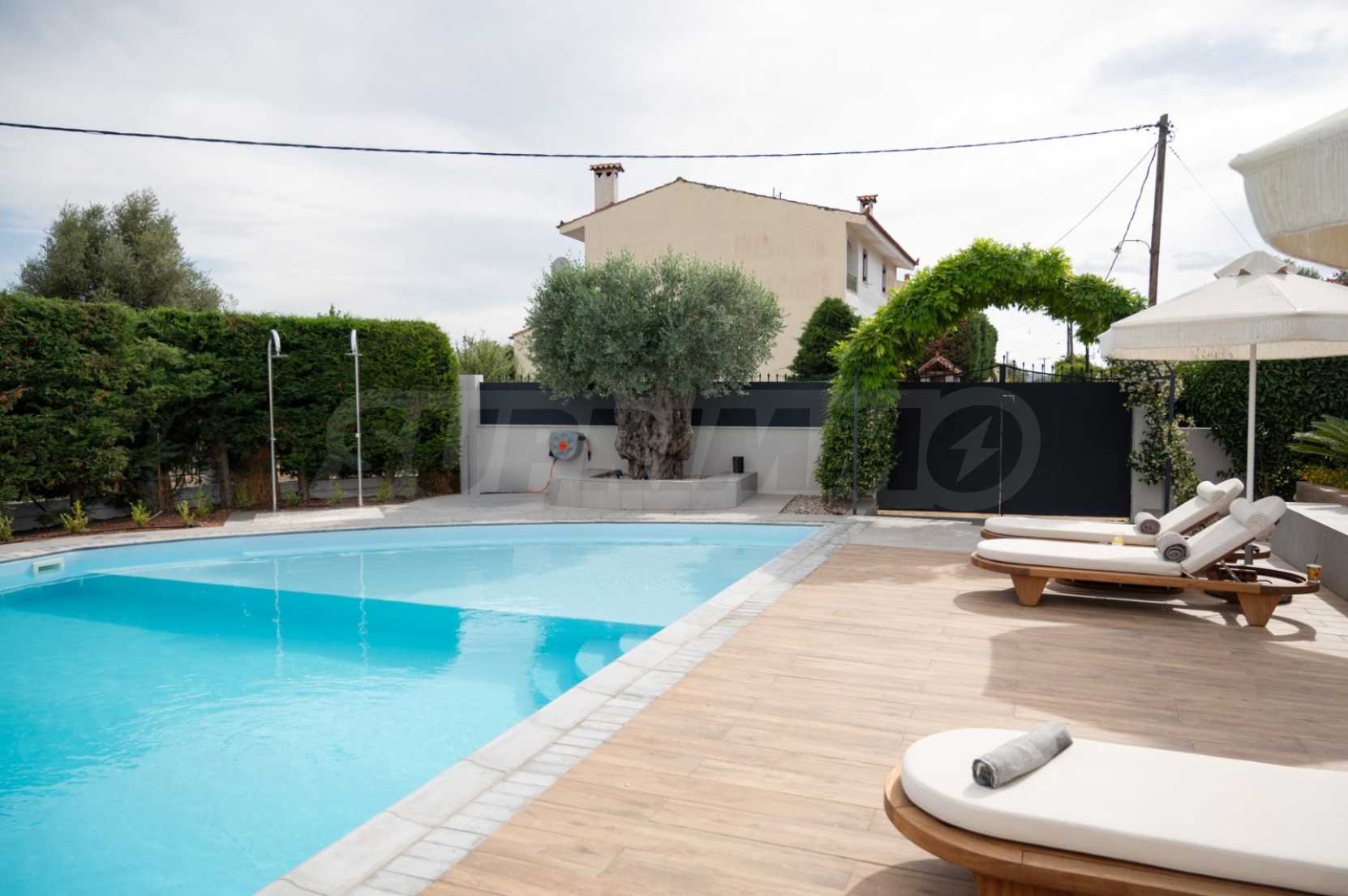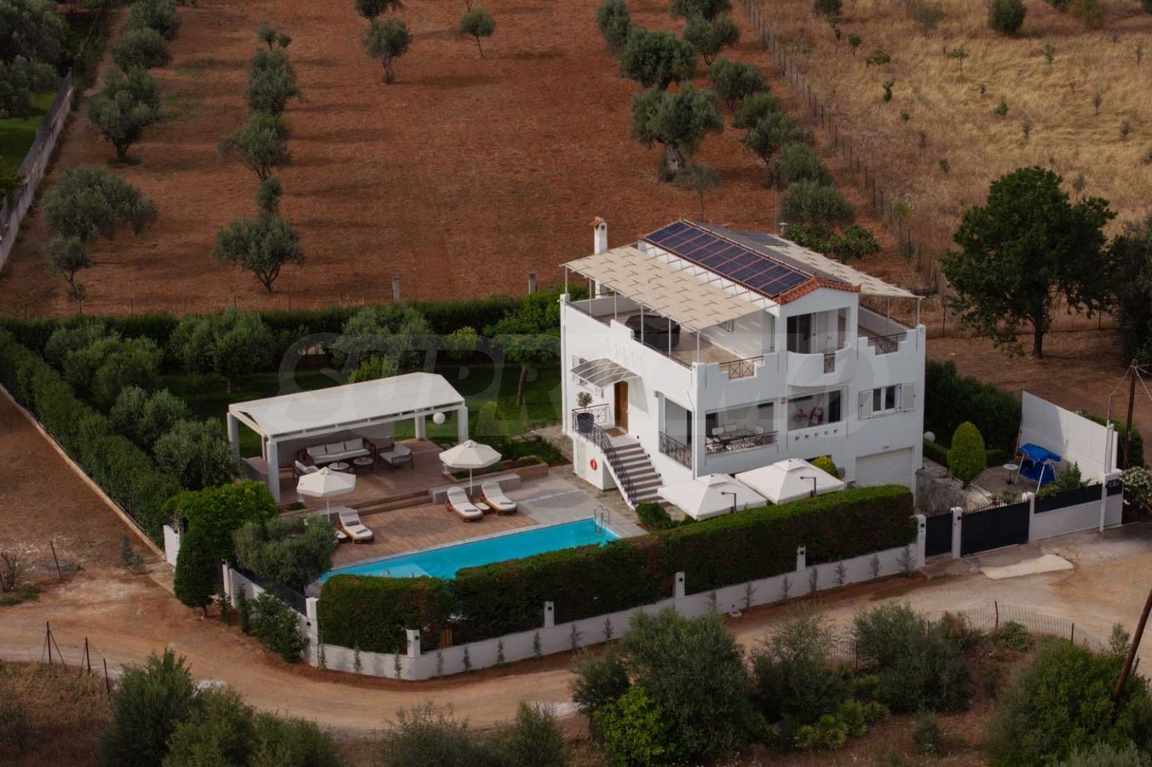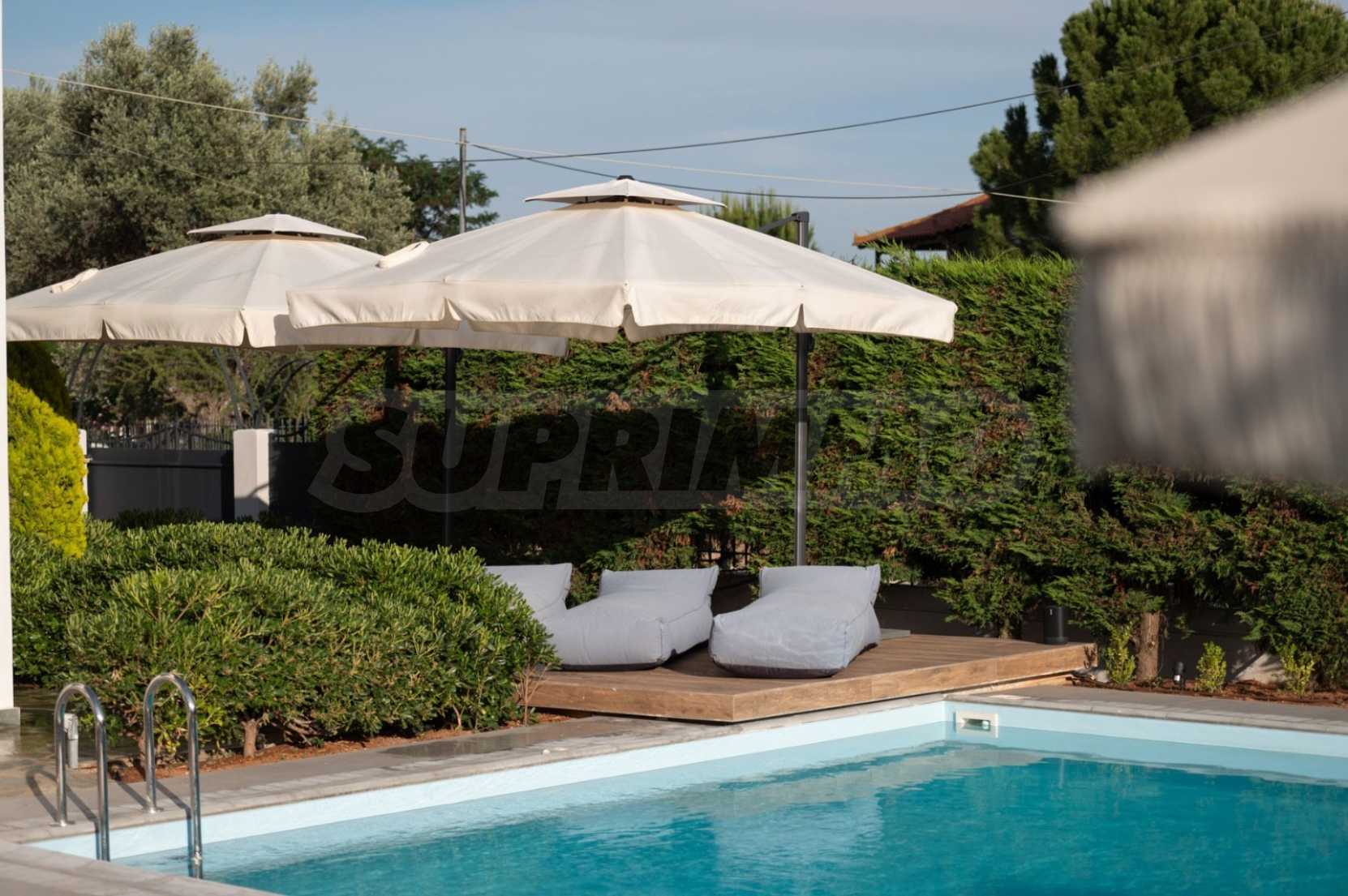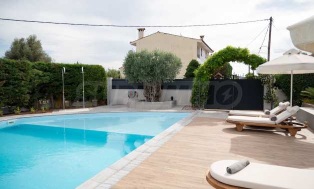 A fully renovated luxury villa () is now for sale on the Greek island of Evia, a top destination for international travelers. Situated between Amarinthos (4 km) and Eretria (7 km), just 25 km from Chalkida and 800m from the nearest beach, the villa offers 225 sqm of living space on a 1,100 sqm lot. The house includes 3 spacious bedrooms, 2 modern bathrooms, a fully equipped kitchen, dining and living areas with a fireplace, AC units, central heating, high-speed internet, and a water desalination system. The outdoor space boasts a heated swimming pool (11.5m x 6.5m) with jet pump, luxurious decks, a pergola with ceiling fans and appliances, a full outdoor bathroom, BBQ facilities, and a lush garden with automatic irrigation. The property is equipped with solar panels (8.2KW), a security system, and features ample storage and parking with potential for expansion, including additional bedrooms. Located less than 90 km (1.5 hours) from Athens, this villa offers modern luxury, natural beauty, and proximity to picturesque fishing villages and vibrant city life, making it a unique opportunity for a dream home or investment.