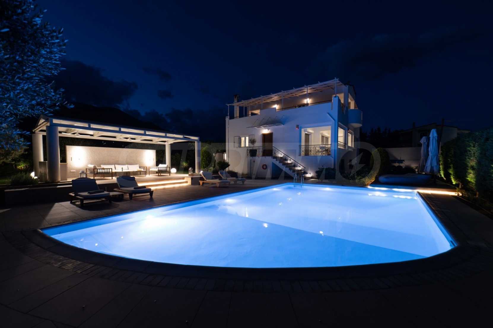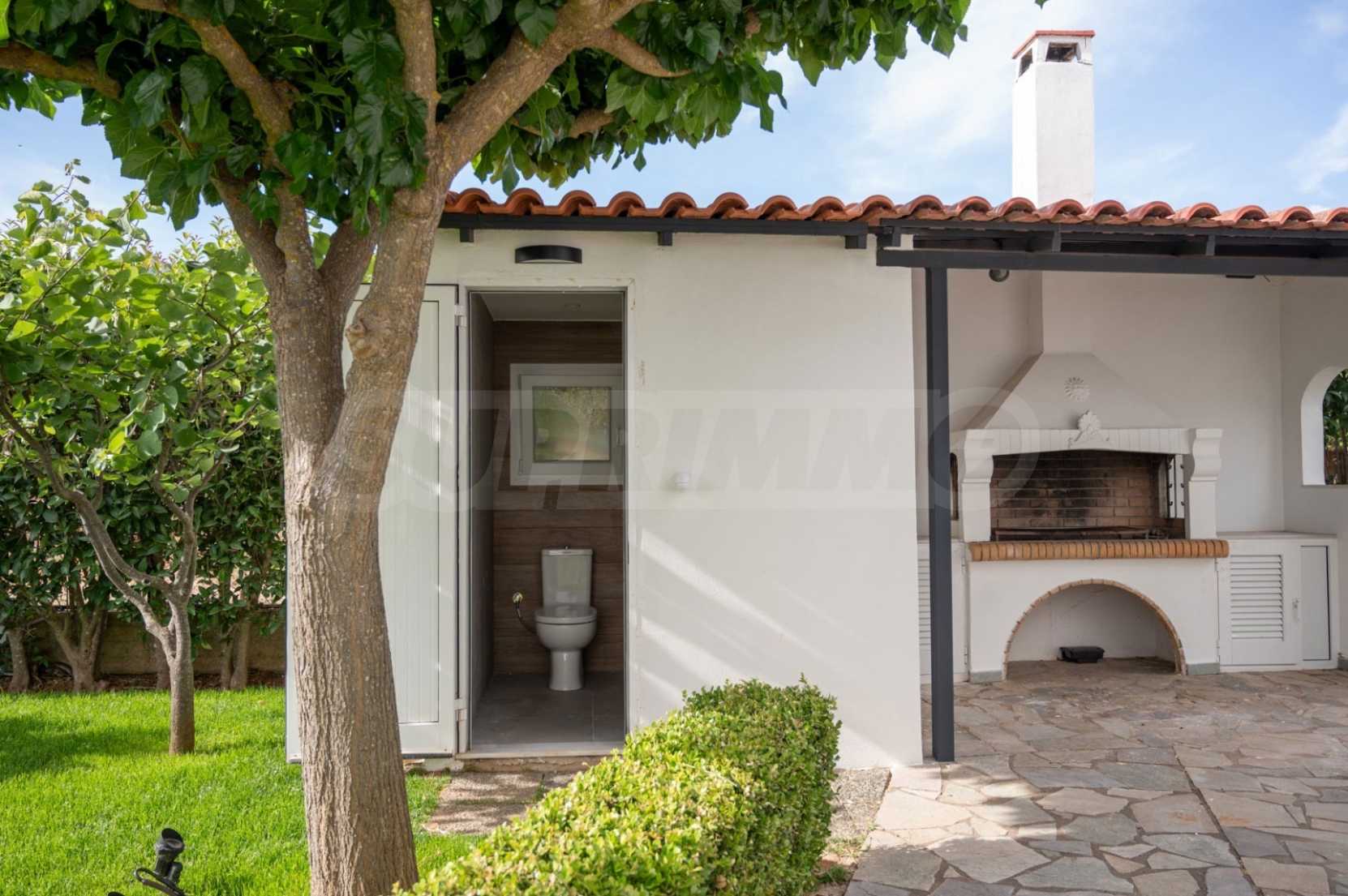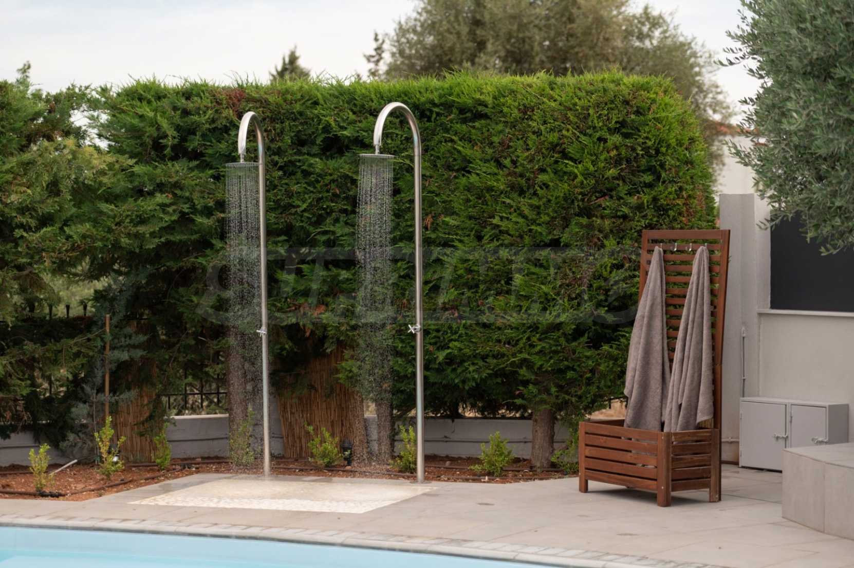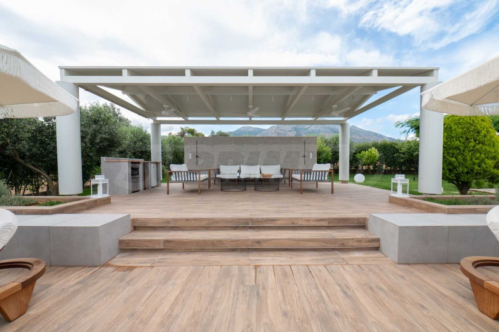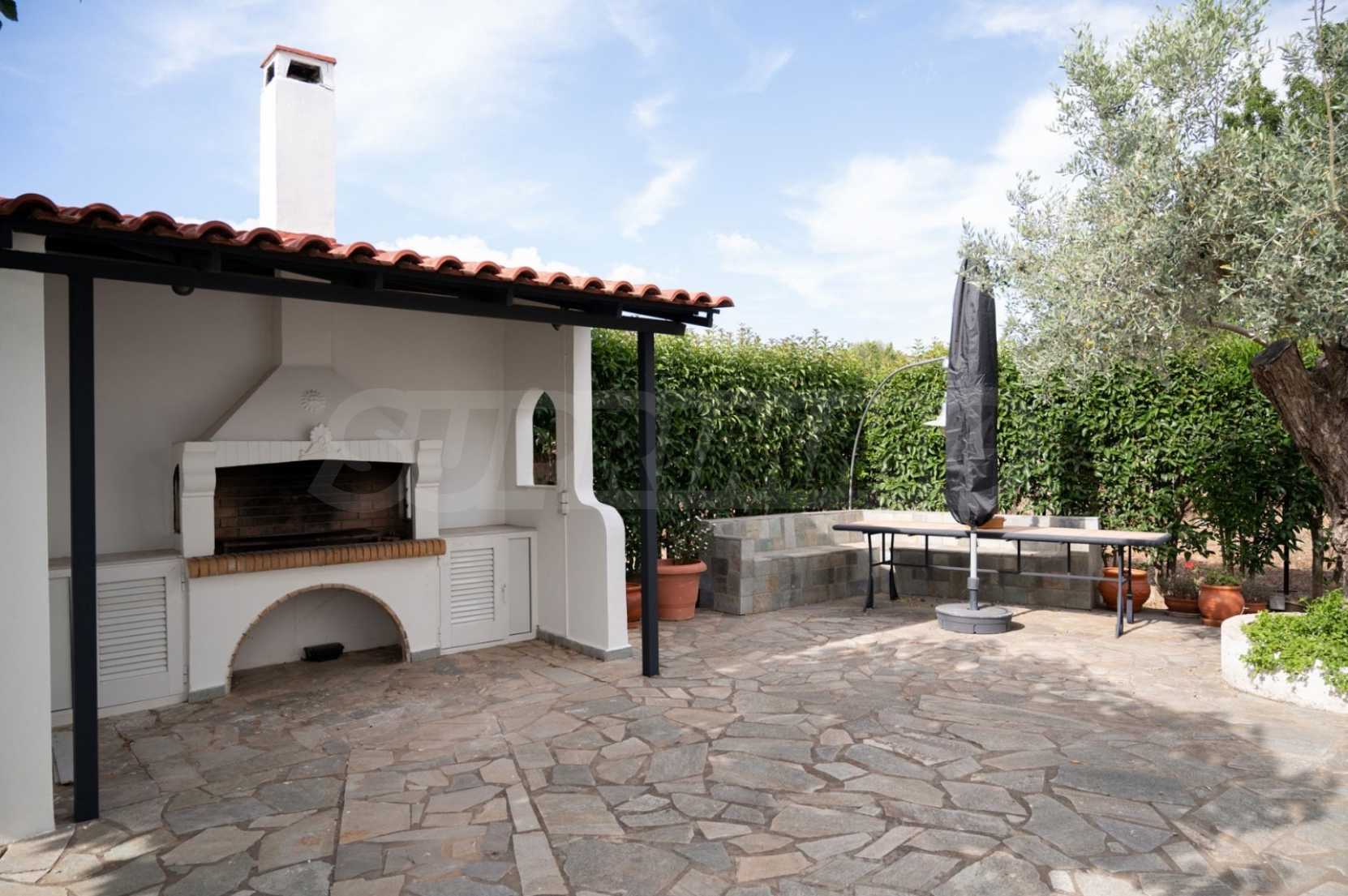 A fully renovated luxury villa () is now for sale on the Greek island of Evia, a top destination for international travelers. Situated between Amarinthos (4 km) and Eretria (7 km), just 25 km from Chalkida and 800m from the nearest beach, the villa offers 225 sqm of living space on a 1,100 sqm lot. The house includes 3 spacious bedrooms, 2 modern bathrooms, a fully equipped kitchen, dining and living areas with a fireplace, AC units, central heating, high-speed internet, and a water desalination system. The outdoor space boasts a heated swimming pool (11.5m x 6.5m) with jet pump, luxurious decks, a pergola with ceiling fans and appliances, a full outdoor bathroom, BBQ facilities, and a lush garden with automatic irrigation. The property is equipped with solar panels (8.2KW), a security system, and features ample storage and parking with potential for expansion, including additional bedrooms. Located less than 90 km (1.5 hours) from Athens, this villa offers modern luxury, natural beauty, and proximity to picturesque fishing villages and vibrant city life, making it a unique opportunity for a dream home or investment.