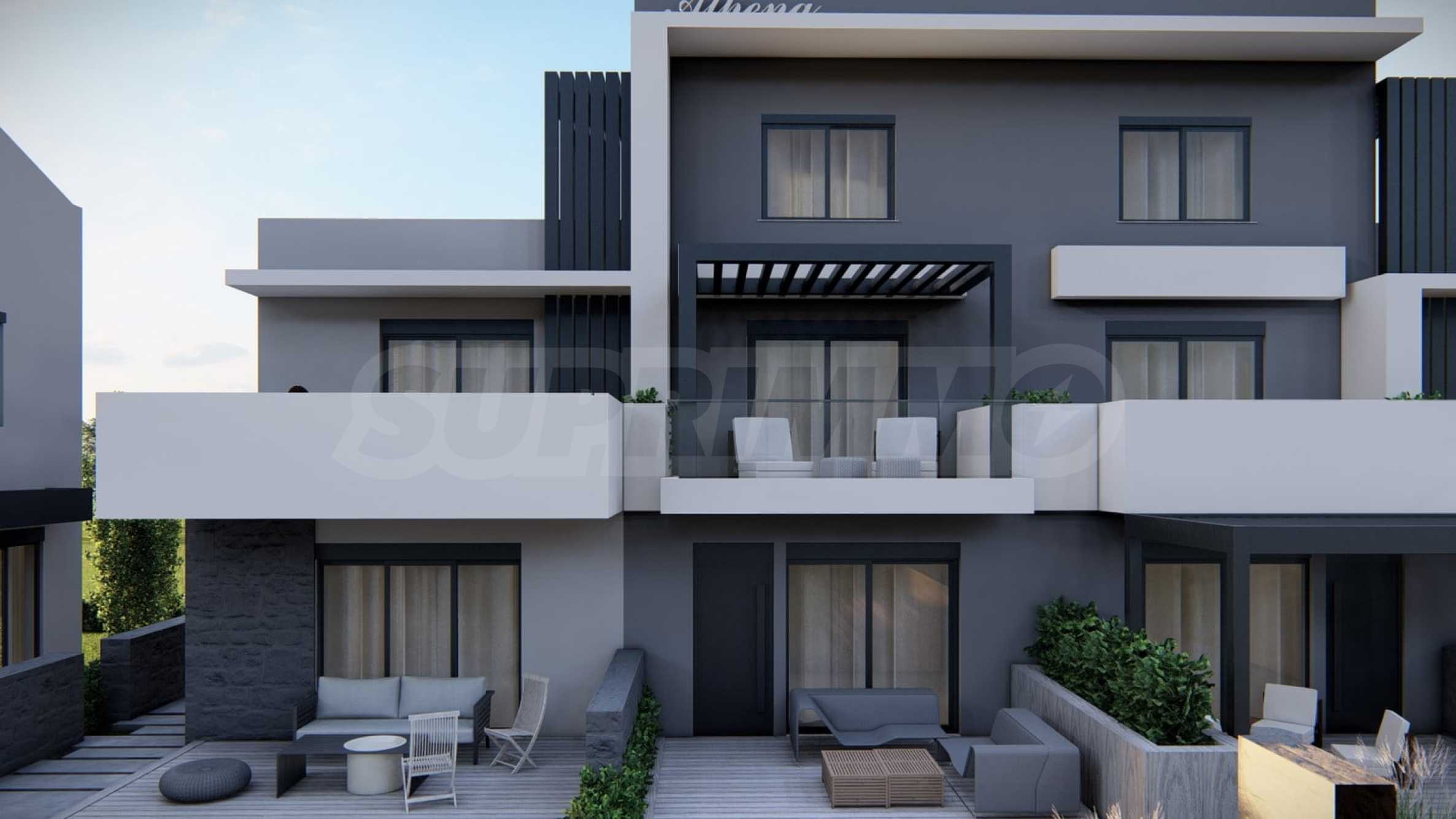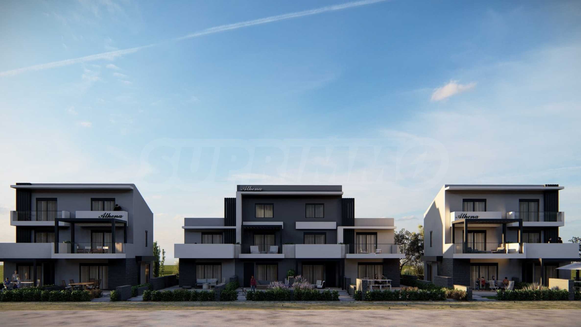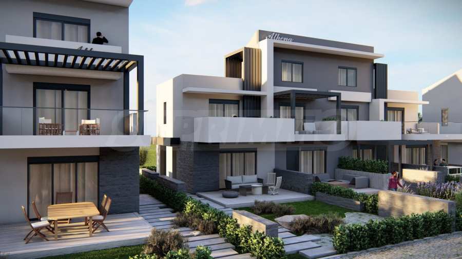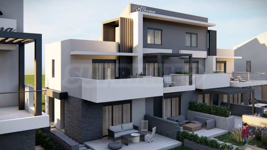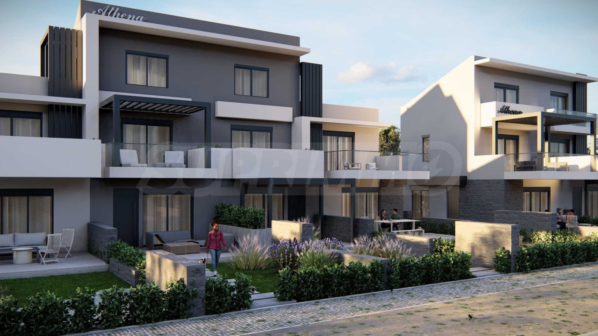 We present three-level terraced houses, part of the Athena residential complex, located 200 meters from the beach of Paralia Ofrinio, Greece.