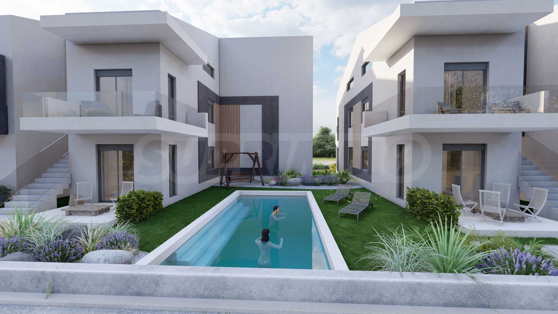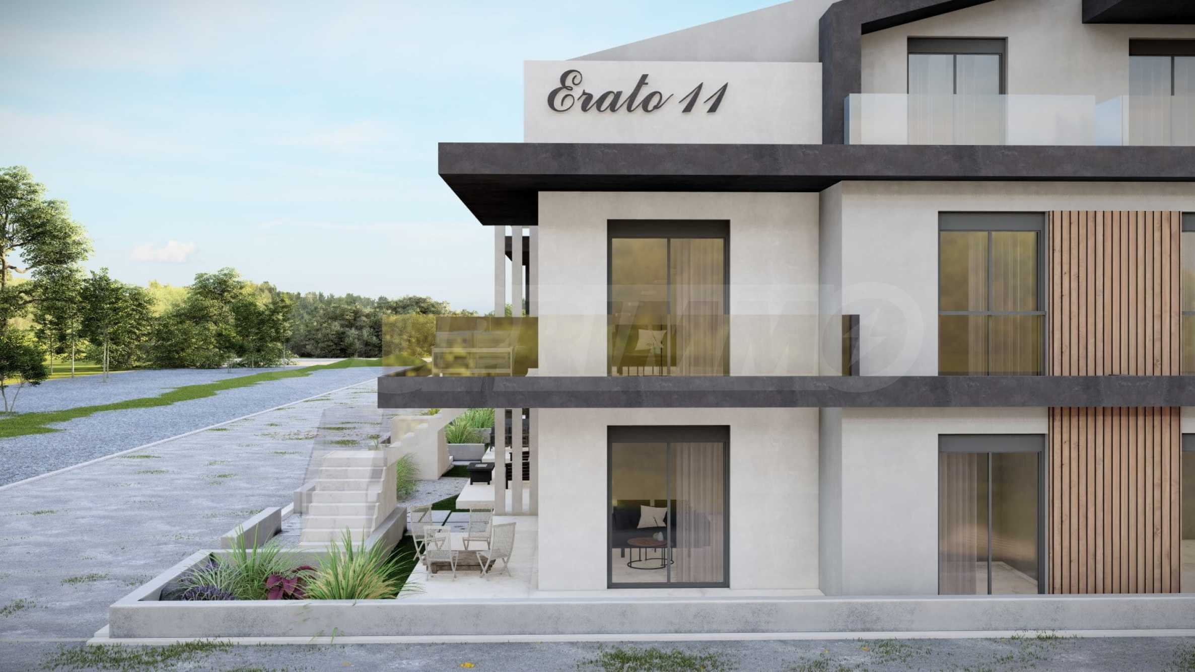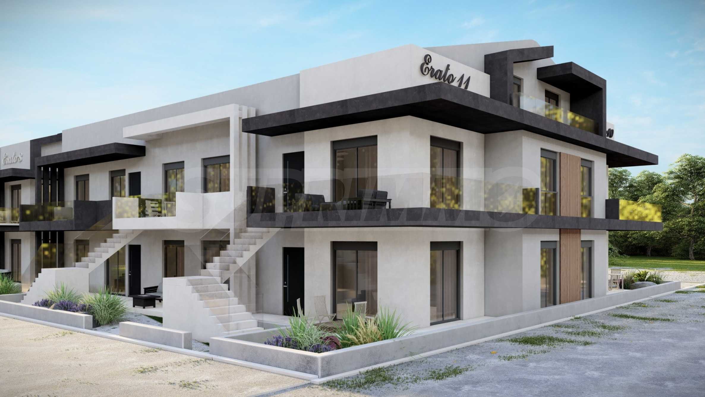 The residential complex is distinguished by an excellent location, close to the sea, while at the same time being surrounded by other residential buildings, providing a peaceful and quiet environment for its future residents. High-quality materials were used in the construction, and the exterior impresses with modern design solutions, combining clean lines, contrasting colors and elegant decorative elements. The apartments offer a functional layout of the spaces and large windows, guaranteeing an abundance of natural light. Particular attention has been paid to the yard space - enriched with rich landscaping, including trees and shrubs, it creates a feeling of harmony with nature. In addition, convenient parking spaces are provided for the residents, complementing the feeling of comfort and practicality.