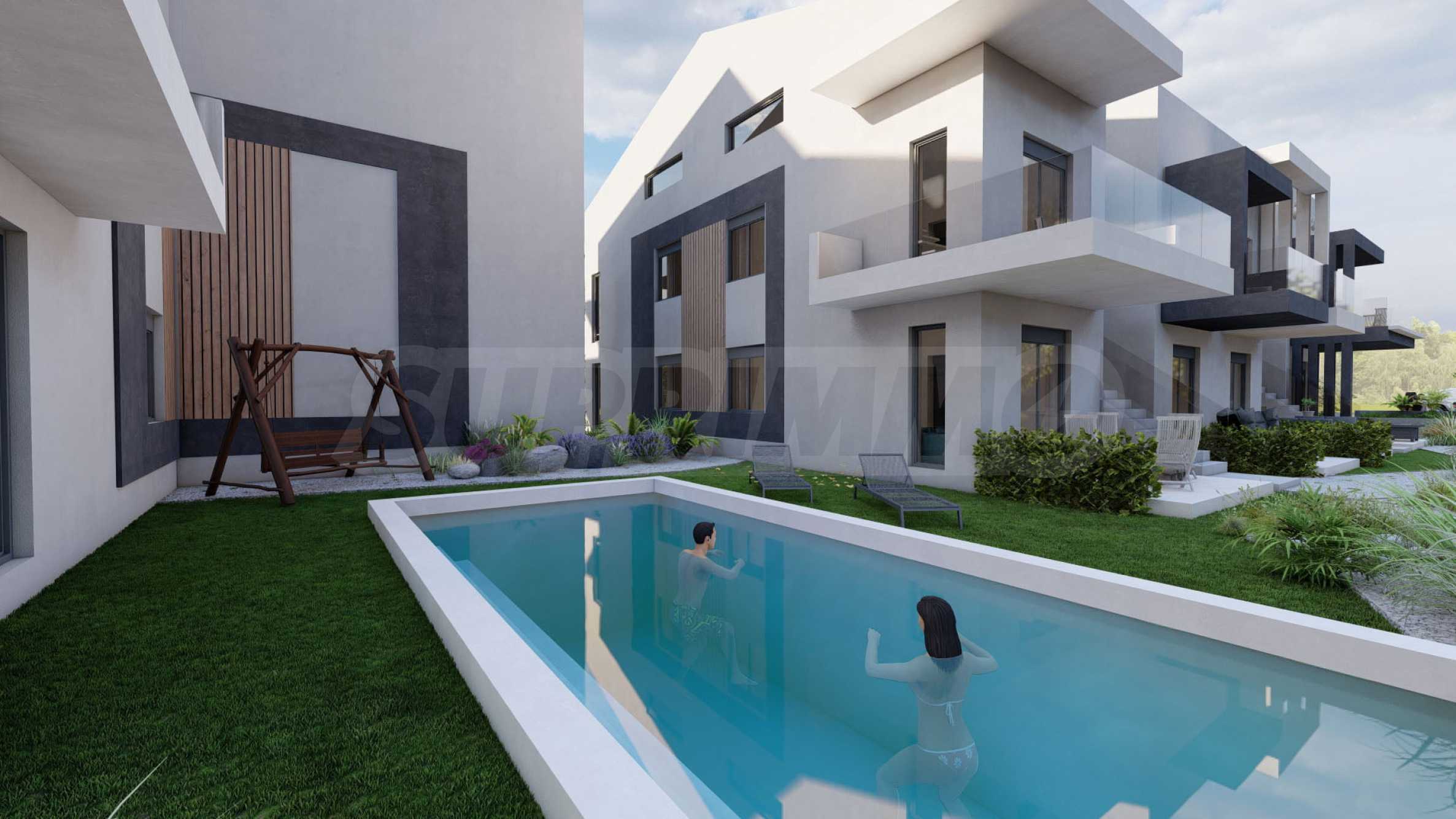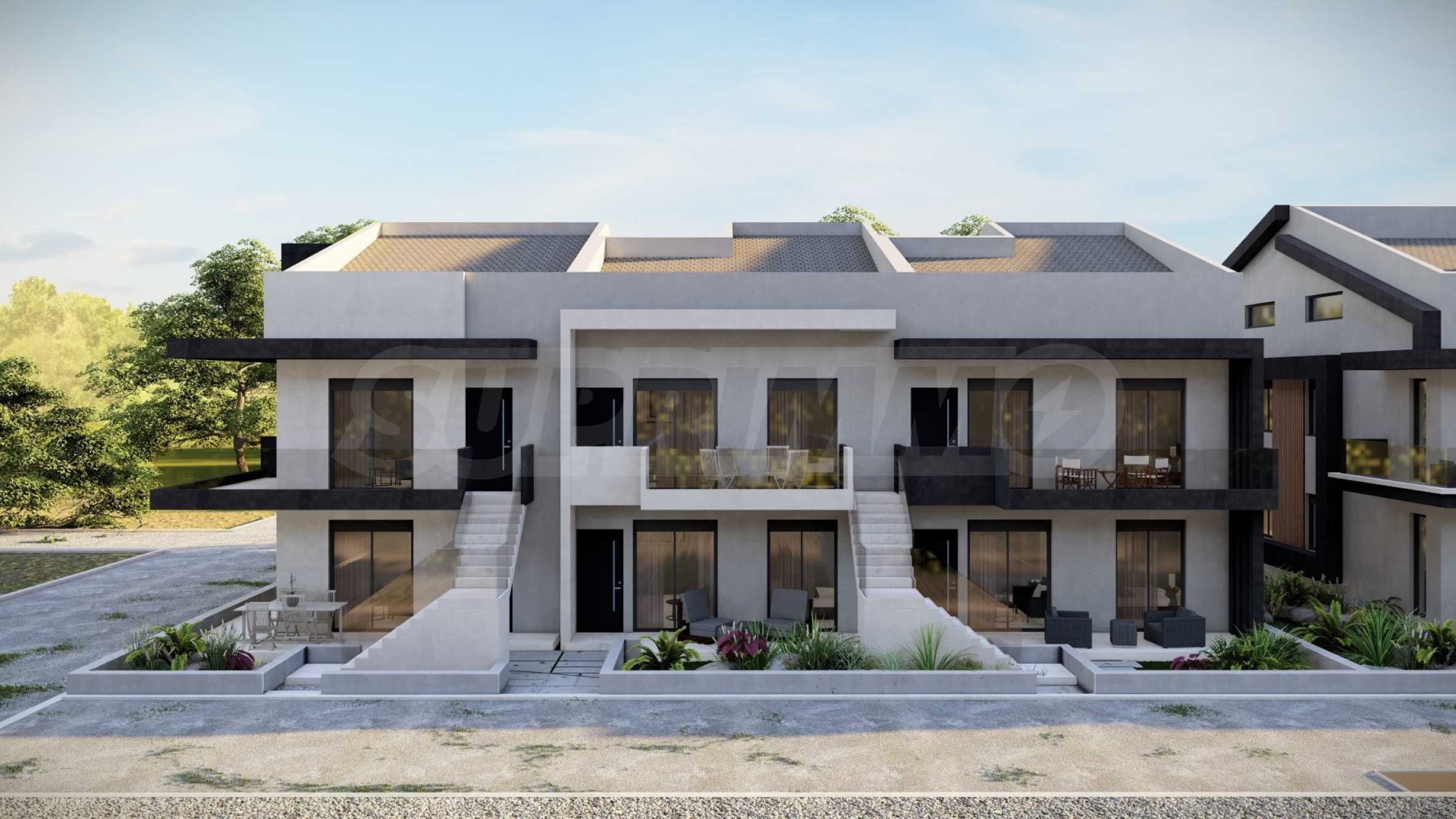 The available apartments are positioned on the second and third floors of the buildings and have an area of 68.68 to 73.96 sq m. The layout includes a living room with a built-in kitchen and access to a terrace, two bathrooms with a toilet, two comfortable bedrooms on the first level, and on the second level there is a master bedroom with its own bathroom and a dressing room. All apartments are sold complete "turnkey", with installed flooring, PVC windows, entrance and interior doors, built-in kitchen cabinets and a fully equipped bathroom.
