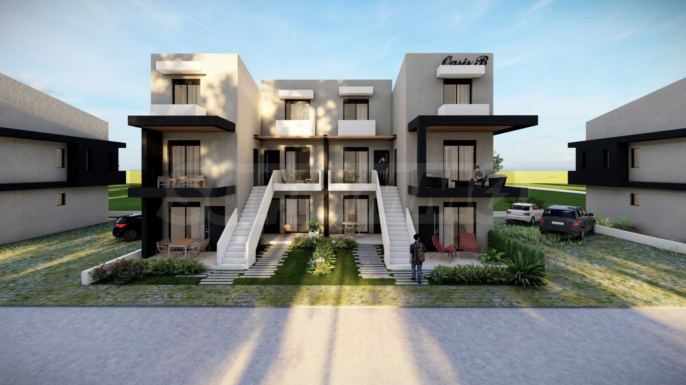 Oasis B is a contemporary complex, created with modern construction and maximum comfort in mind for its future residents. The architectural design of the four buildings has been carefully planned to ensure optimal use of space, functional layouts and abundant natural lighting in each room. The complex has convenient parking areas outside the buildings, which contribute to the convenience of the residents. The exquisitely designed garden with beautiful lawns and decorative vegetation creates a fresh and cozy atmosphere, bringing peace and a pleasant mood to all residents.