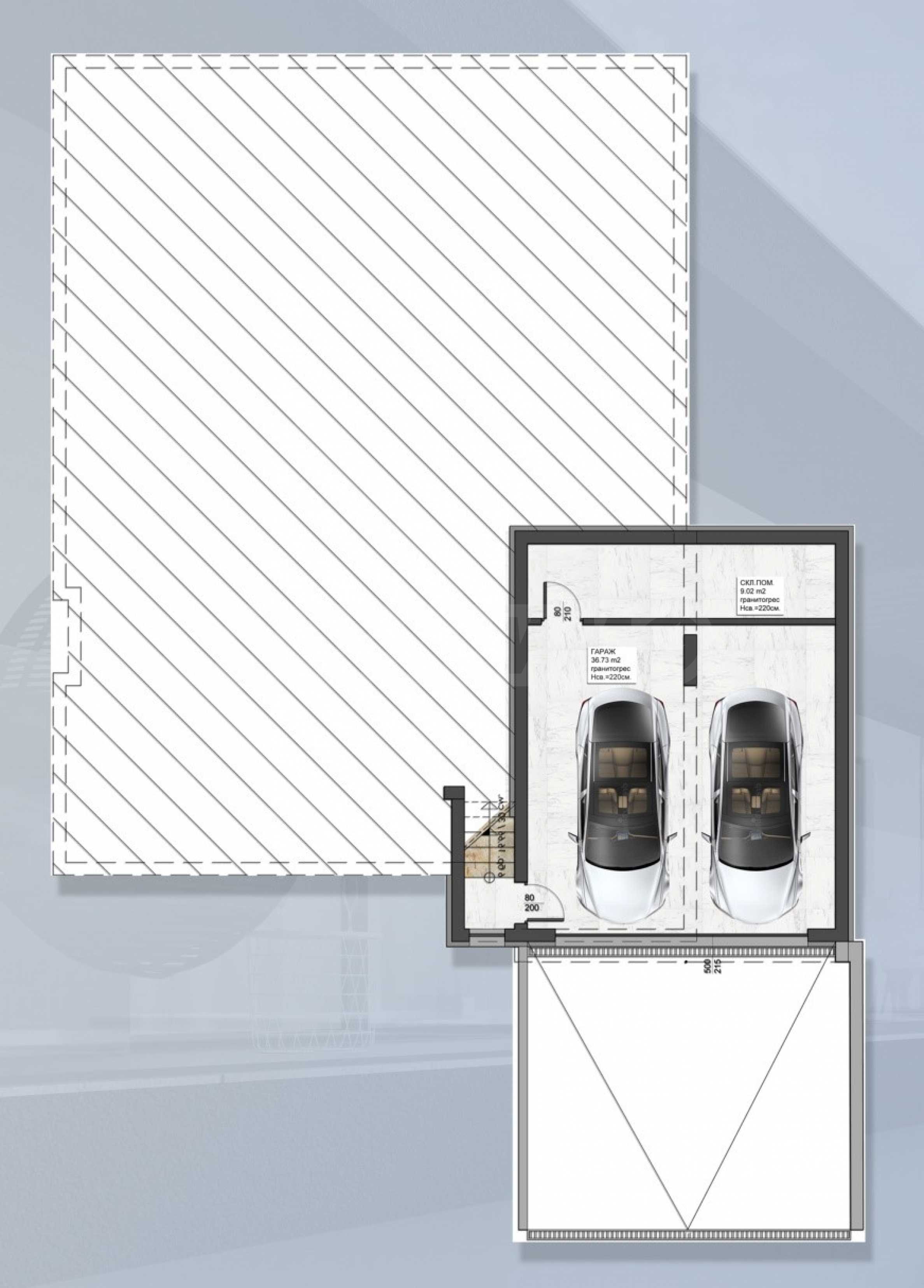 • Spacious garage for two cars (40 sq m) with a warm connection to the residential area.