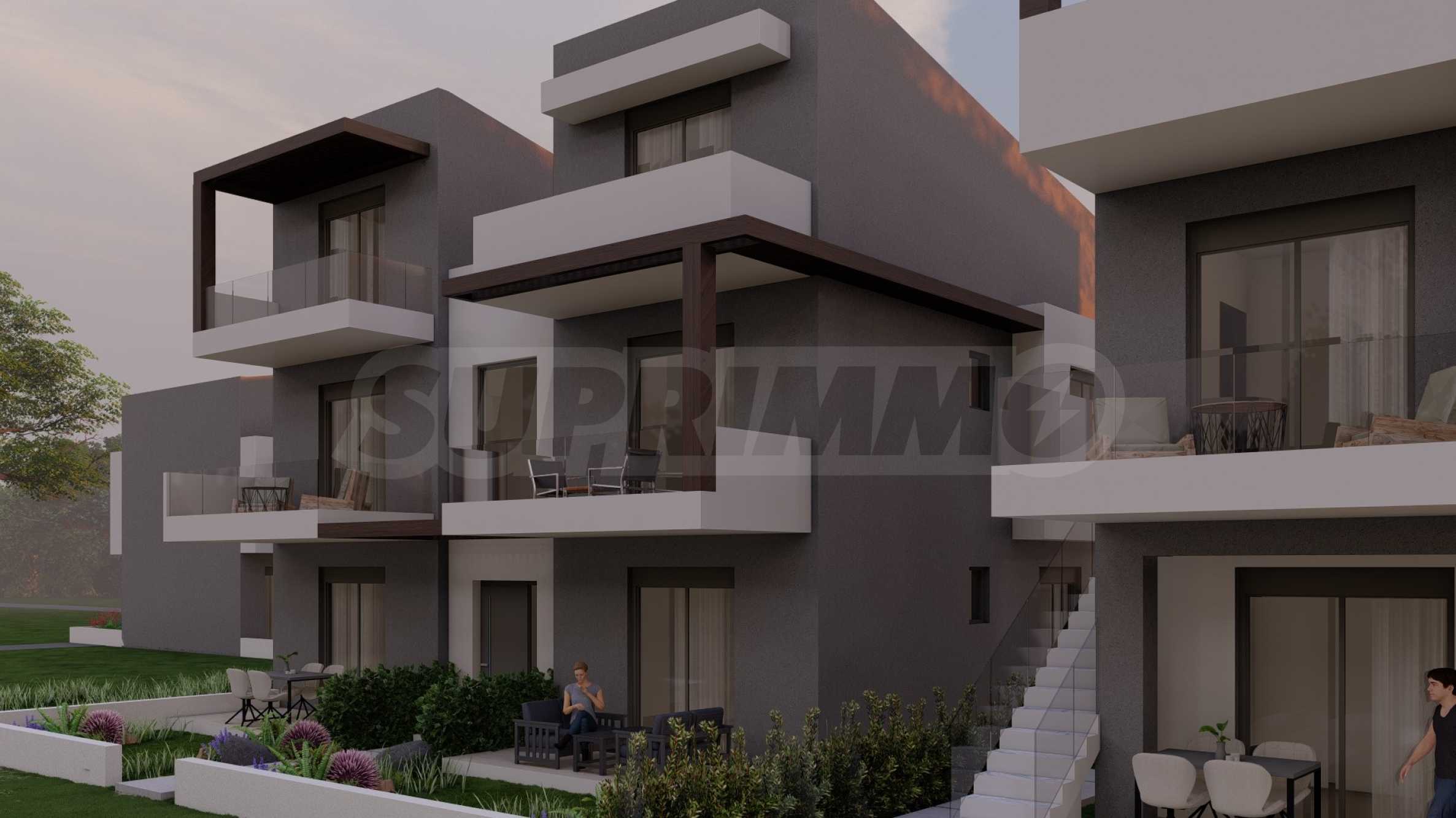 The complex consists of two buildings with a total of 16 apartments with modern design and functional architectural solutions. The available apartments range in size from 55.22 sq m to 60.44 sq m, and are accessed via an individual external staircase for each apartment.