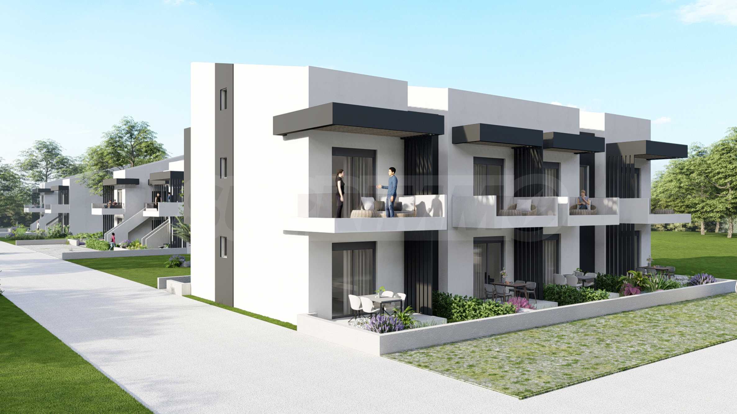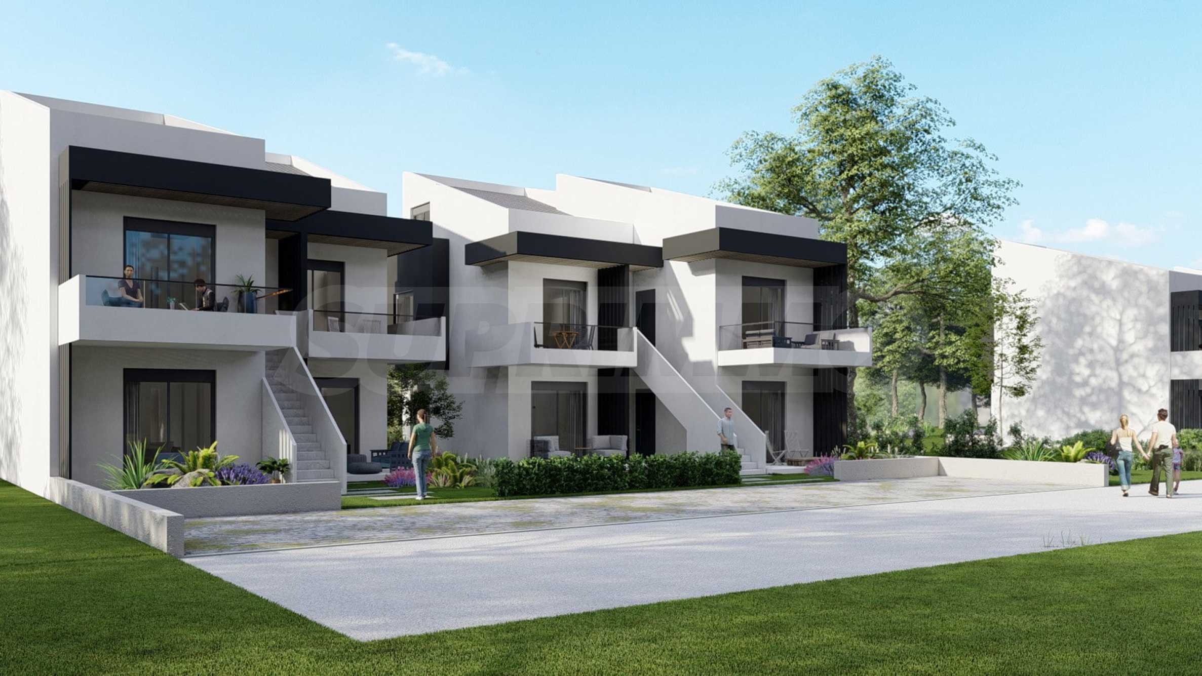 Leto Complex is located on a quiet and peaceful street, away from large hotels and large-scale complexes, which guarantees privacy and comfort for its residents. It consists of three elegant buildings with a total of 24 functional and cozy apartments. The architecture of the complex combines modern construction standards with clean lines and sophisticated details around the terraces. In order to minimize the common areas, the staircases to the apartments on the second floor are taken outside, which not only optimizes the space, but also contributes to more peace and solitude. The green areas and carefully maintained gardens create an ideal atmosphere for relaxation and pleasant moments with loved ones.