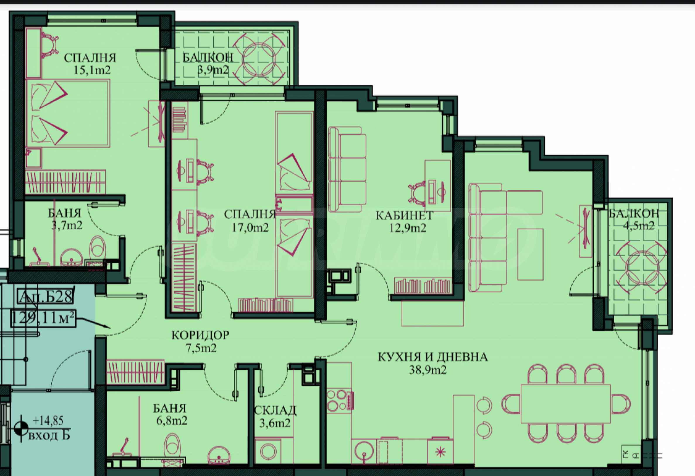REF#AP 128570 / 3-bedroom apartment / Malinova Dolina district / Sofia / Sofia region / Bulgaria / For sale On the map