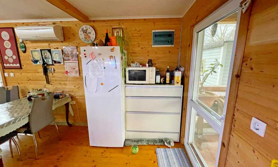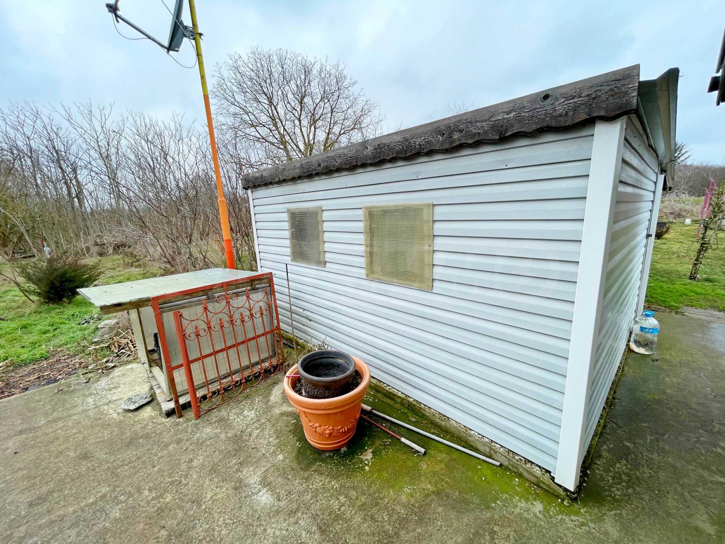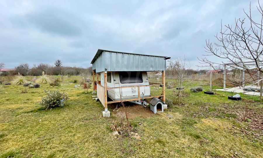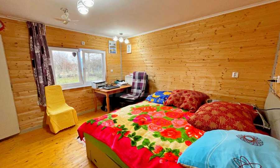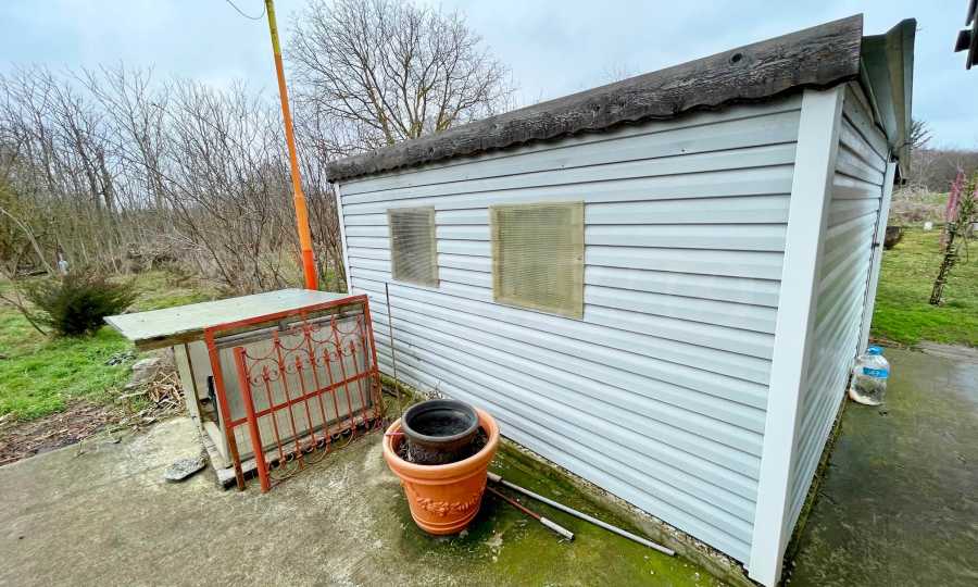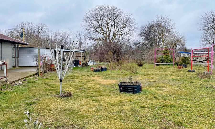 The building is wooden and built in 2017 with very good insulation and a thick concrete slab for the foundation. The entire plot is 1160 m2 in size, on which many trees and plants are already planted. There is an additional outbuilding that serves as a storage for garden items and a 1000 liter container with a hydrophore as a second source of water. There is also a caravan with a specially built shed attached to the house.