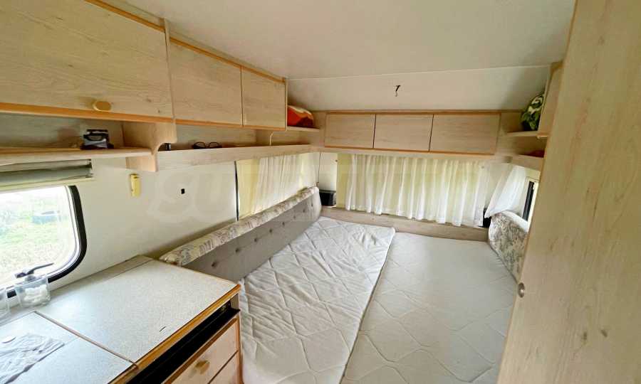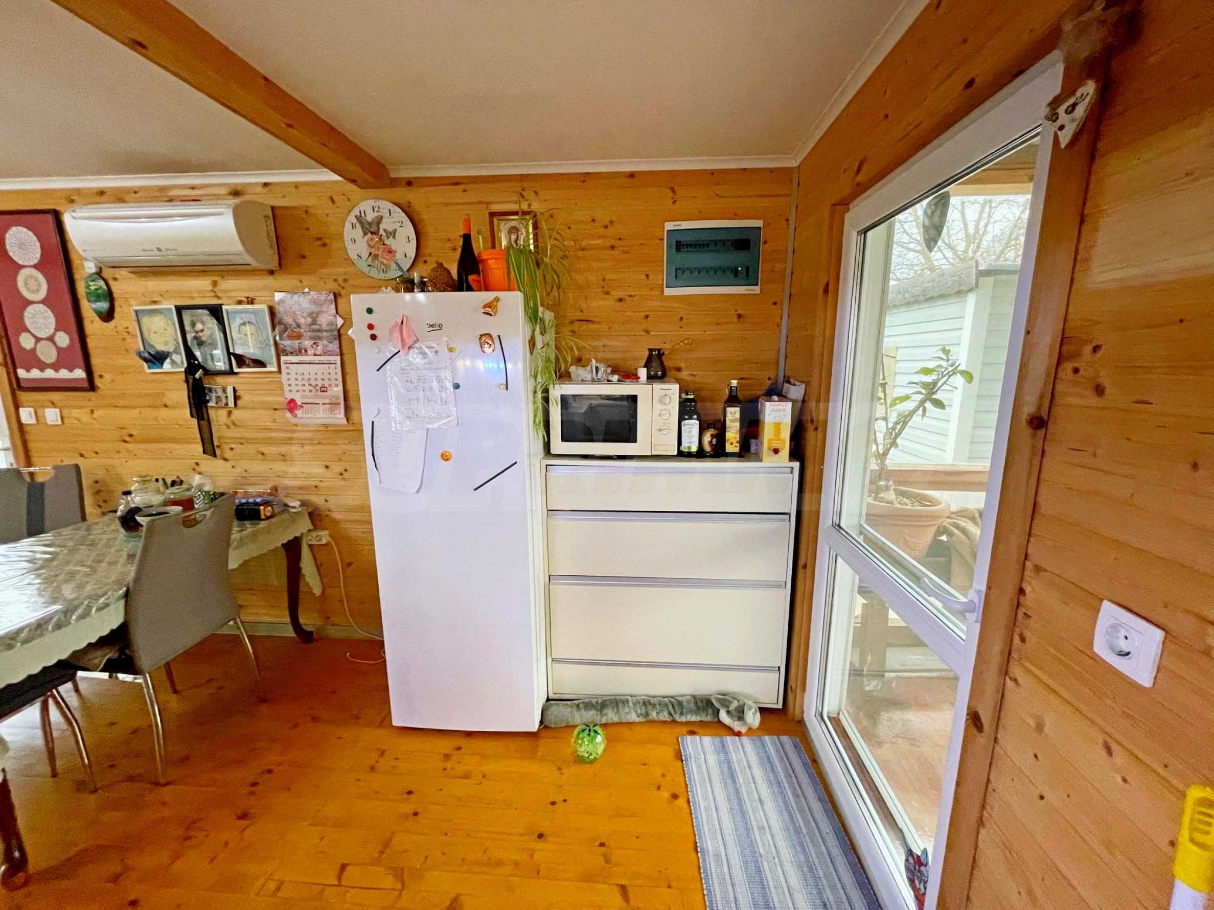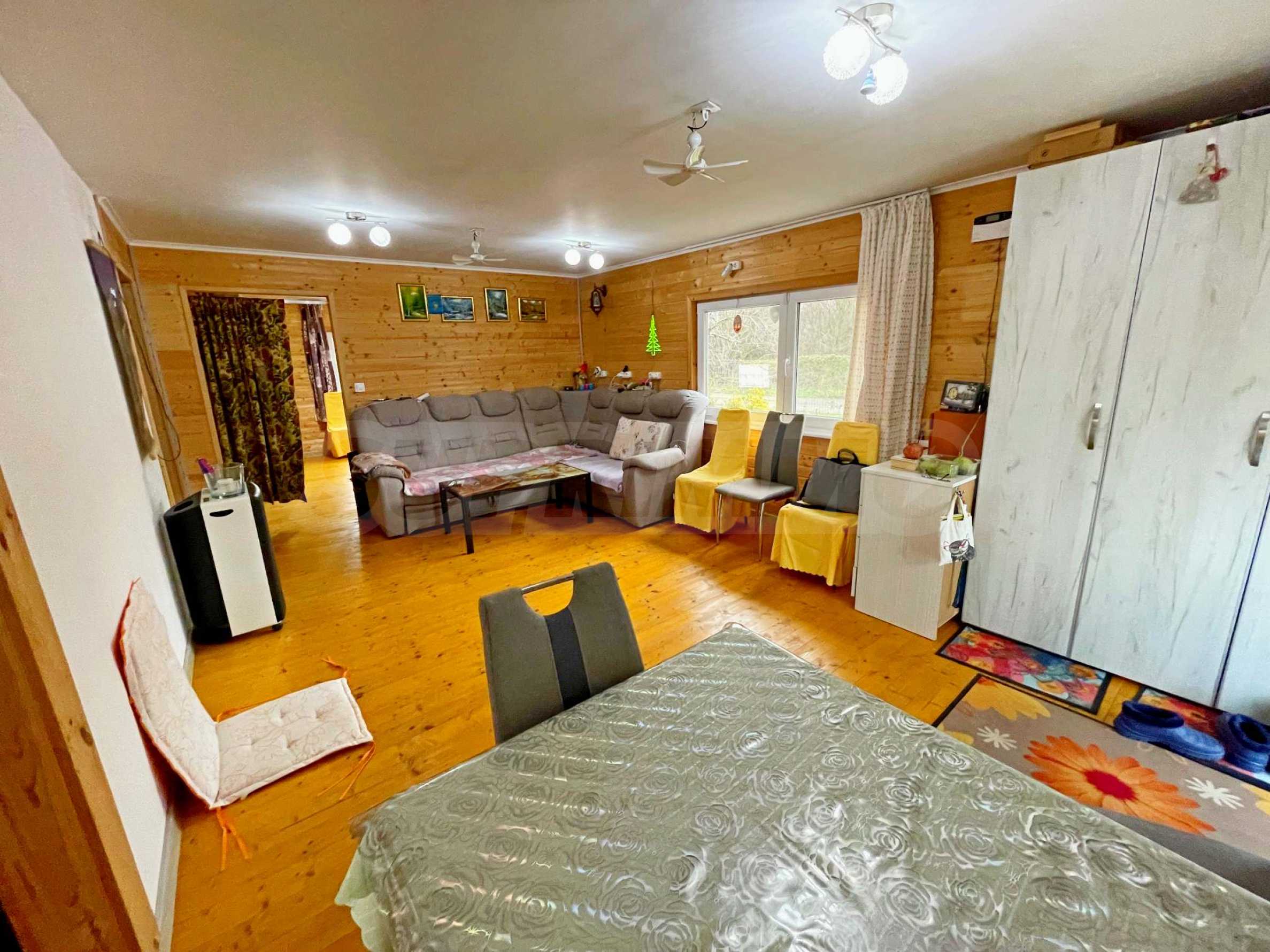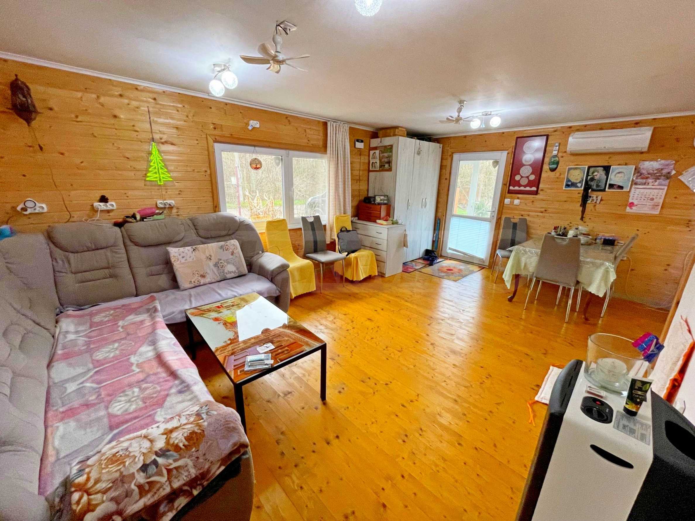 The building is wooden and built in 2017 with very good insulation and a thick concrete slab for the foundation. The entire plot is 1160 m2 in size, on which many trees and plants are already planted. There is an additional outbuilding that serves as a storage for garden items and a 1000 liter container with a hydrophore as a second source of water. There is also a caravan with a specially built shed attached to the house.