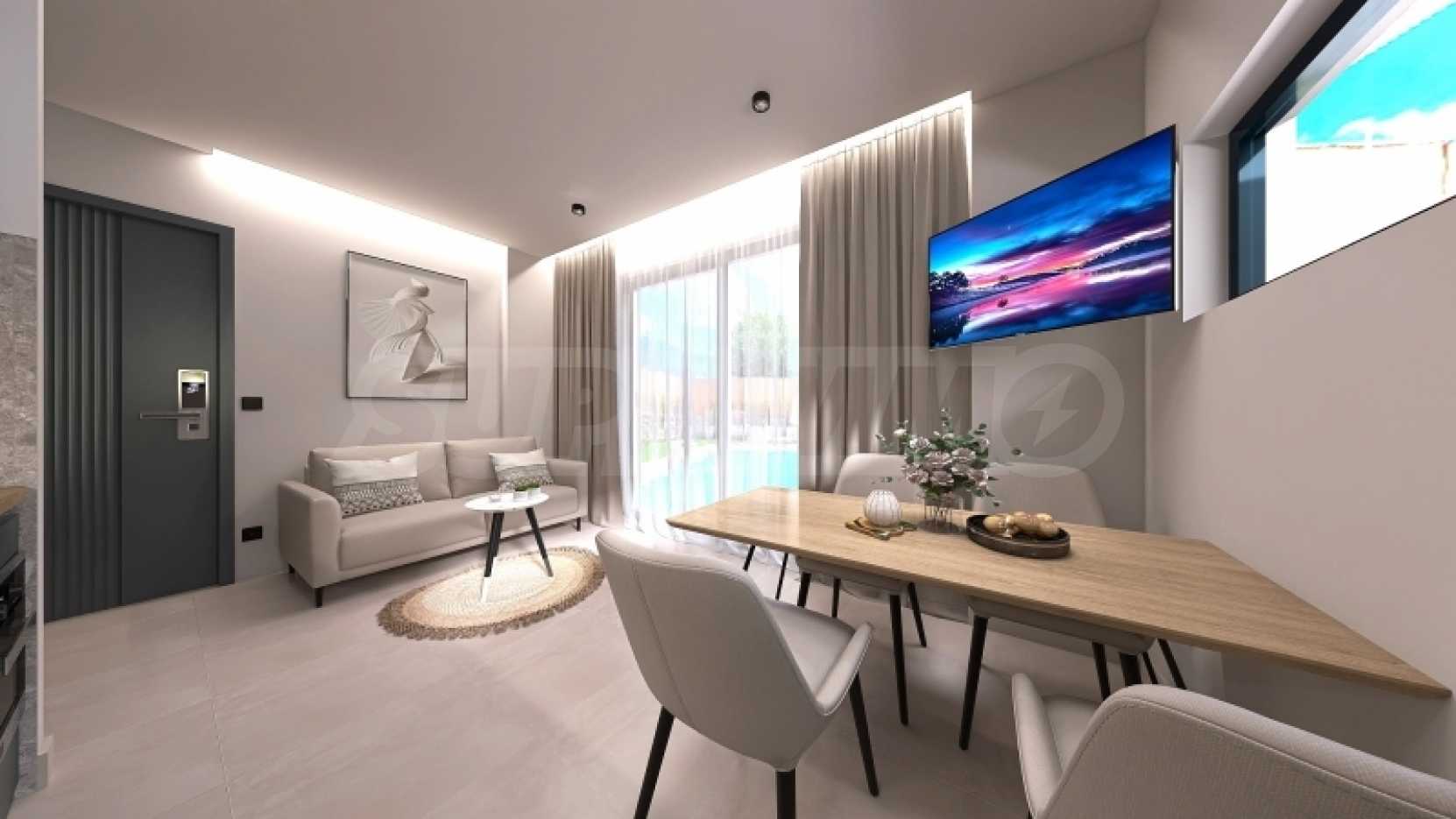 Apartment FOR SALE in Thasos Ormos Prinou for ˆ 103.990 Exclusivity. This 36.92 sq. m. furnished Apartment is on the Ground floor and features 1 Bedroom, an open-plan kitchen/living room, bathroom . The property also boasts Heating system: Air conditioner, tiled floor, view of the Sea, garden, swimming pool, A/C, electrical appliances, insect screens, double-glazed windows, solar-powered water heater, balconies: 16 sqm. The building was constructed in 2025 Distance from sea 130 meters, Distance from the city center: 18000 meters, Distance from nearest village: 300 meters,
