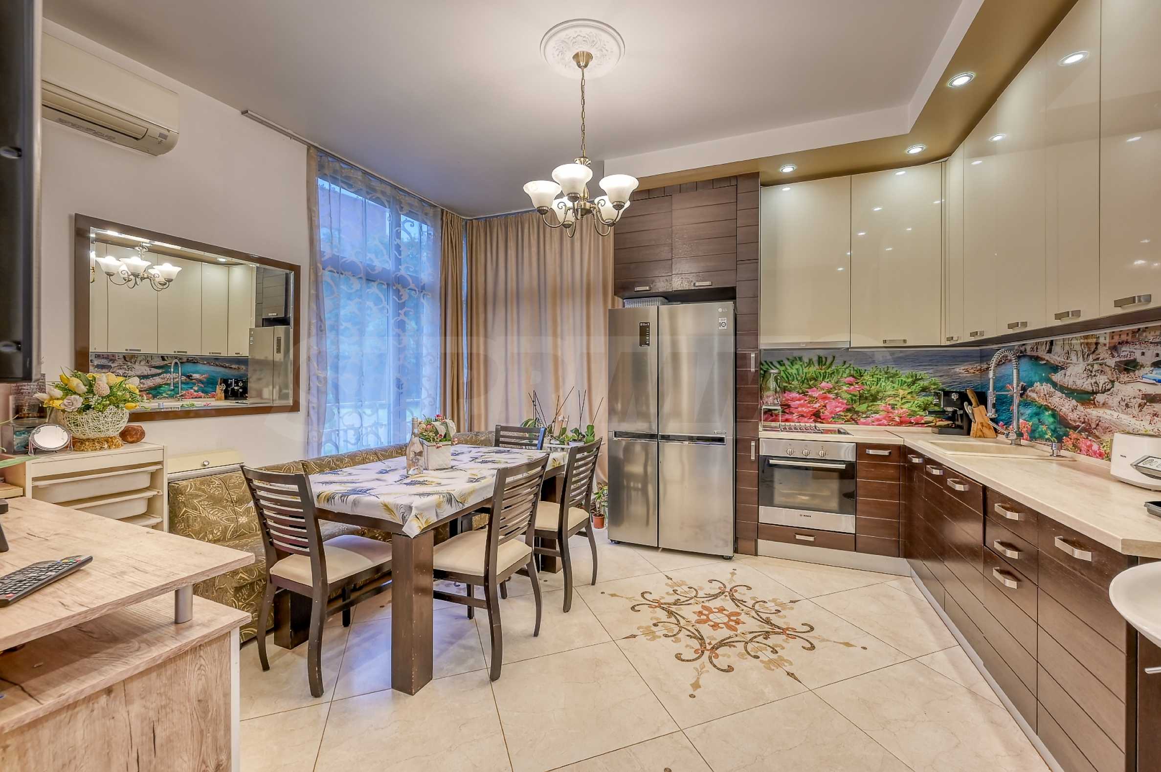 The apartment is located in a gated complex in the "Manastirski Livadi" district and offers a comfortable and functional living environment. It is fully furnished and ready to move in. The layout includes a spacious living room, combined with a dining room and kitchenette, three bright bedrooms, two bathrooms with toilet, storage room, balcony and hallway. The kitchen is equipped with all necessary appliances.