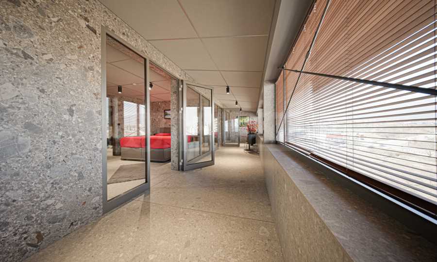 • The windows are aluminum double-glazed with a thermal bridge, bamboo blinds, hydro and thermal insulation.