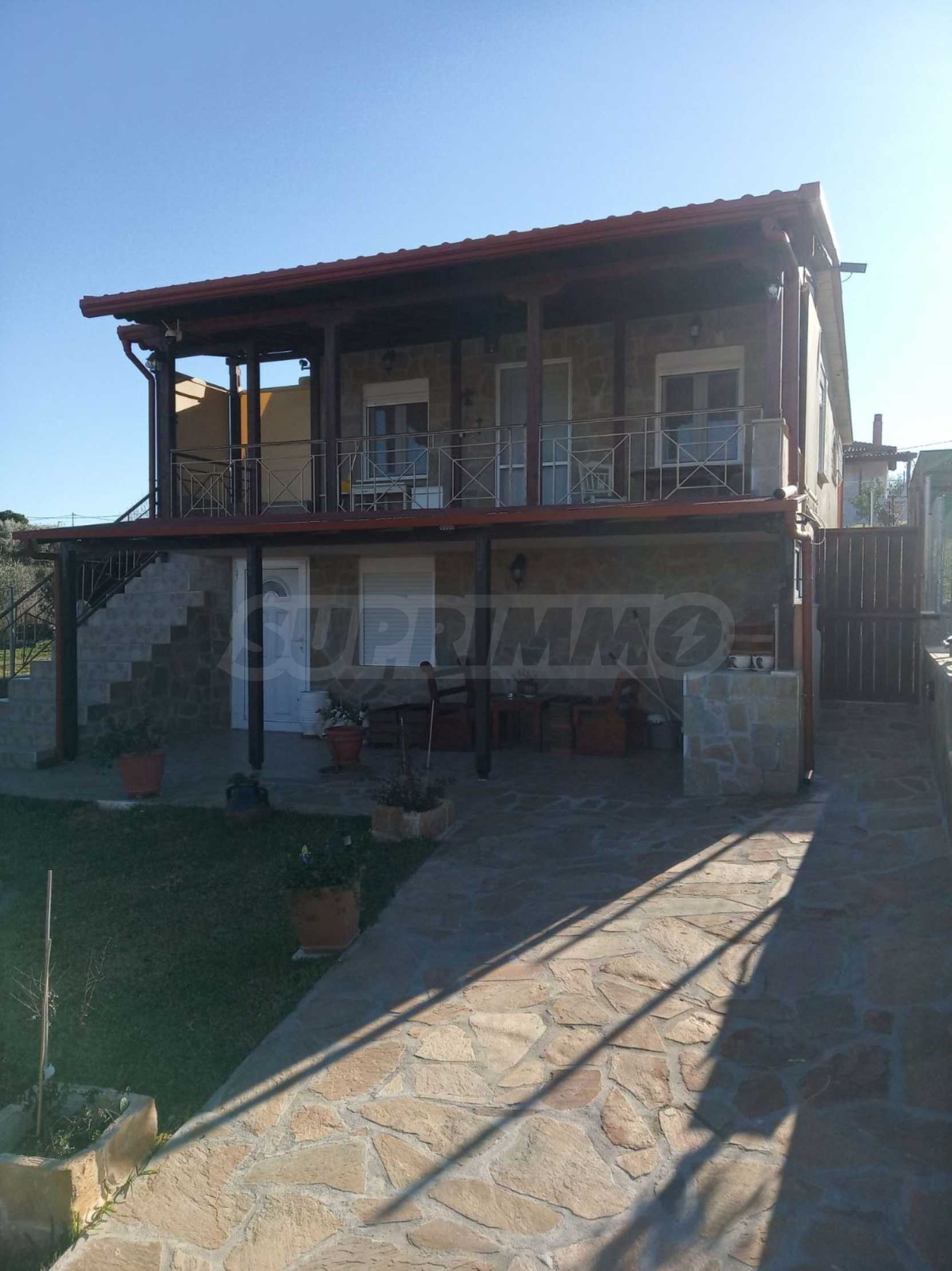 Detached house in Halkidiki, Kassandra with good condition and amazing sea view. Up to 10 min walk to the sea. 1 bedroom, 2 bathrooms, 1 parking space. Enjoy tranquil living in this beautiful property in Greece.