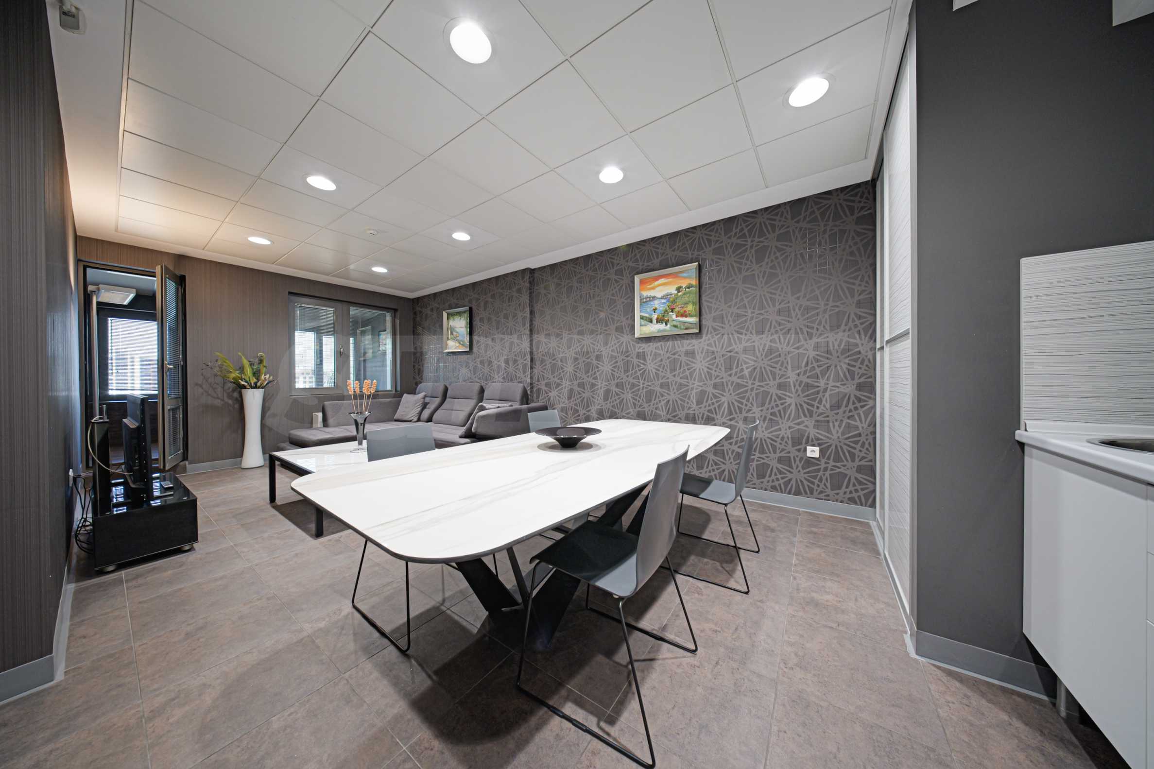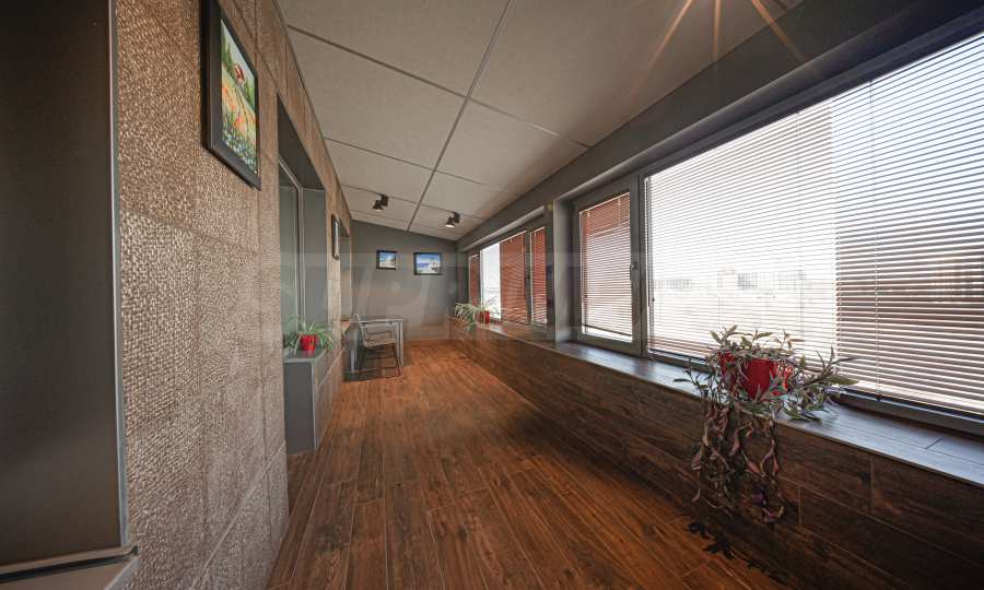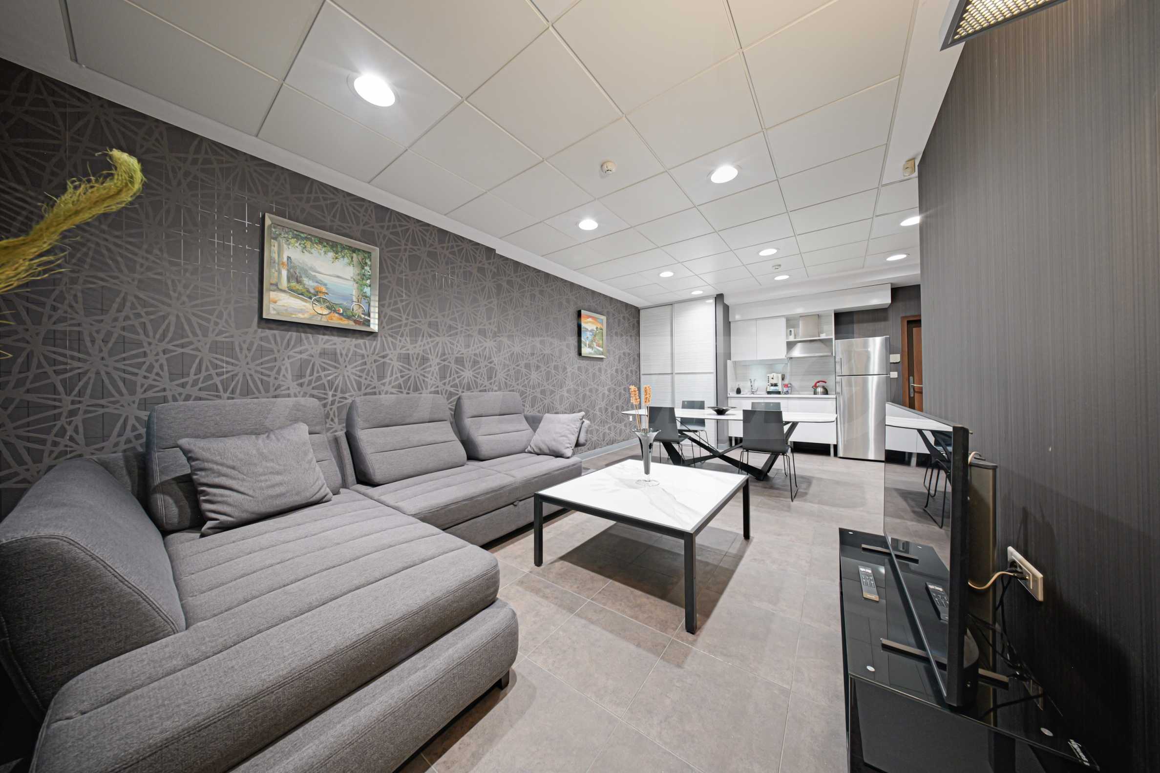 We present a one-bedroom apartment with a large covered terrace in a new modern building with luxurious common areas, access control and live security, near Business Park Sofia.