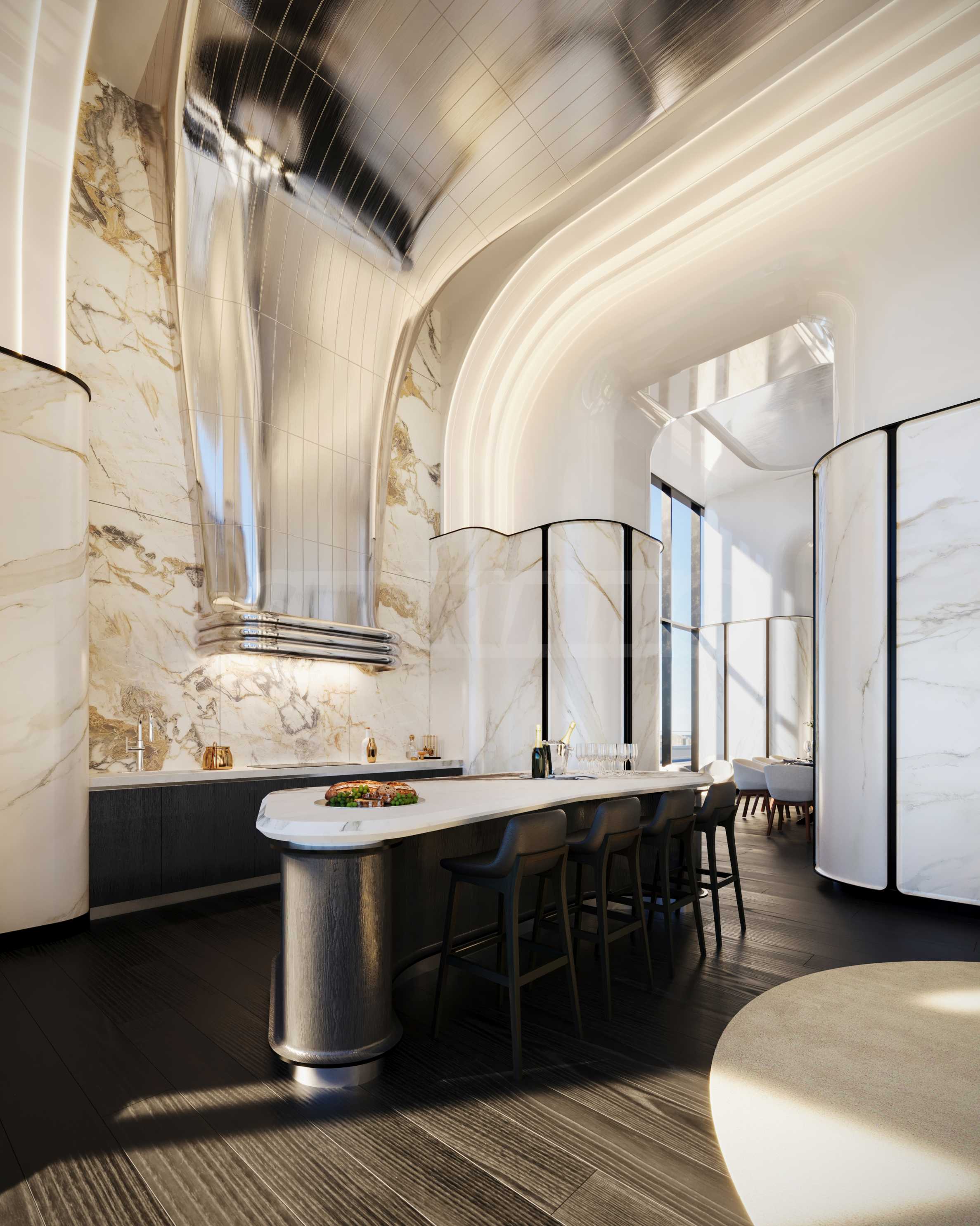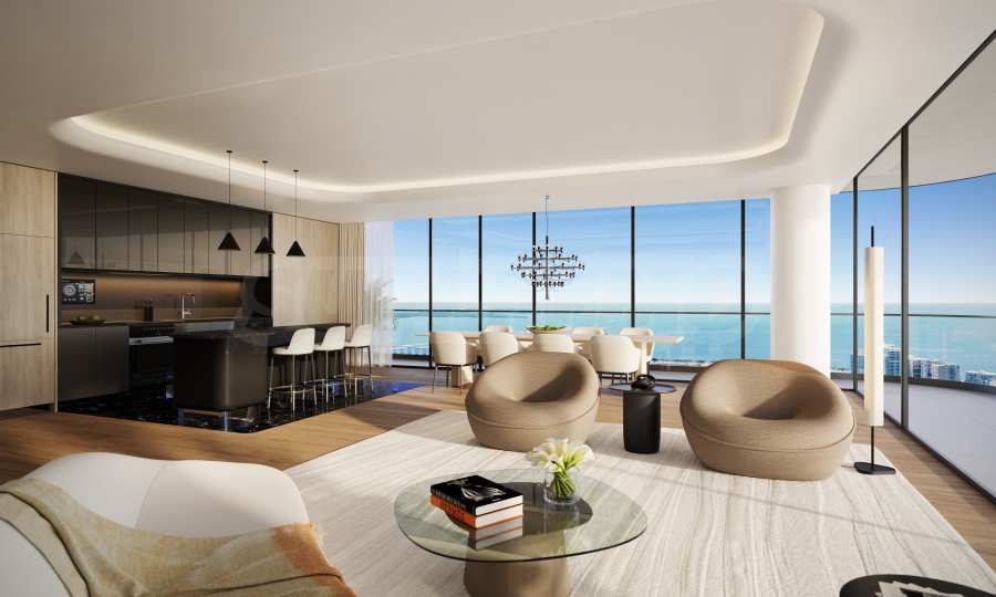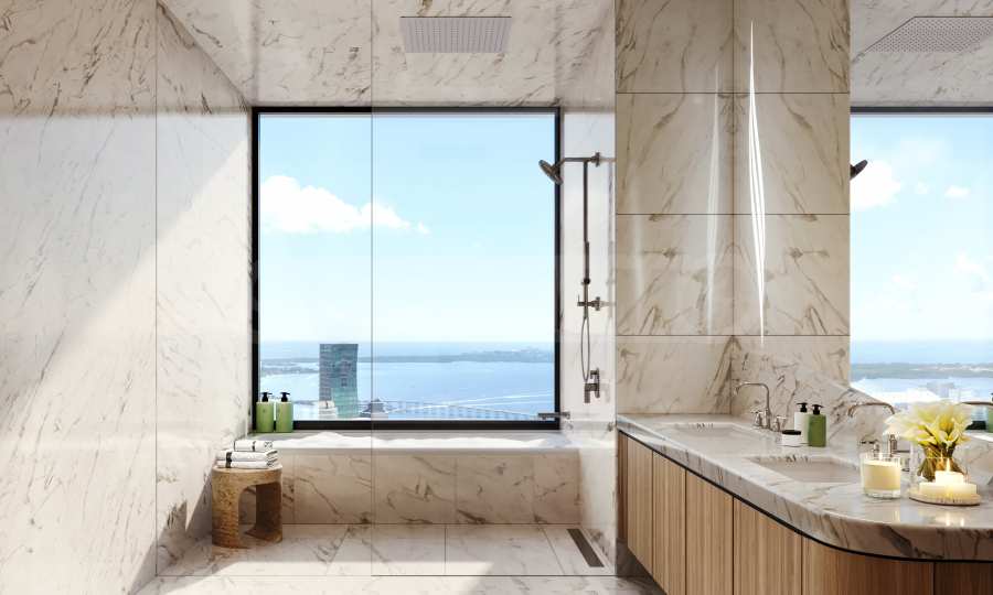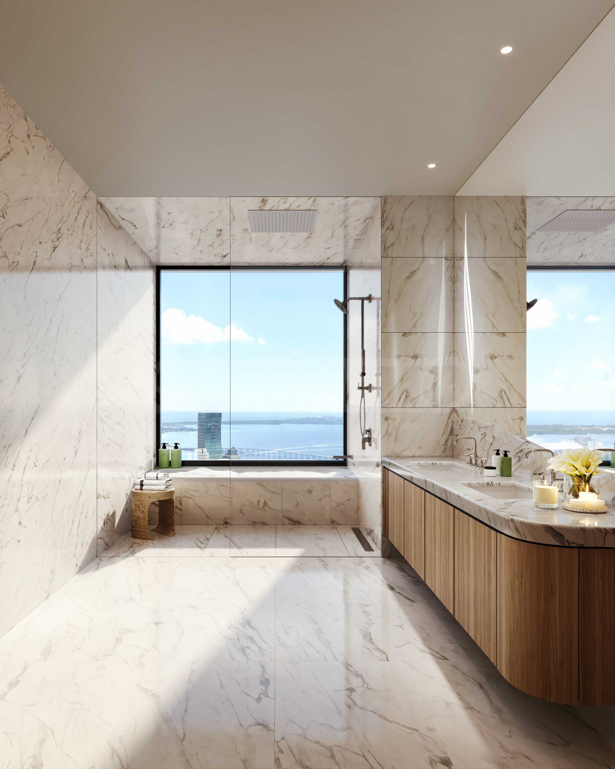 Each home in Mercedes-Benz Places combines modern design and luxury, built with attention to every detail by the experts of the interior design company Woods Bagot in collaboration with Mercedes-Benz. Black and white were chosen as the predominant colors, which build the contours of the rooms, and wooden elements complement the design and create a timeless vision and purity of the interior. Floor-to-ceiling windows serve as a natural frame for the breathtaking views of the ocean or the city skyline. All apartments, even studios, have spacious and glazed terraces with an area of up to 100 sq m and offer an excellent atmosphere for morning coffee or an evening glass of wine in the fresh air with a magnificent view of Miami. All homes have high-quality wooden flooring, as well as in-home systems to improve the quality of life of the residents. The homes are offered with finished kitchens and bathrooms with the highest class materials and innovative designs: