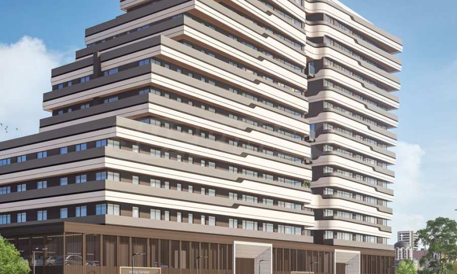 The facade of the building has clean shapes and decorative elements that emphasize the volumes. The building offers picturesque views of the mountain and the St. Alexander Nevsky Church. A richly landscaped, publicly accessible roof terrace is planned. Luxurious finishing of the common areas with a security cabin, and premises for shops are planned on the ground floors.