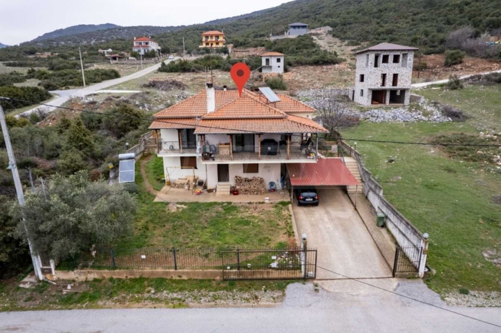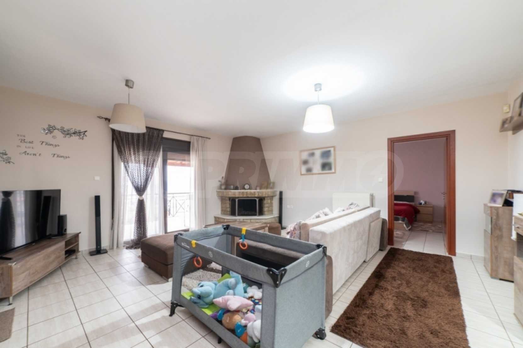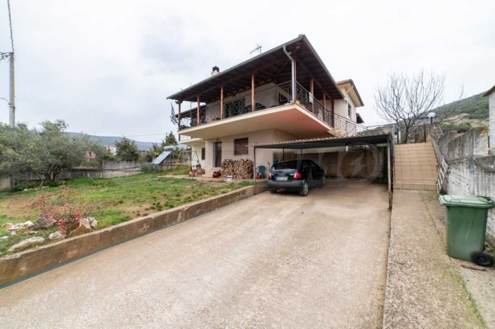 For sale a detached house of 210,00 sqm in the Municipal Apartment of Zygos of Kavala. The property was built in 2000 and is in excellent condition with two levels of main use areas, with the first floor being configured into an apartment of 120.00sqm, with two spacious bedrooms and a large master, which has a dressing room, a separate kitchen, a large comfortable living room with dining room, a fireplace and access to large covered balconies. It has a security door to the entrance and a second one to the exit in a different part of the surrounding area, PVC windows, solar panel, heating via oil burner. The surrounding area is landscaped with lawn and open parking space, the whole plot, surface 670.00sqm is fenced, having a large metal sliding door for entrance. On the ground floor level we find the auxiliary spaces of the building, boiler room and oil tank, as well as an unimproved internal space of main use, with a surface area of approximately 90.00sqm. The property is located in a settlement just twelve kilometers from the city of Kavala and its beautiful beaches and the same distance from the municipal district of Krinides Kavala, where the ancient theater of Philippi, a UNESCO World Heritage Site, is located. All of the above make the property a very interesting investment proposal either for exploitation or for the creation of a permanent residence.