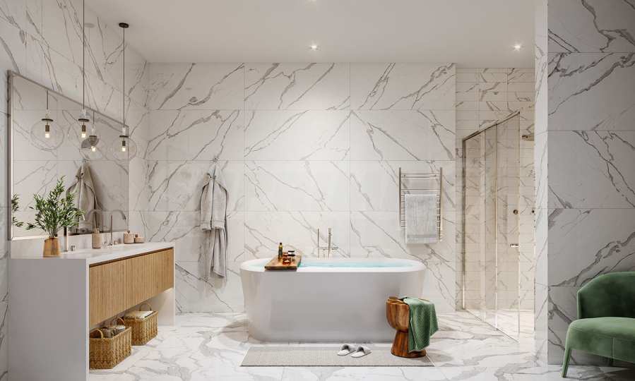 Every element in these apartments has been carefully selected with thought and care for future buyers, with the goal of creating a luxurious look that brings warmth and coziness. The entrance doors combine dark and light oak wood in a discreet design, while the interior doors have an elegant, semi-matte texture. The spacious balconies of the apartments are accessed through sliding doors made of impact-resistant glass. The kitchens feature stylish Italian cabinets with a double glossy finish, and the appliances, as well as the kitchen sink, are made of stainless steel and from brands with a proven reputation. An interesting part of the interior are the bathrooms, inspired by Turkish SPA centers, with polished glossy porcelain surfaces and marble finishes on the floors, walls and showers.