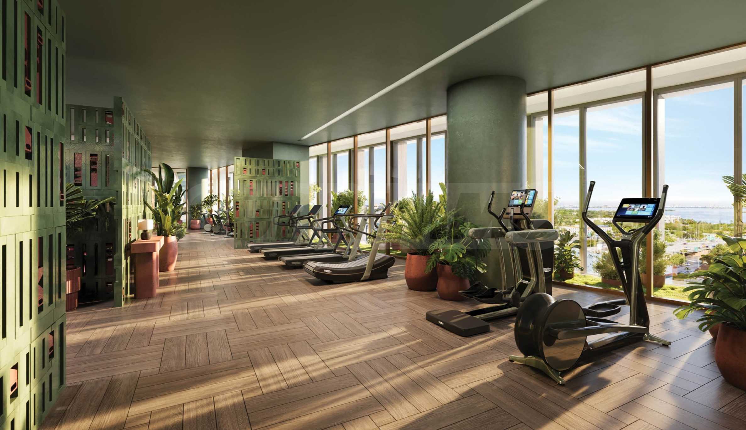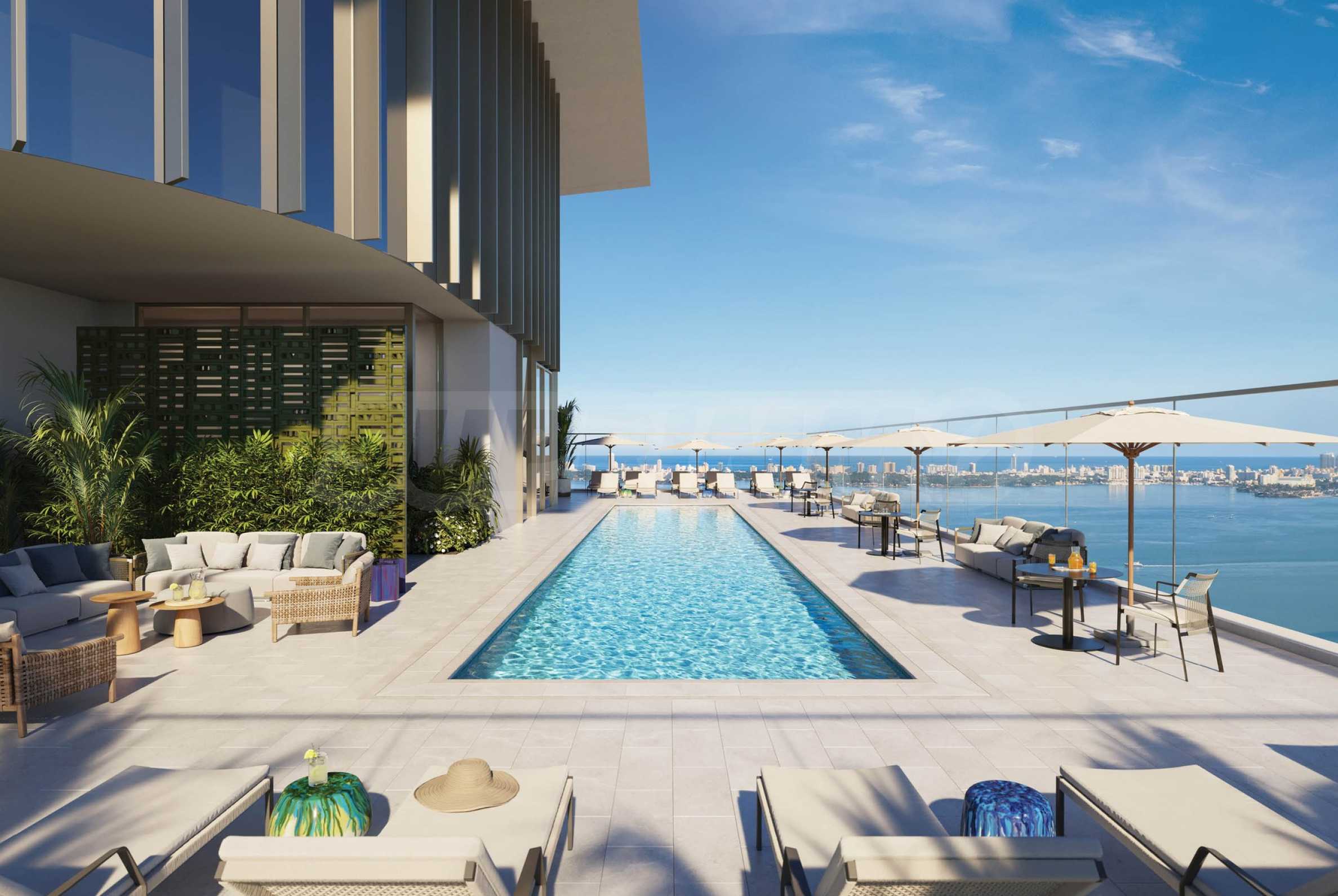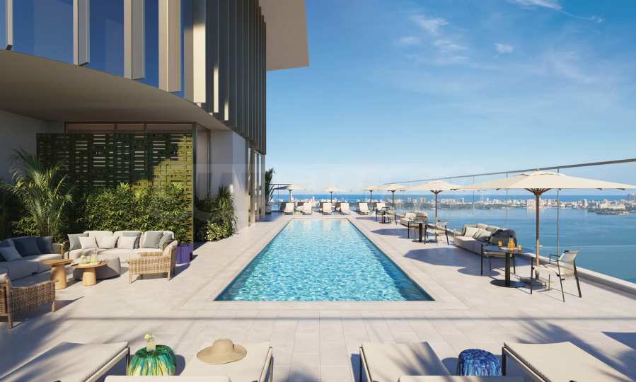 The building facilities two swimming pools: one on the eighth-floor terrace and another on the top floor. The former includes its own bar with drinks and food, cabanas, relaxation areas and a garden, while the latter offers 360-degree panoramic views of the city and the ocean, creating a feeling of immersion in the pulsating city. On the eighth floor, you will also find children's rooms with a variety of entertainment options, an arcade, sports simulators and an outdoor cinema. ?