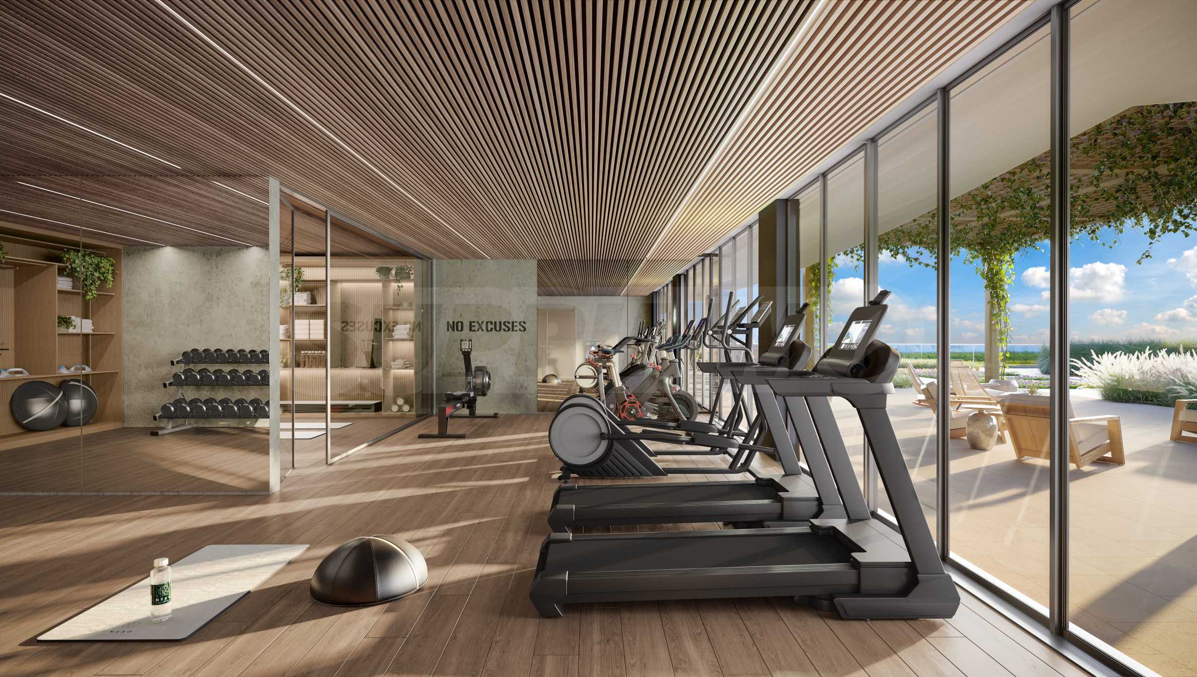 To maintain an active lifestyle, Nexo Residences offers both indoor and outdoor fitness centers, modernly equipped and convenient for workouts at any time. And for those seeking balance and relaxation – a yoga room and a pool with a relaxation area, where you can relax under the soft Miami sun and recharge.