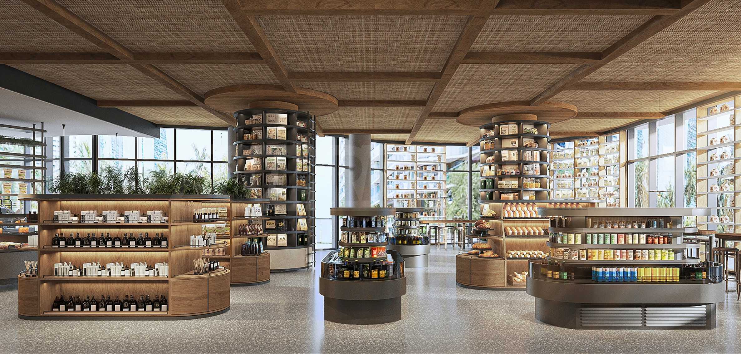 The two restaurants in the building offer an exceptional culinary concept that brings together chefs from all over the world. They prepare their signature specialties in front of the guests, turning every meal into a memorable experience. A significant part of the dishes are cooked on charcoal, which gives an authentic taste and character to each dish. The products are carefully selected from local producers, with an emphasis on freshness and quality. The restaurant on the ground floor also functions as a gourmet market, where you can purchase selected ingredients and take them home - to recreate the flavors on site.