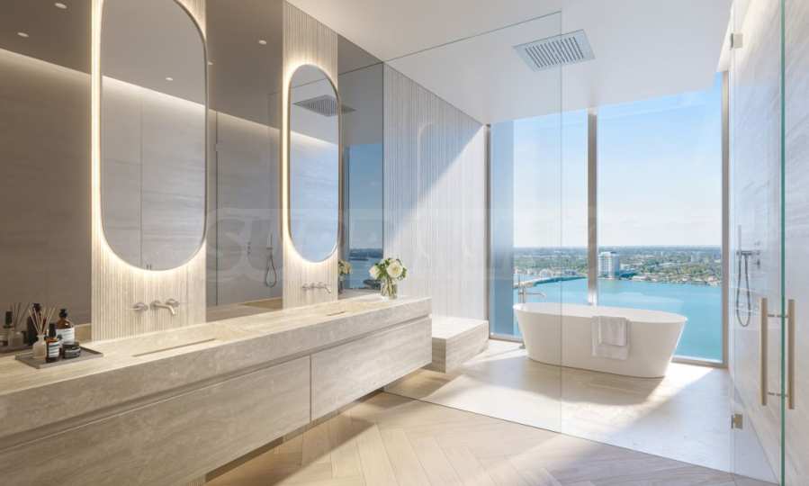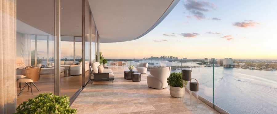 One of the most striking architectural highlights is the exclusivity of the layout – only four apartments per floor, which guarantees peace, privacy and unique panoramic views from two different sides of the bay. Each apartment has spacious terraces – from 74 to 96 sq m, which, combined with floor-to-ceiling windows, transform the home into an oasis where coziness meets the sun and sea breeze of Miami.