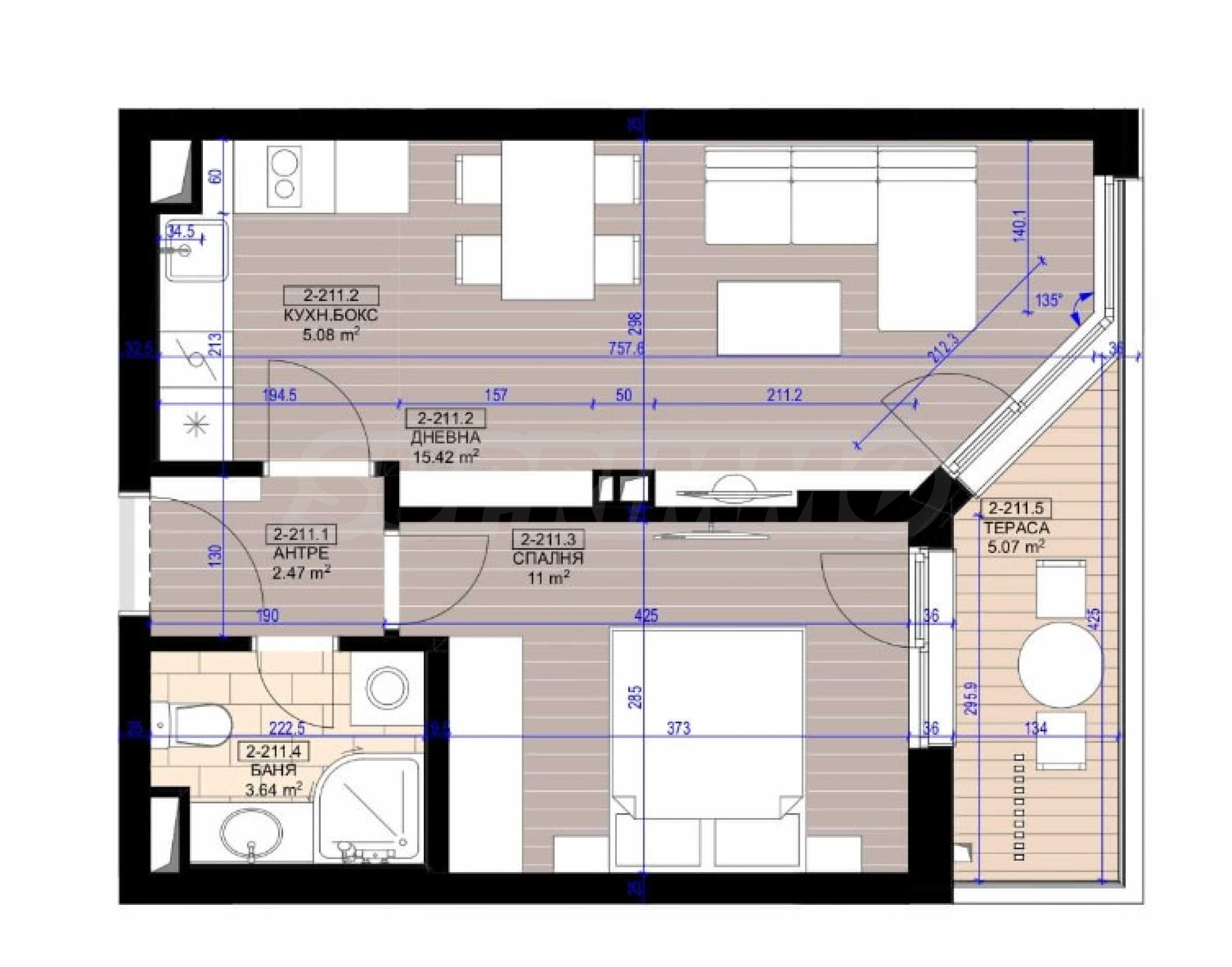 We present for sale a modern and functionally distributed one-bedroom apartment in an innovative gated residential complex, next to The Mall in Sofia, "Poligona" quarter.