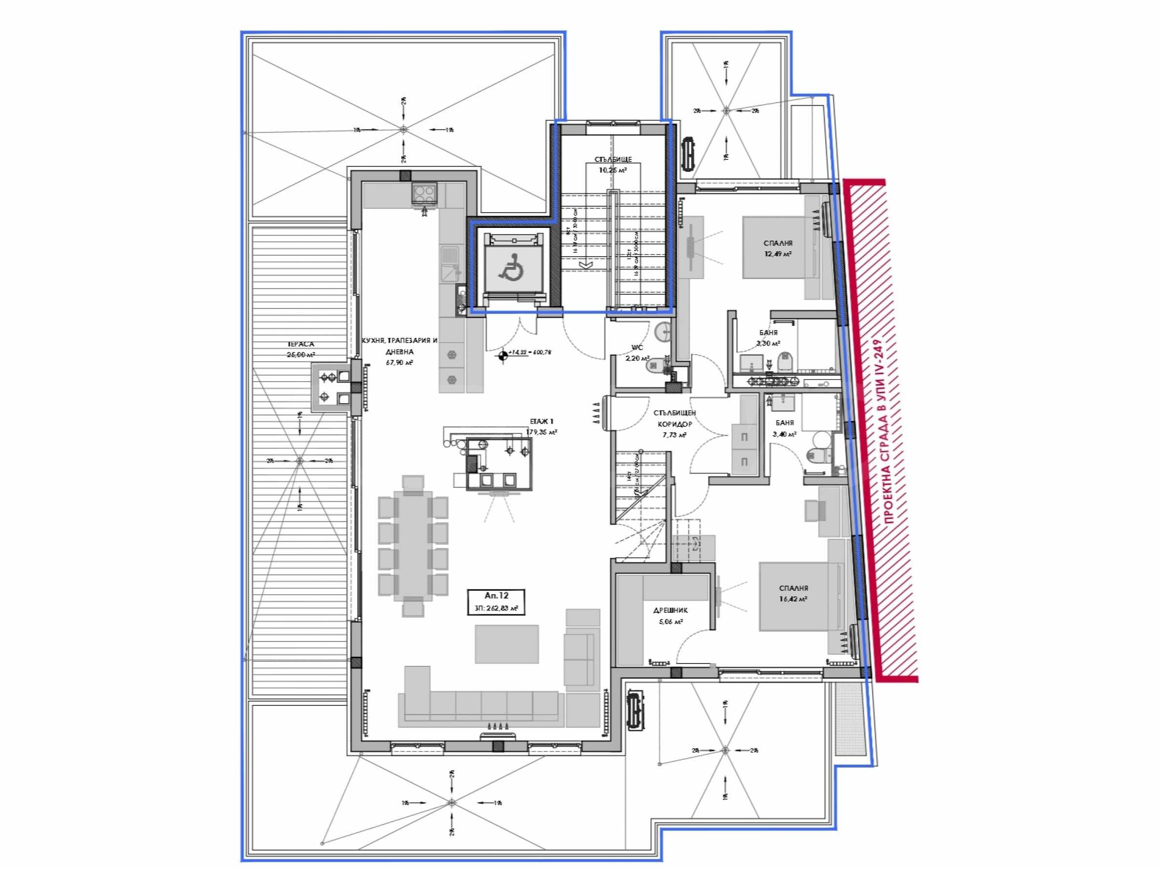 The apartments are carefully designed with an emphasis on functionality and convenience - with an optimized interior layout that meets different needs and styles. The properties for sale are comfortable three-bedroom and multi-bedroom apartments, including this gorgeous three-bedroom penthouse, with its own elevator in the property and impressive views of Vitosha Mountain and the city.
