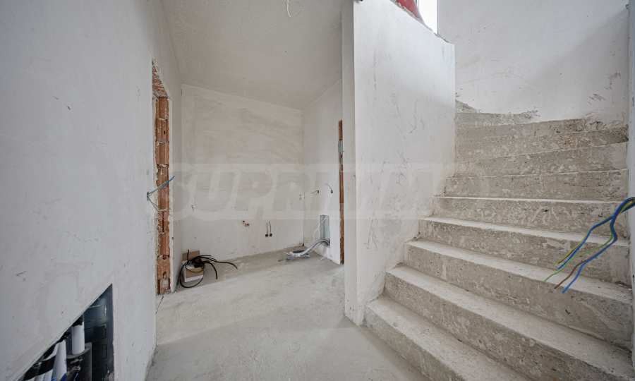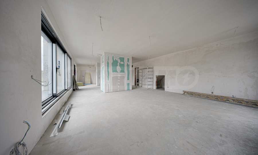 - first floor (total area - 214.66 sq m): entrance hall, toilet, large living room with kitchen and dining room, two bedrooms, each with its own bathroom, one with a walk-in closet, a spacious panoramic terrace of 25 sq m, staircase to the second level;