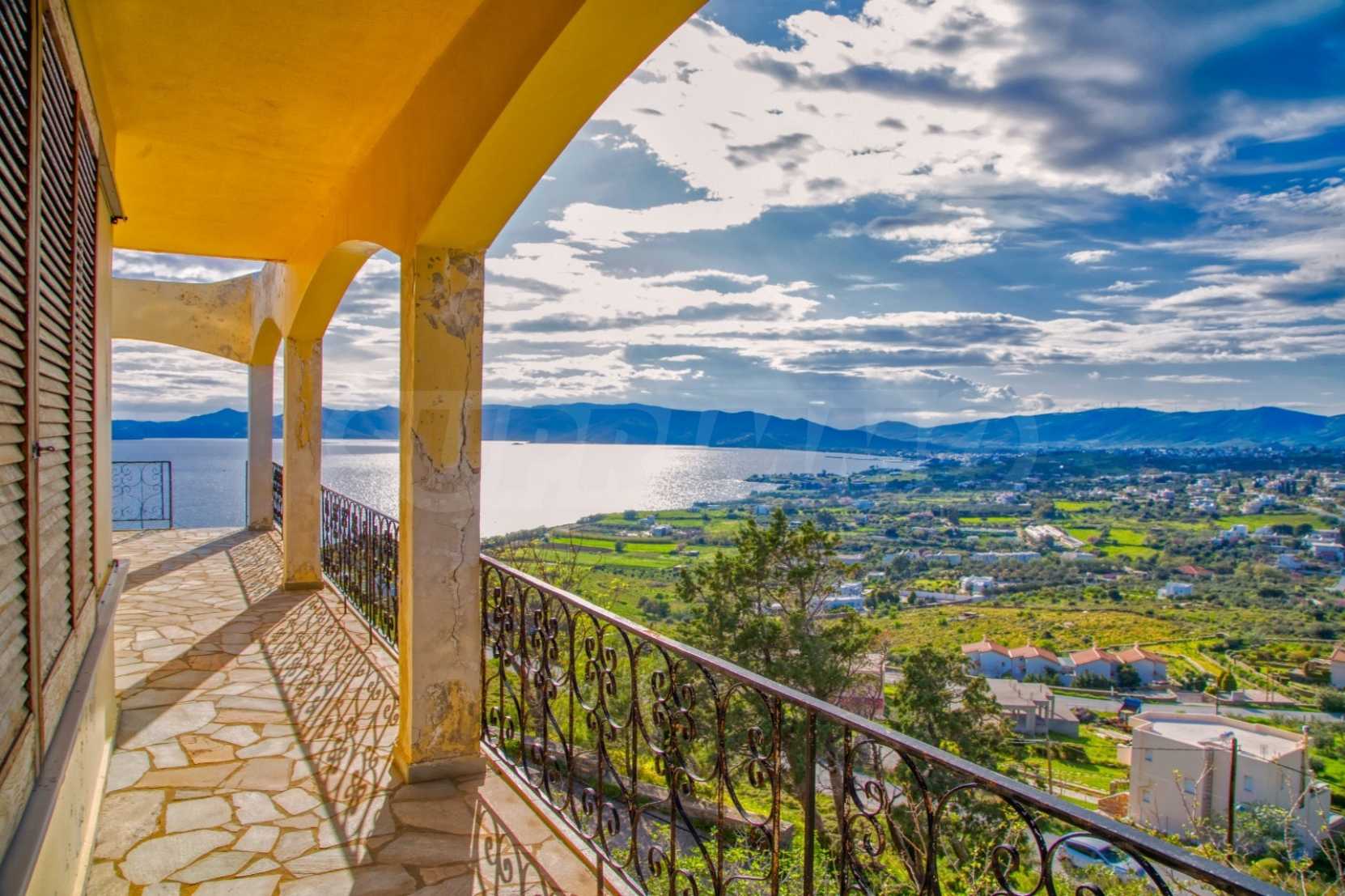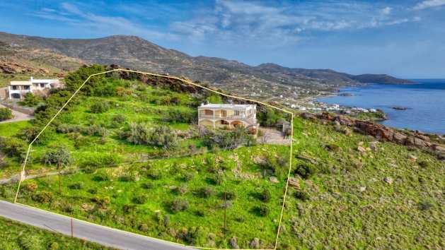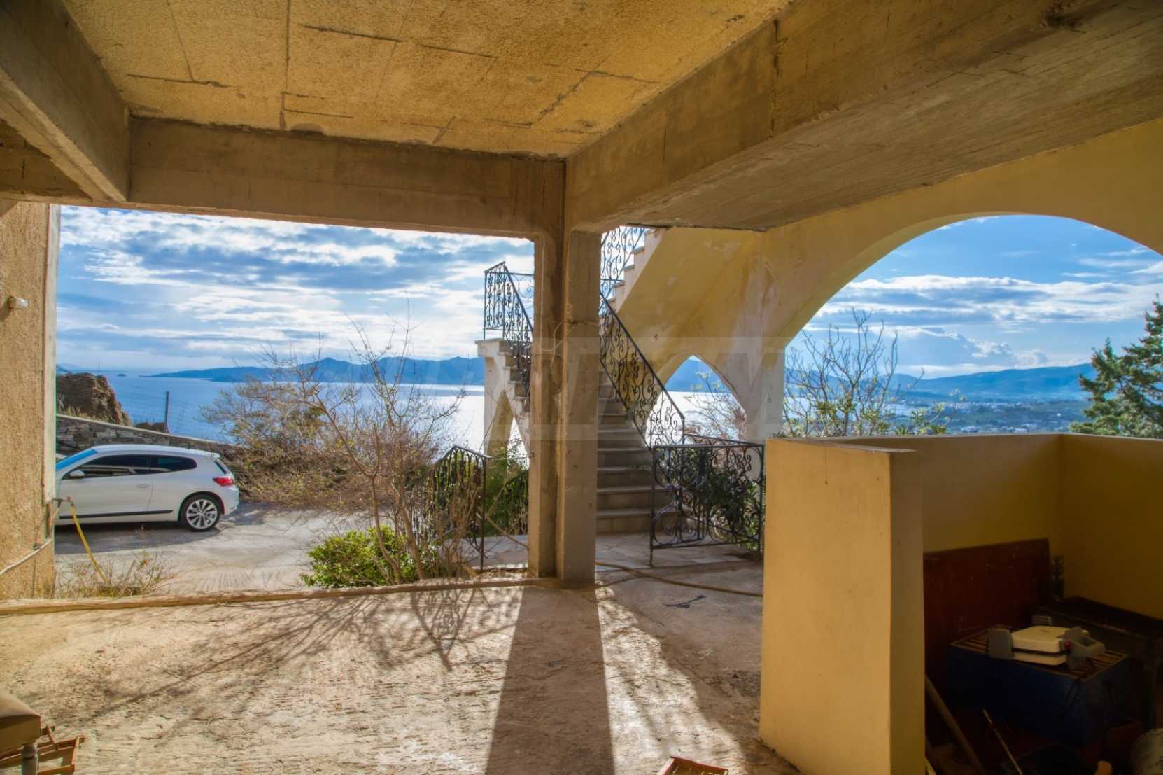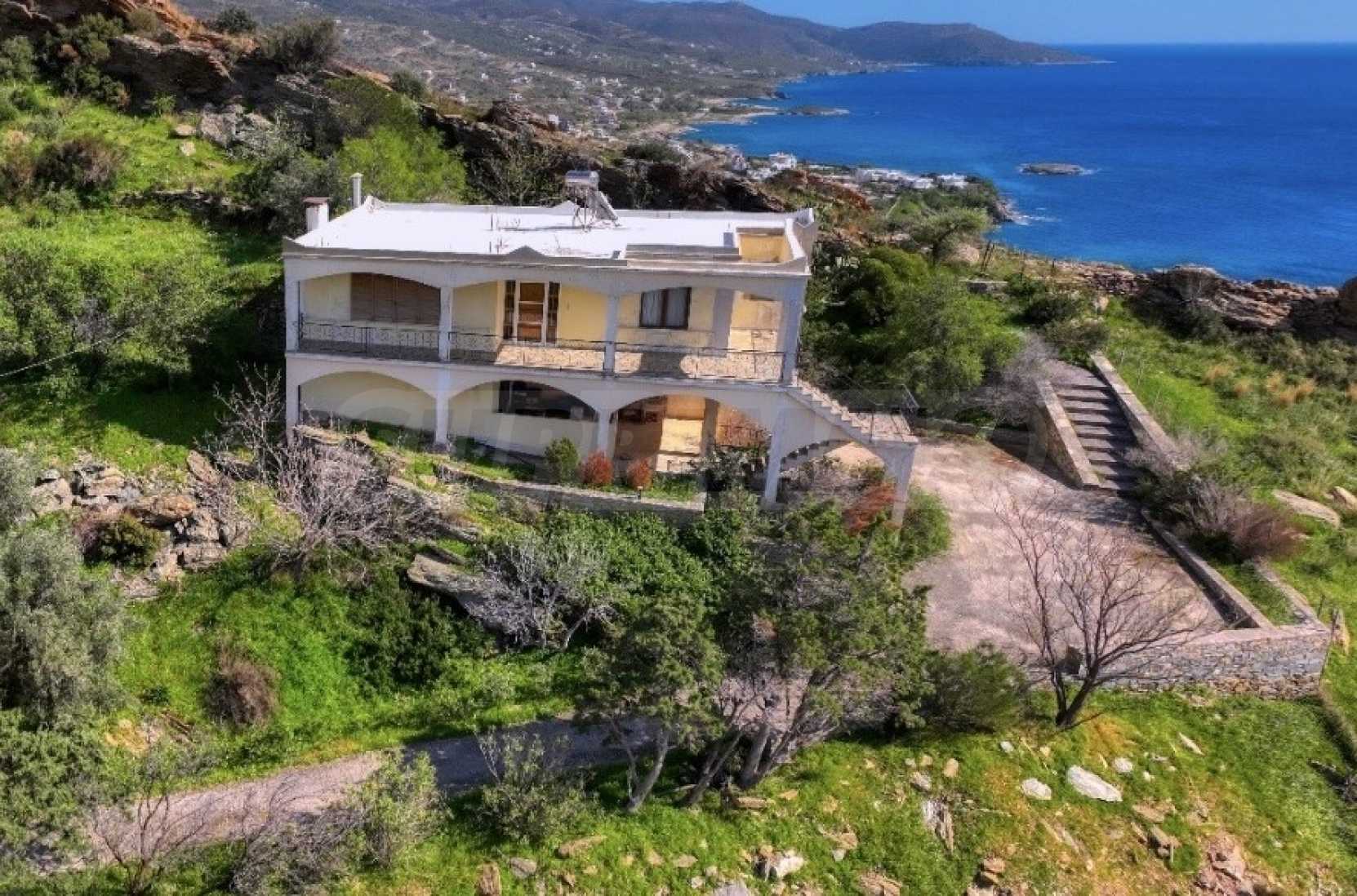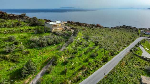 This stunning seafront property features two floors of 110 sqm each. The upper level is fully completed, offering 2 bedrooms and 2 bathrooms, while the lower level remains unfinished—allowing the new owner to design and create additional rooms as desired. An approved permit to build an extra 110 sqm offers even more potential for expansion. Set on a generous 5,500 sqm land plot, this property is ideal for a private retreat, a large villa, or a unique investment opportunity by the sea.