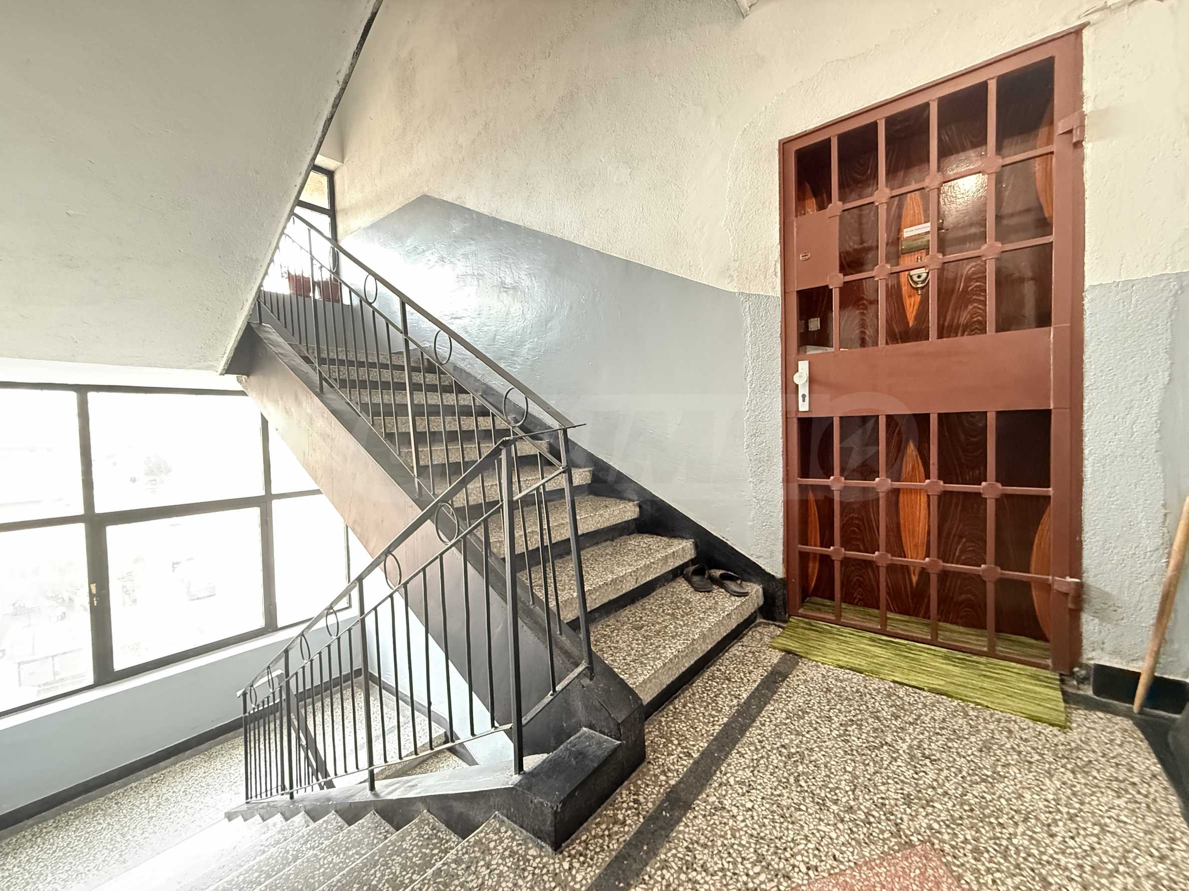 The apartment with an area of 98.27 m2 is located on the 4th floor of 5, in a building without an elevator, but with excellently maintained common areas and neighbors. The exposure is east/south, which provides natural light throughout the day.