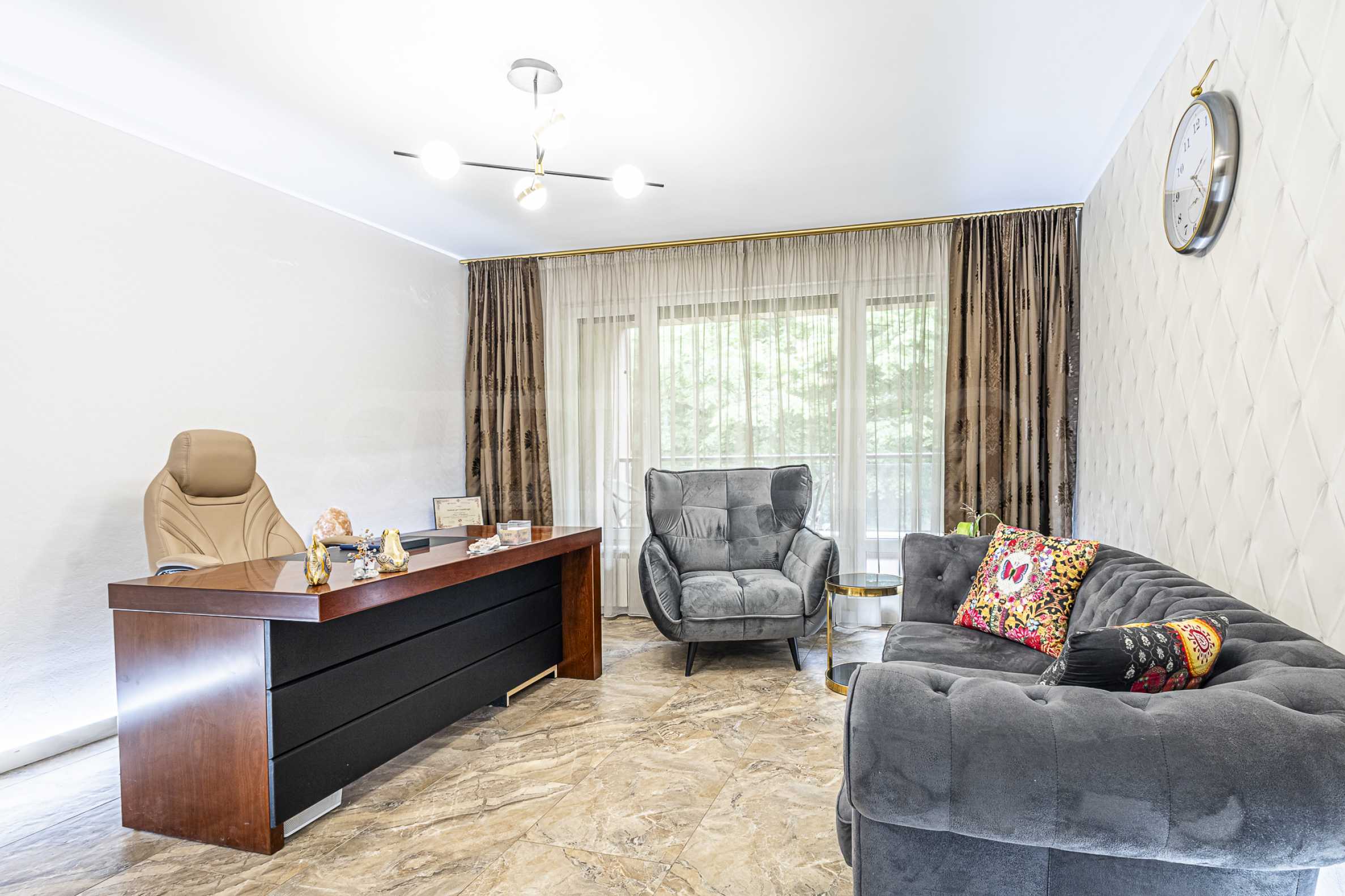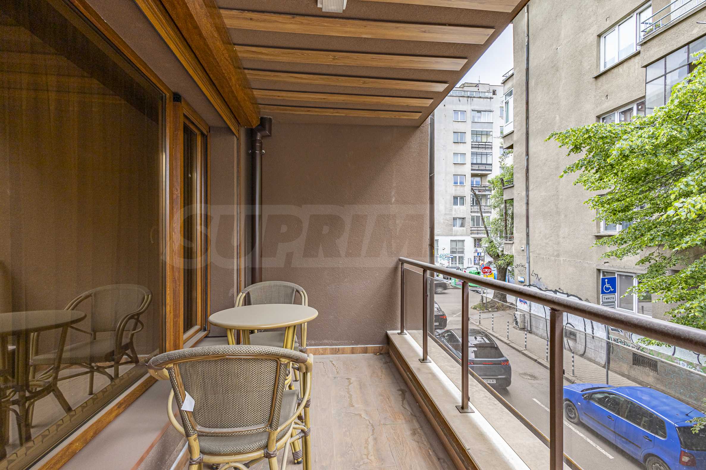 The apartment is located within walking distance of three playgrounds, a playground, supermarkets, a pharmacy, three fruit and vegetable markets, Mall Serdika, 129th Primary School, the Spanish High School, tram stops 20, 22 and 23, as well as two 24-hour shops. Less than 10 minutes walking distance are Zaimov Park, Teatralna metro station, theaters, a hospital and many other amenities. Close by are Sofia University, Alexander Nevsky Cathedral and many other amenities.