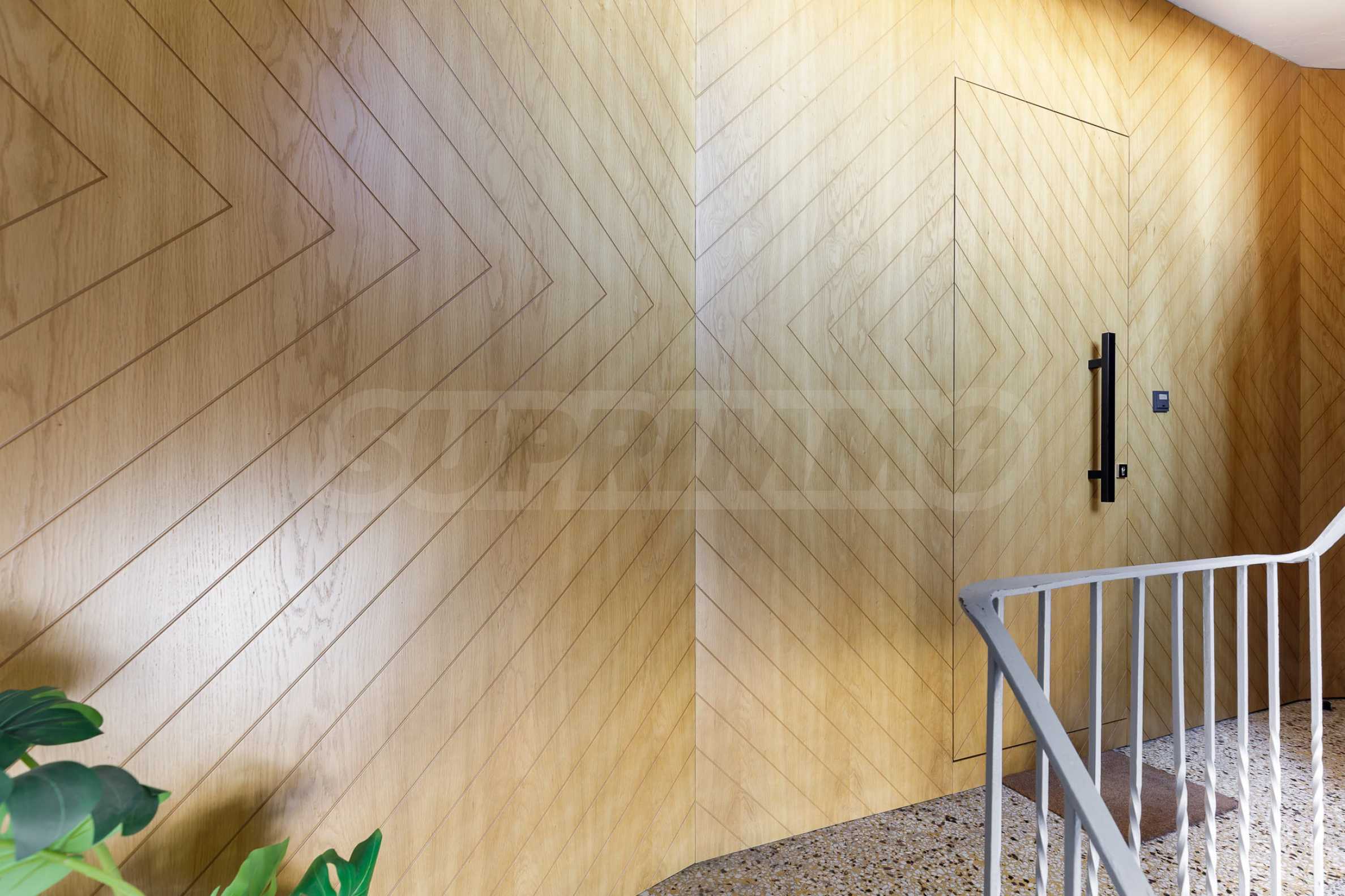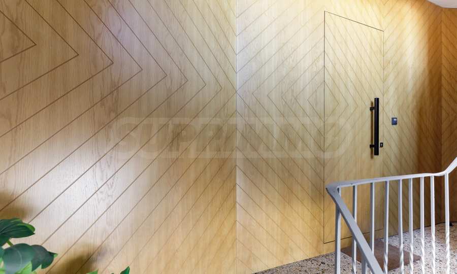 - Armored door with wooden exterior paneling;